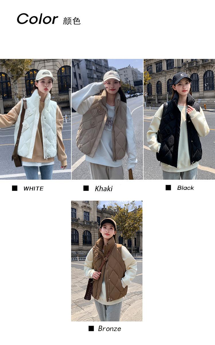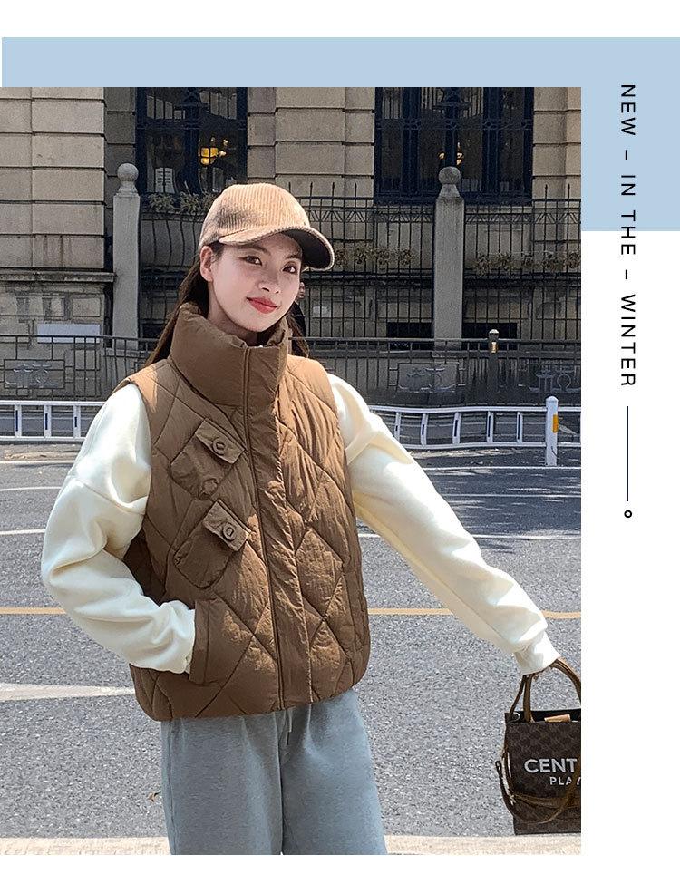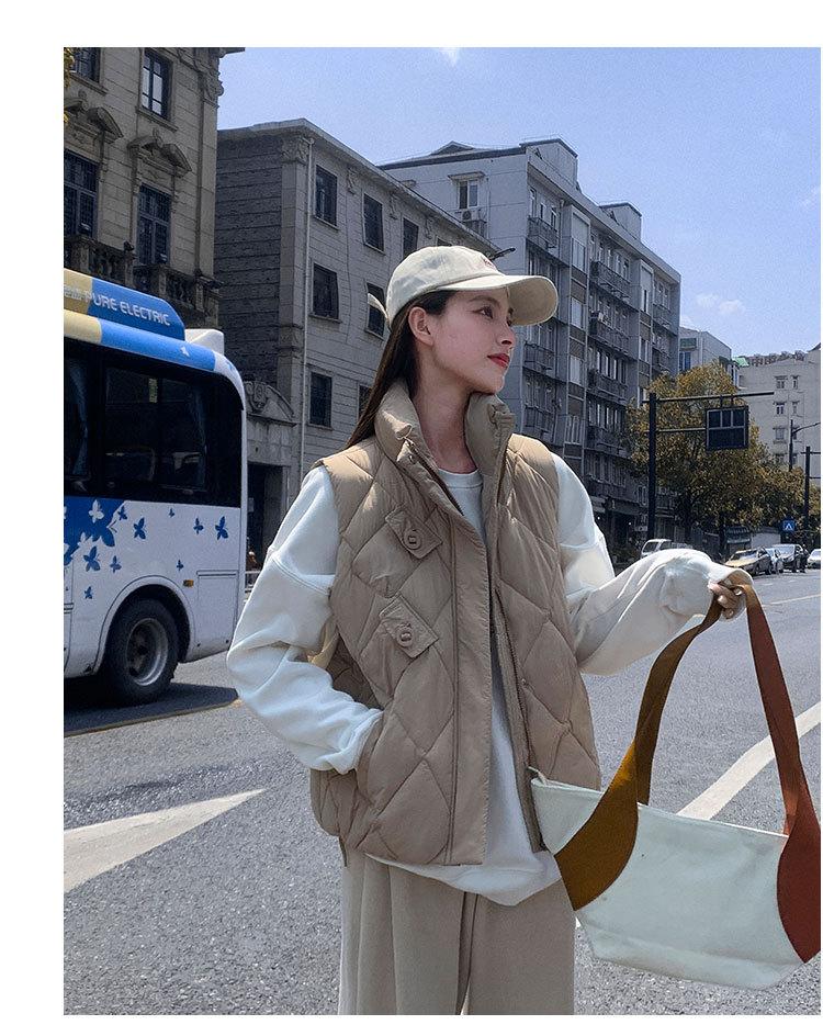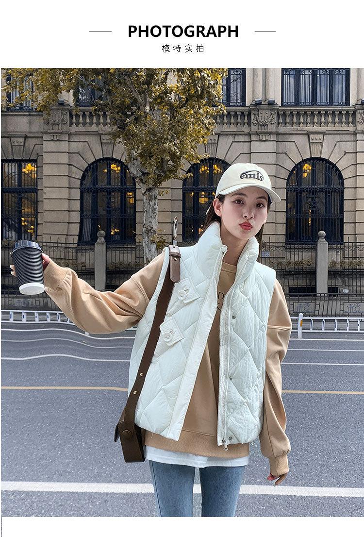 Chaleco de chaqueta acolchada de plumón para mujer 2024 otoño e invierno nuevo versión coreana de chaleco de algodón suelto cuello alto color sólido chaleco de chaqueta acolchada de algodón abrigo