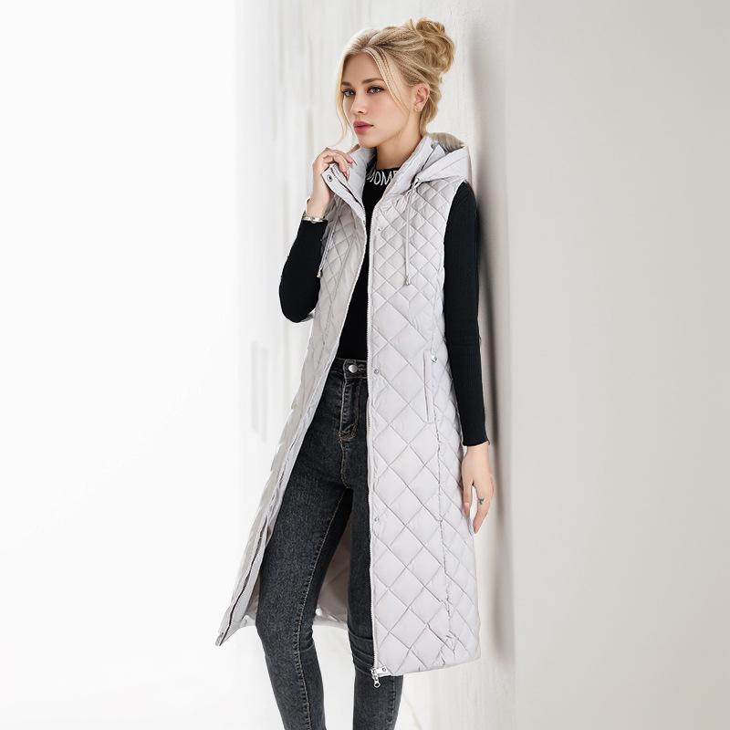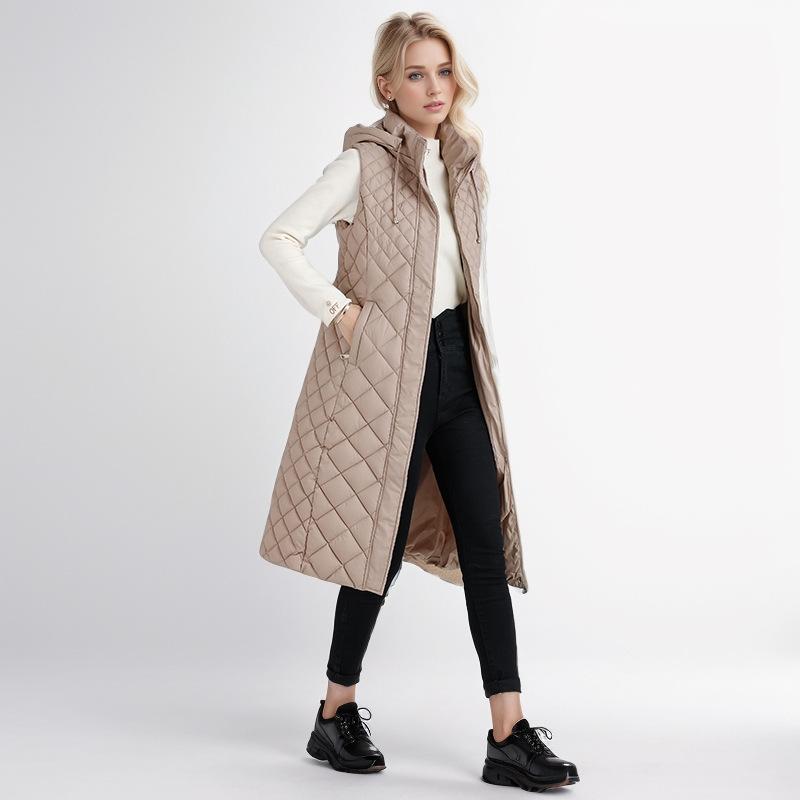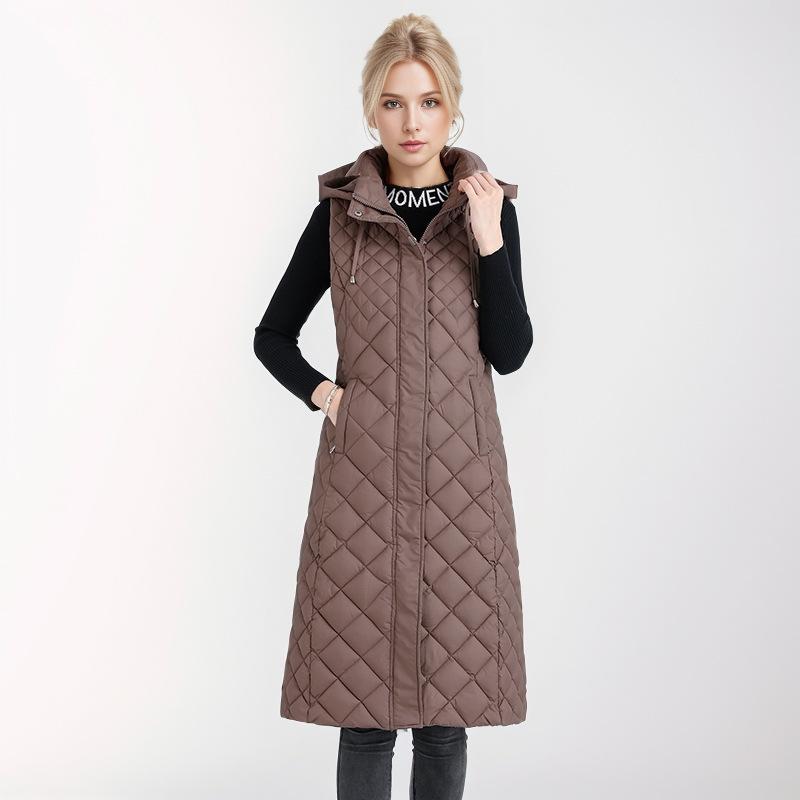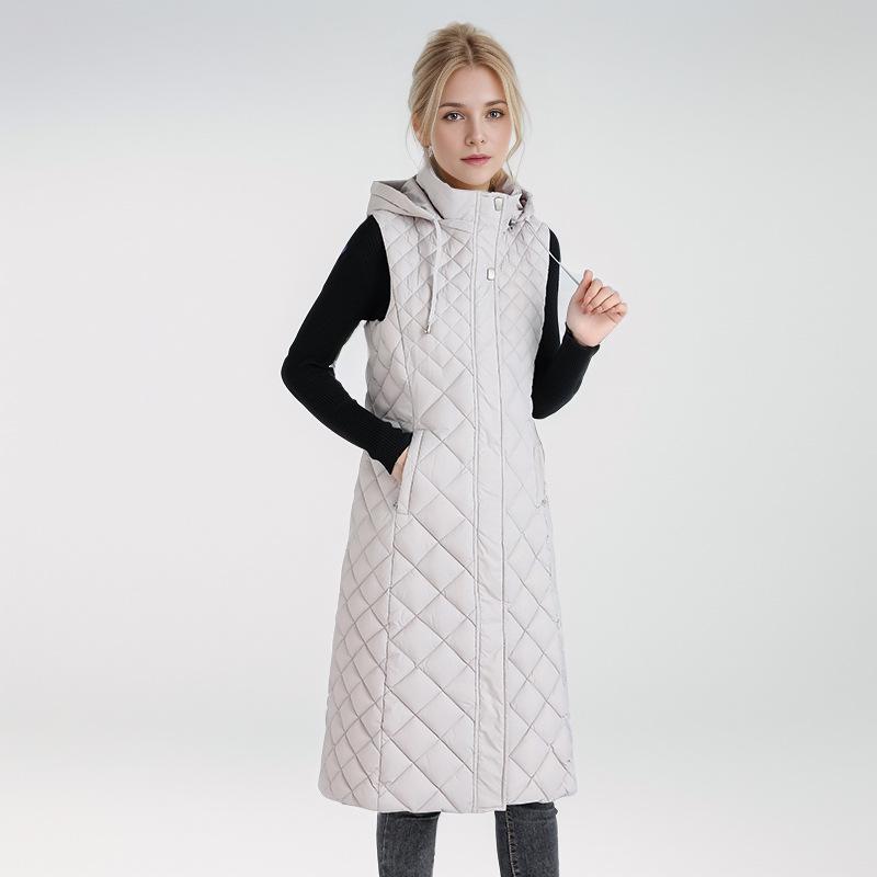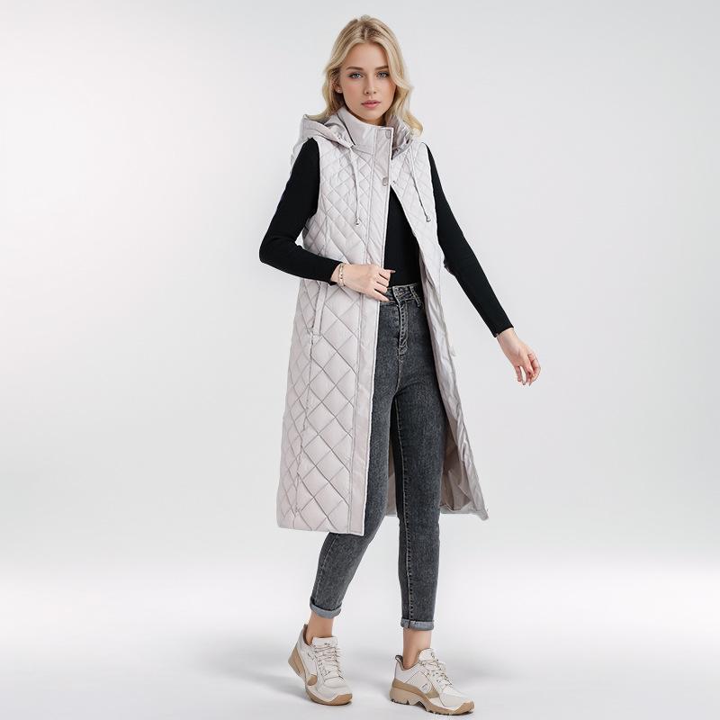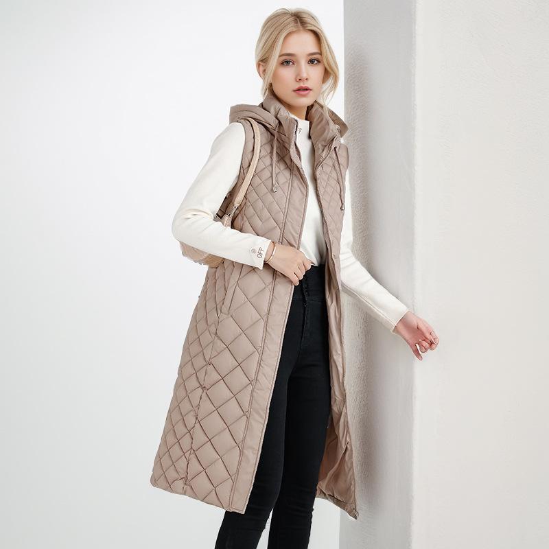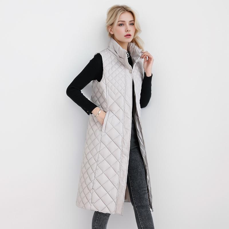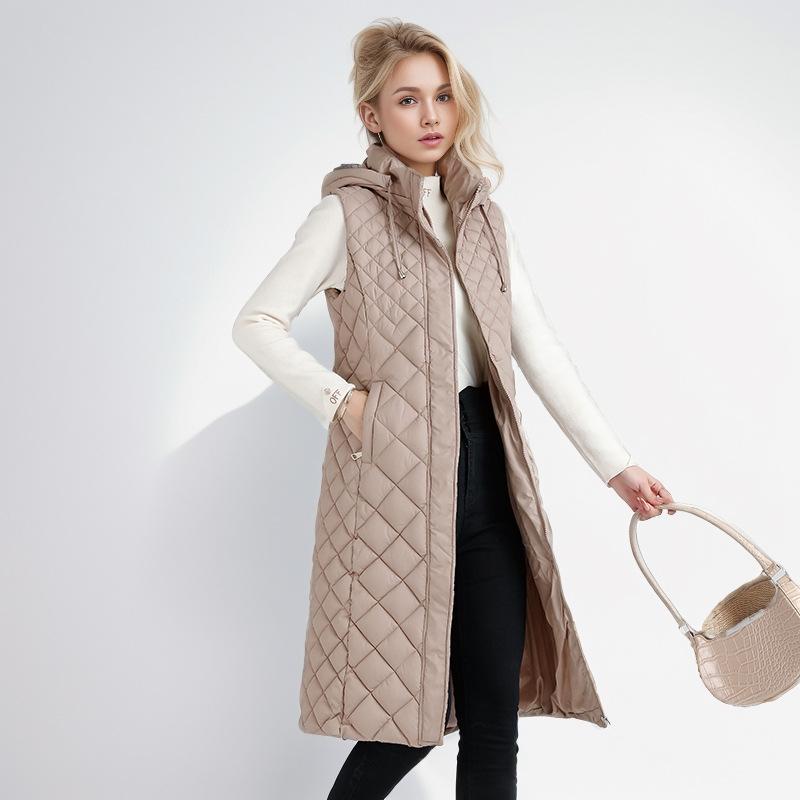 Chaleco de algodón ligero con borde cruzado, chaqueta larga de alta gama para mujer, primavera y otoño 2024