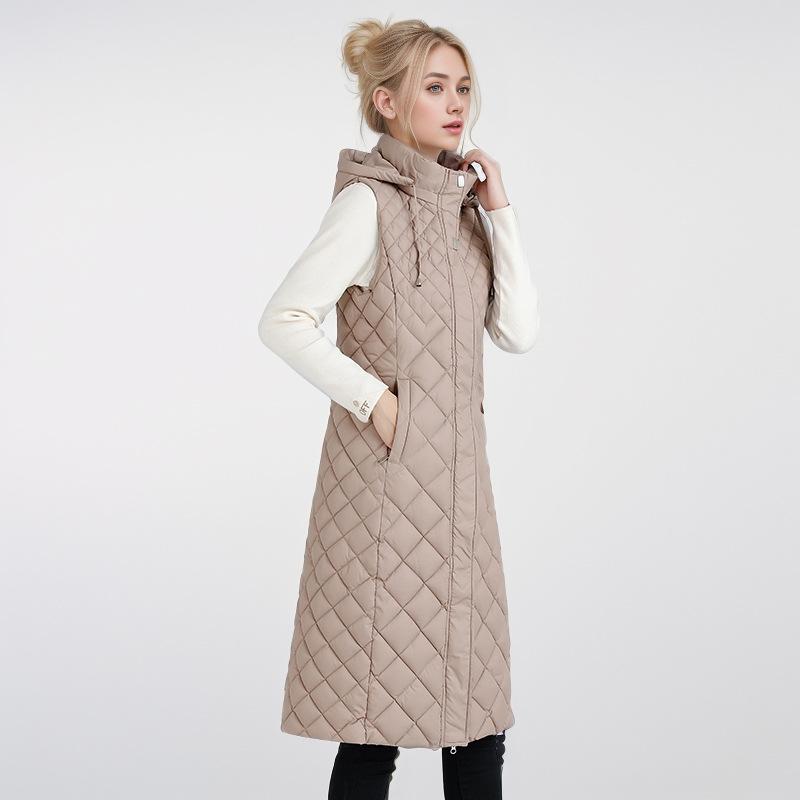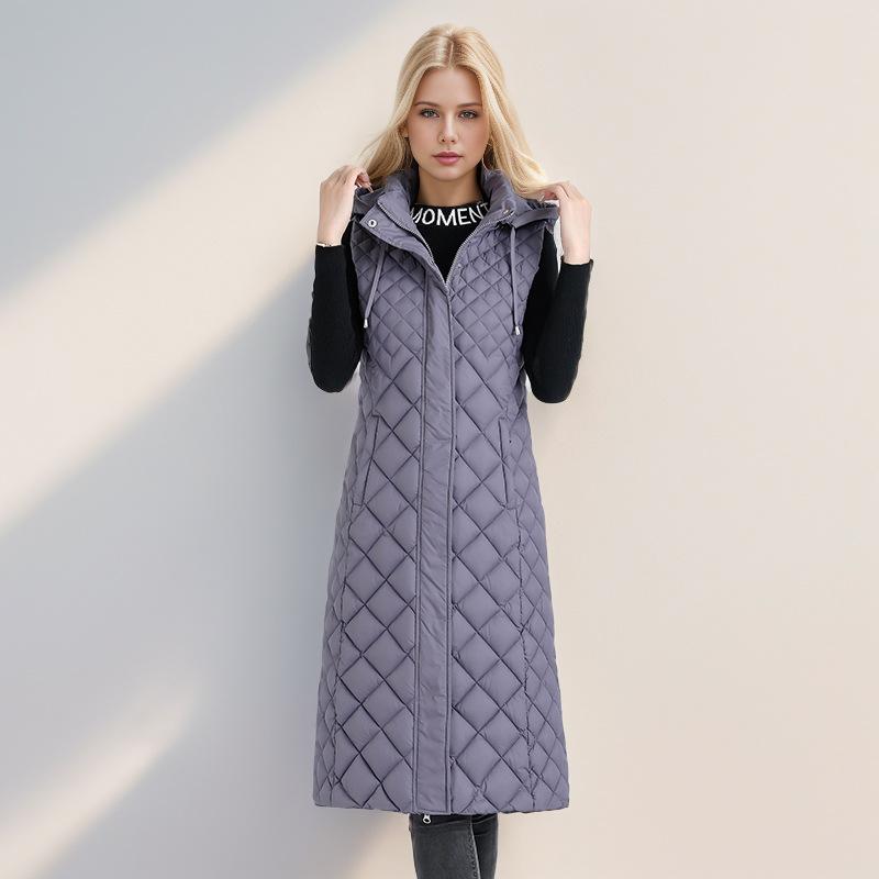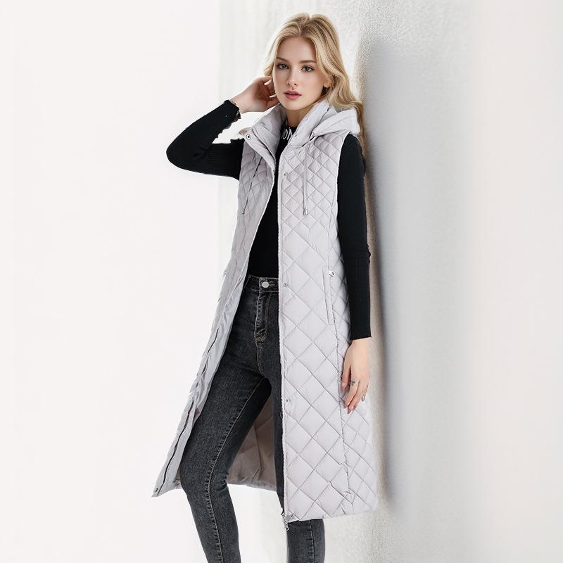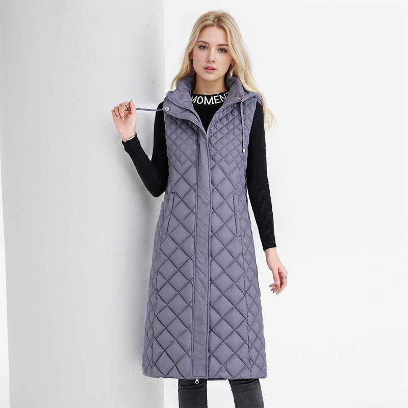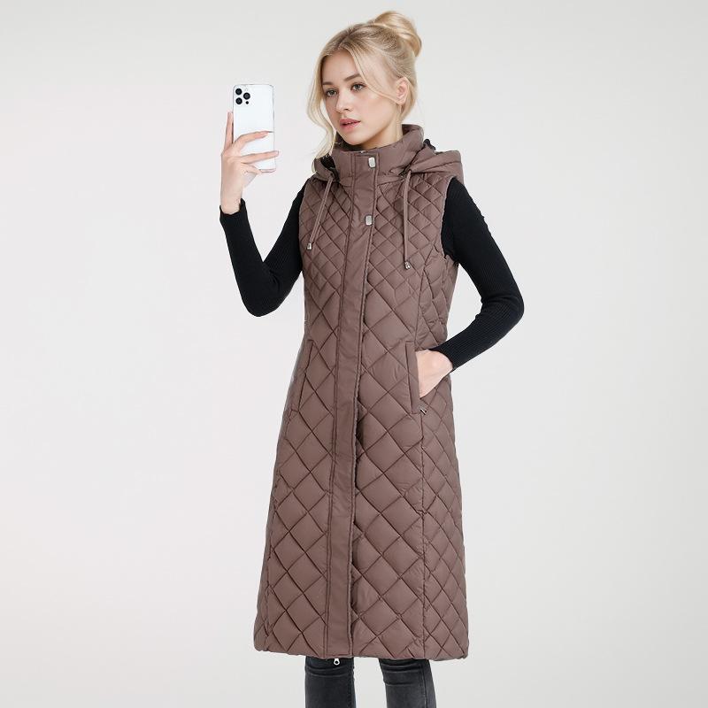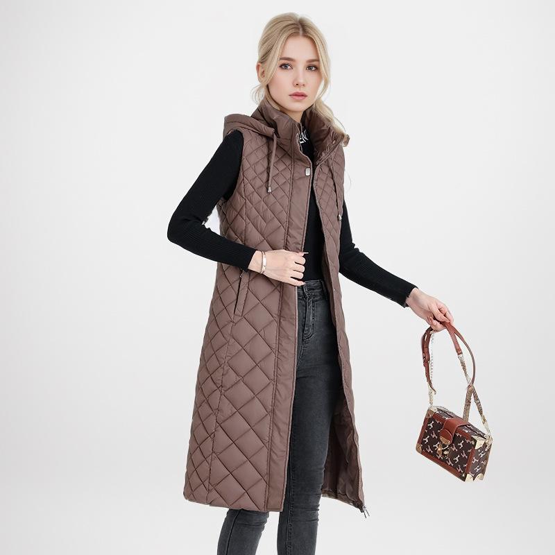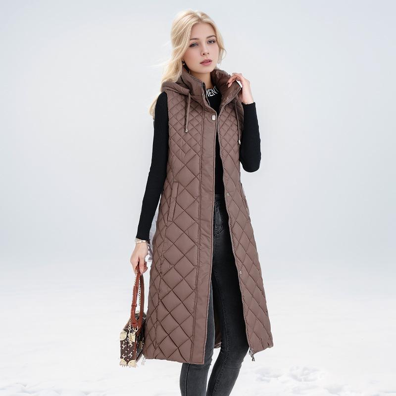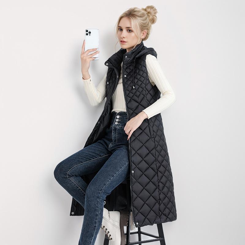 Chaleco de algodón ligero con borde cruzado, chaqueta larga de alta gama para mujer, primavera y otoño 2024