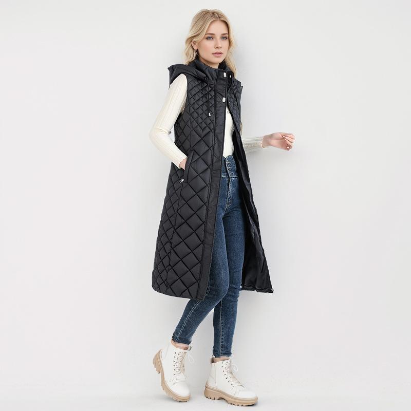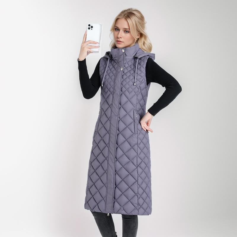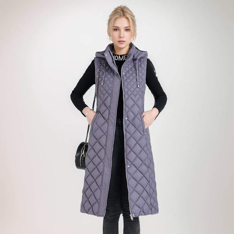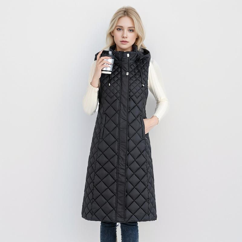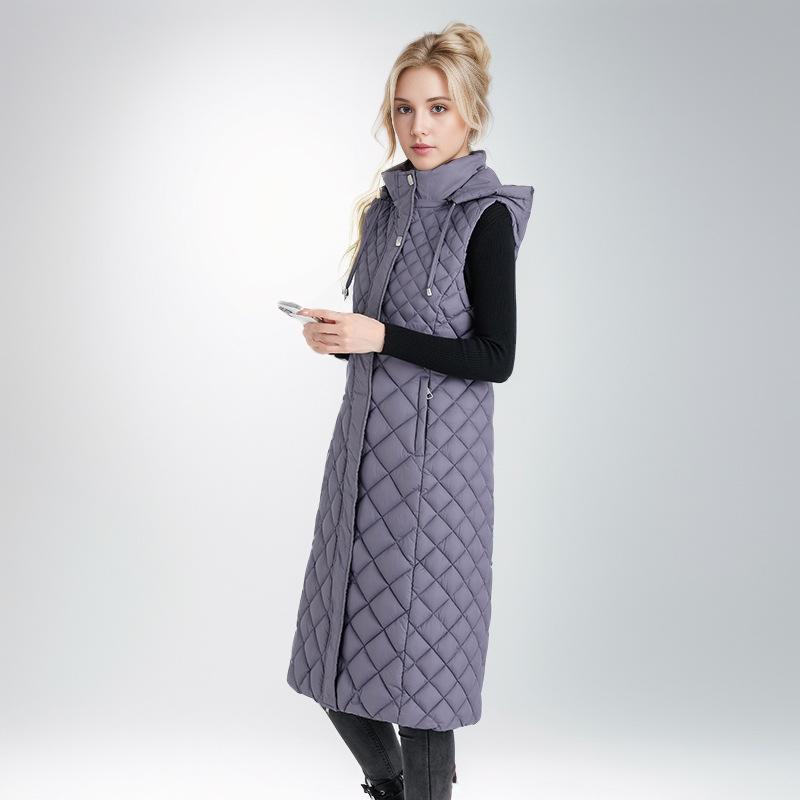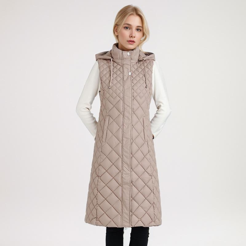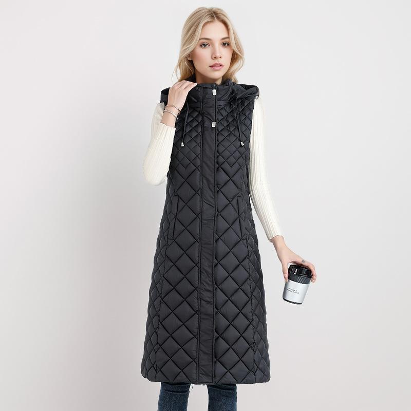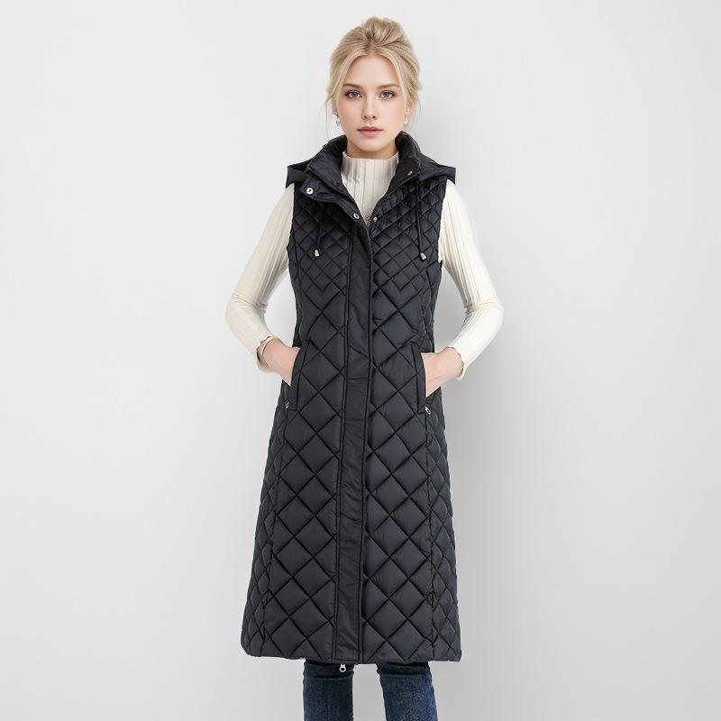 Chaleco de algodón ligero con borde cruzado, chaqueta larga de alta gama para mujer, primavera y otoño 2024