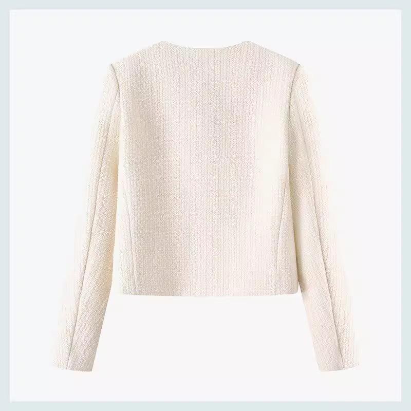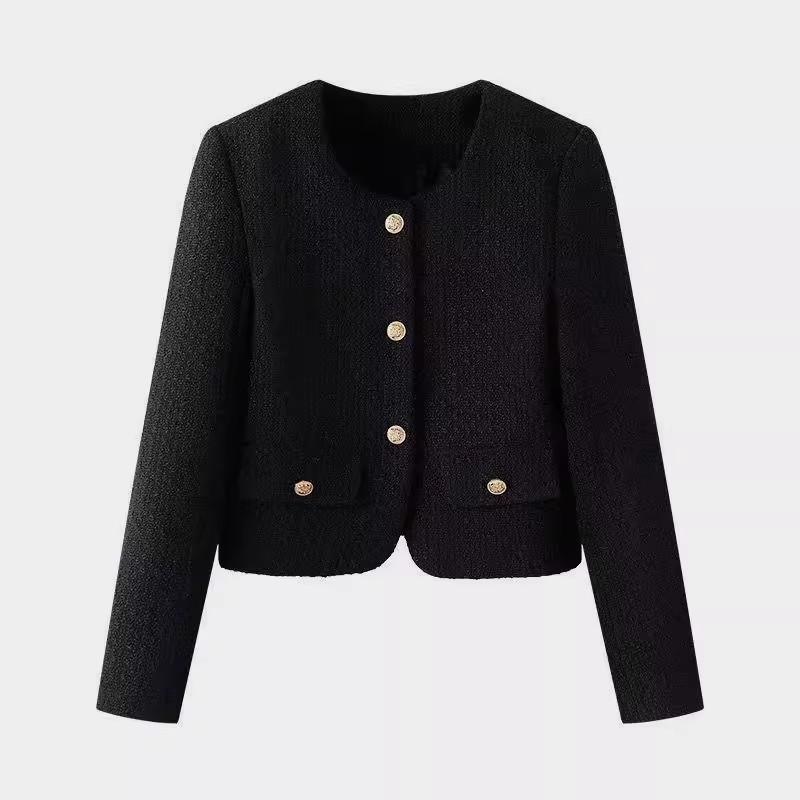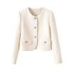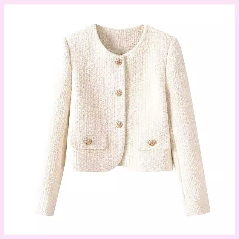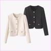 Abrigo corto de cuello redondo y botonadura sencilla para mujer, primavera y otoño 2025, informal, combinable, estilo occidental, de moda, de manga larga.
