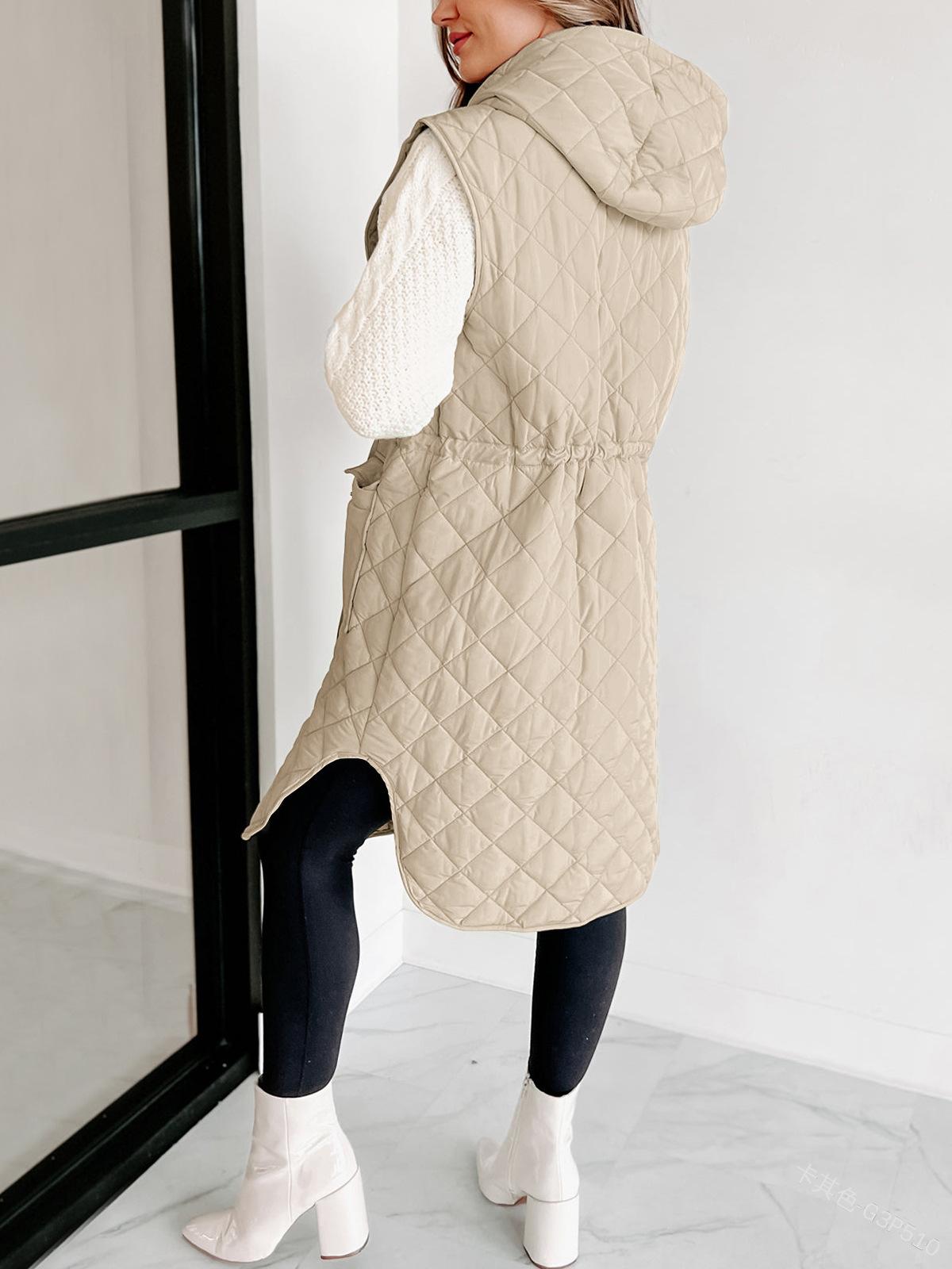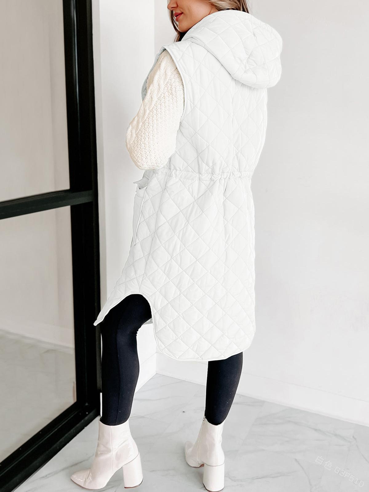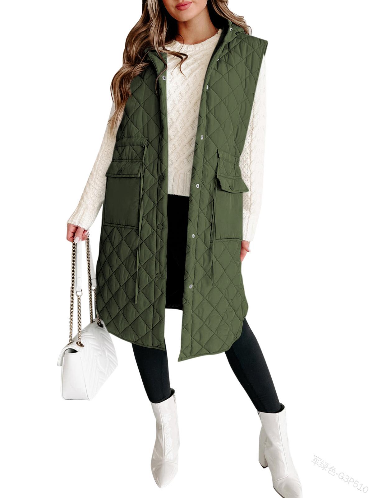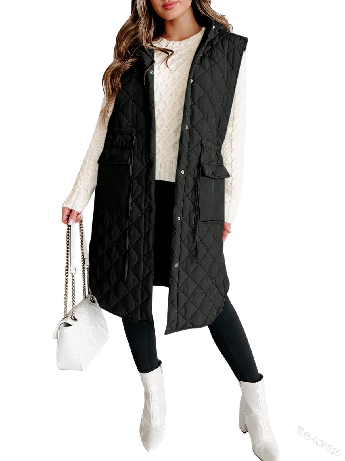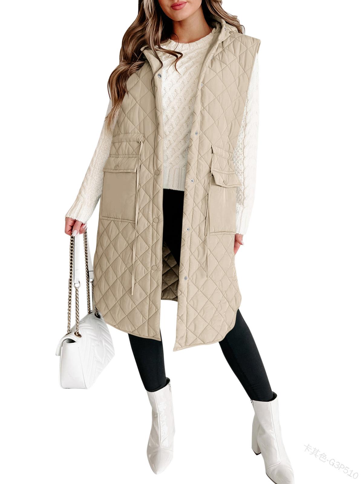Ins transfronterizo para damas europeas y americanas otoño e invierno nuevo chaleco con capucha sin mangas de algodón acolchado con diamantes, abrigo de algodón suelto con cordón, peso: 365-425 gramos