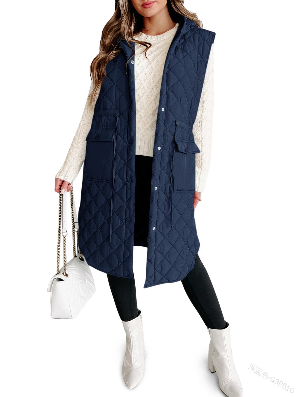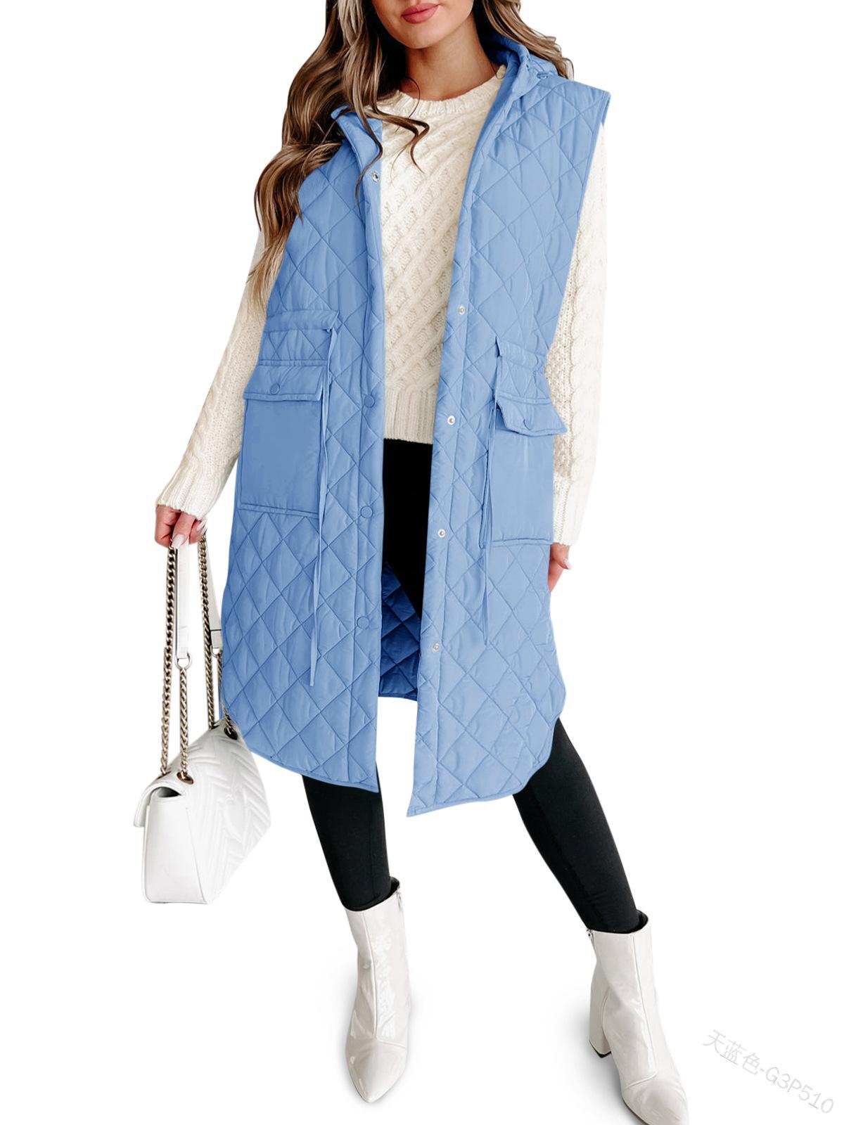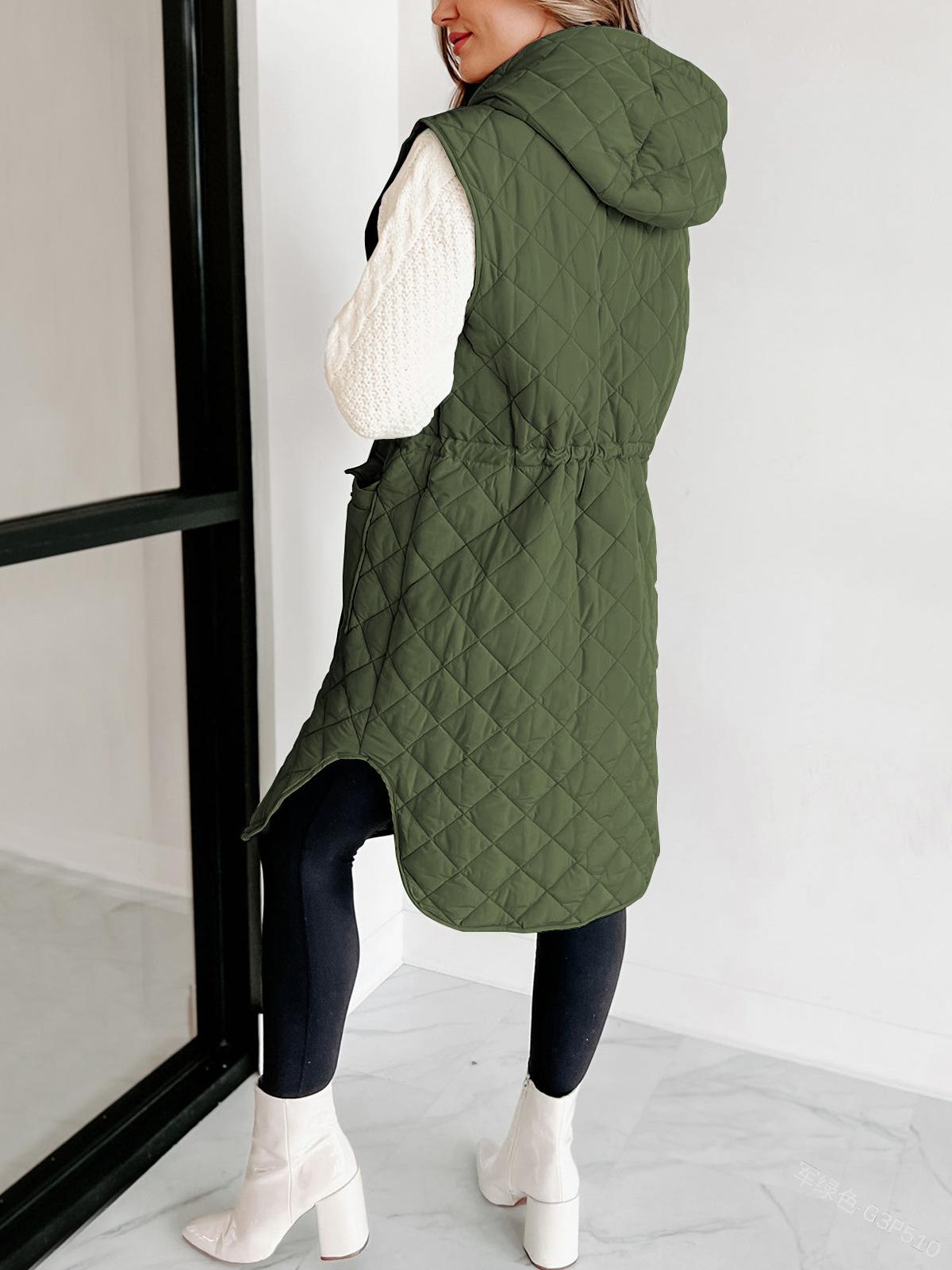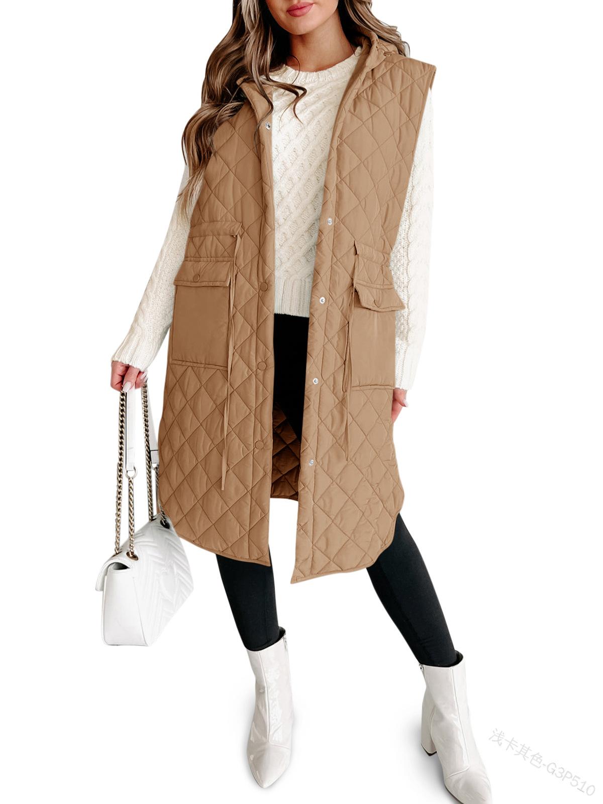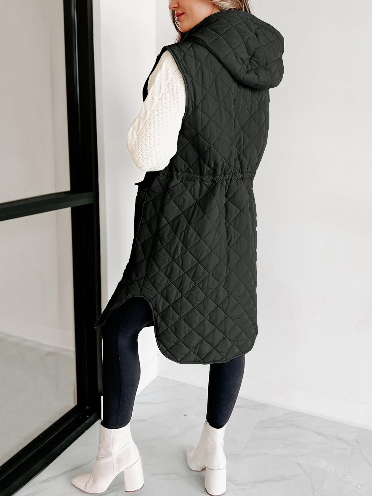 Ins transfronterizo para damas europeas y americanas otoño e invierno nuevo chaleco con capucha sin mangas de algodón acolchado con diamantes, abrigo de algodón suelto con cordón, peso: 365-425 gramos