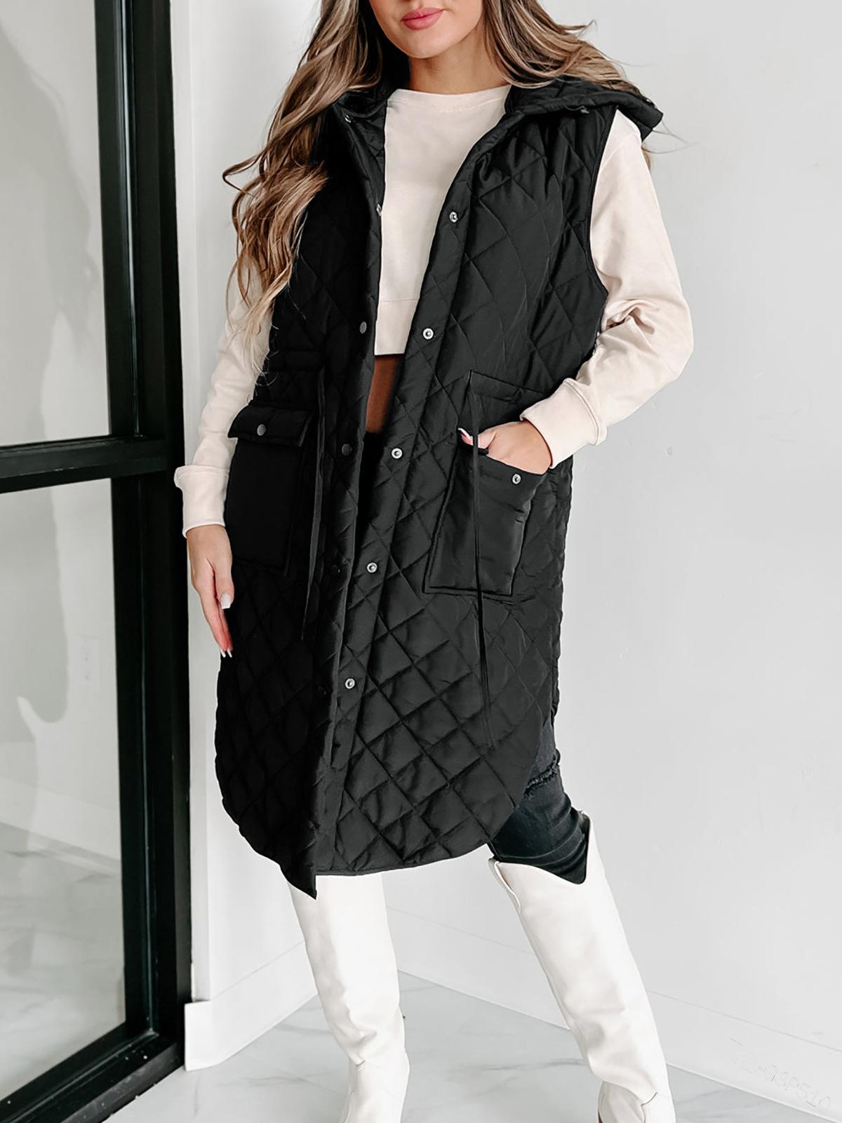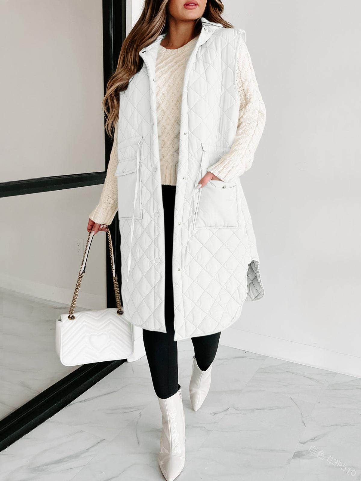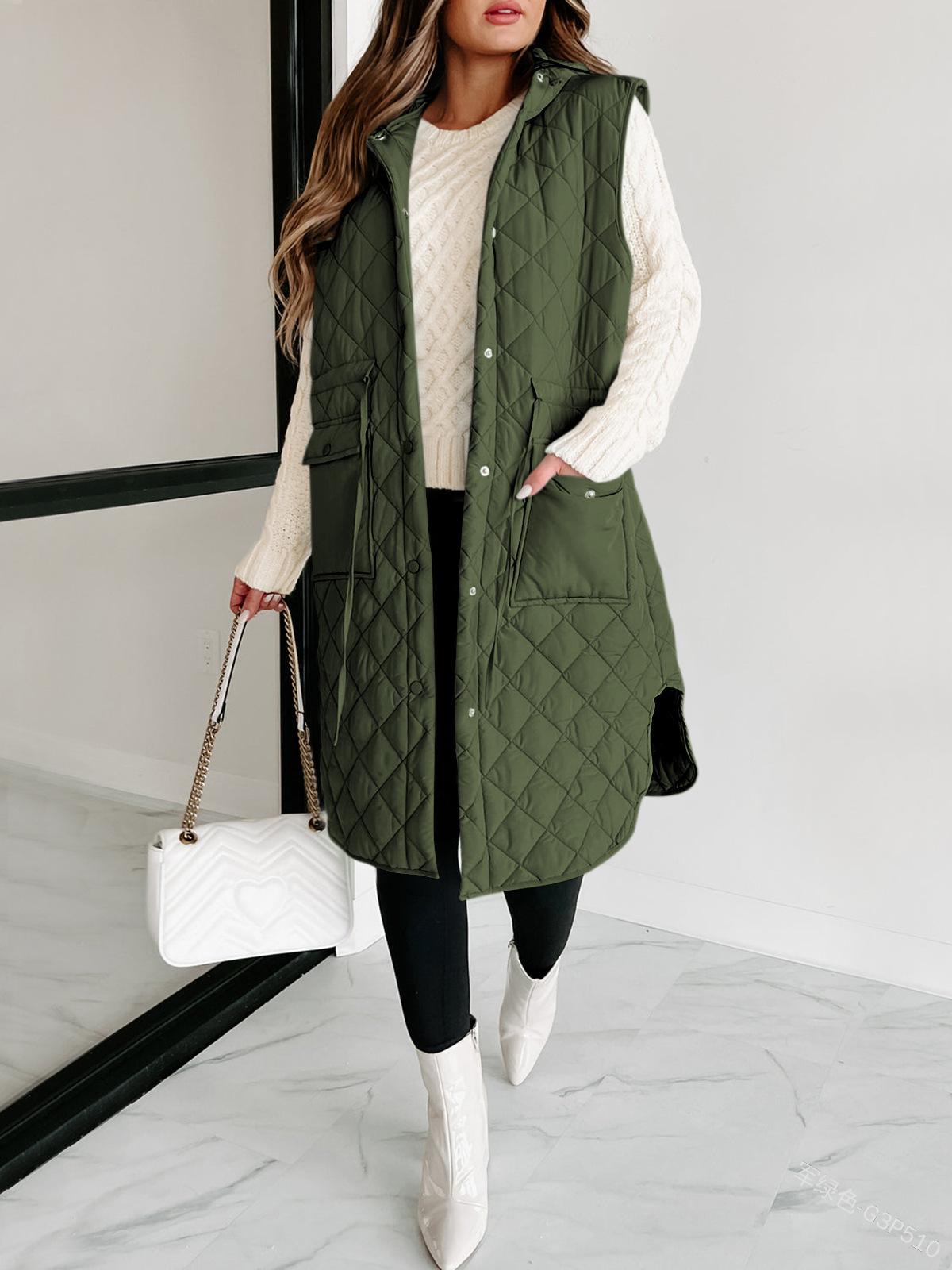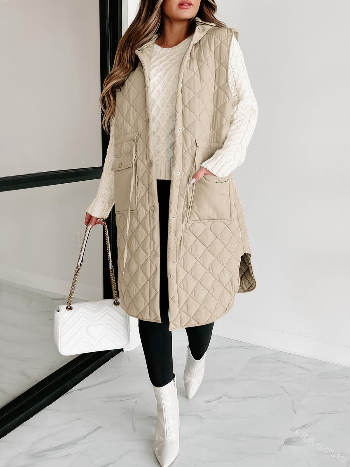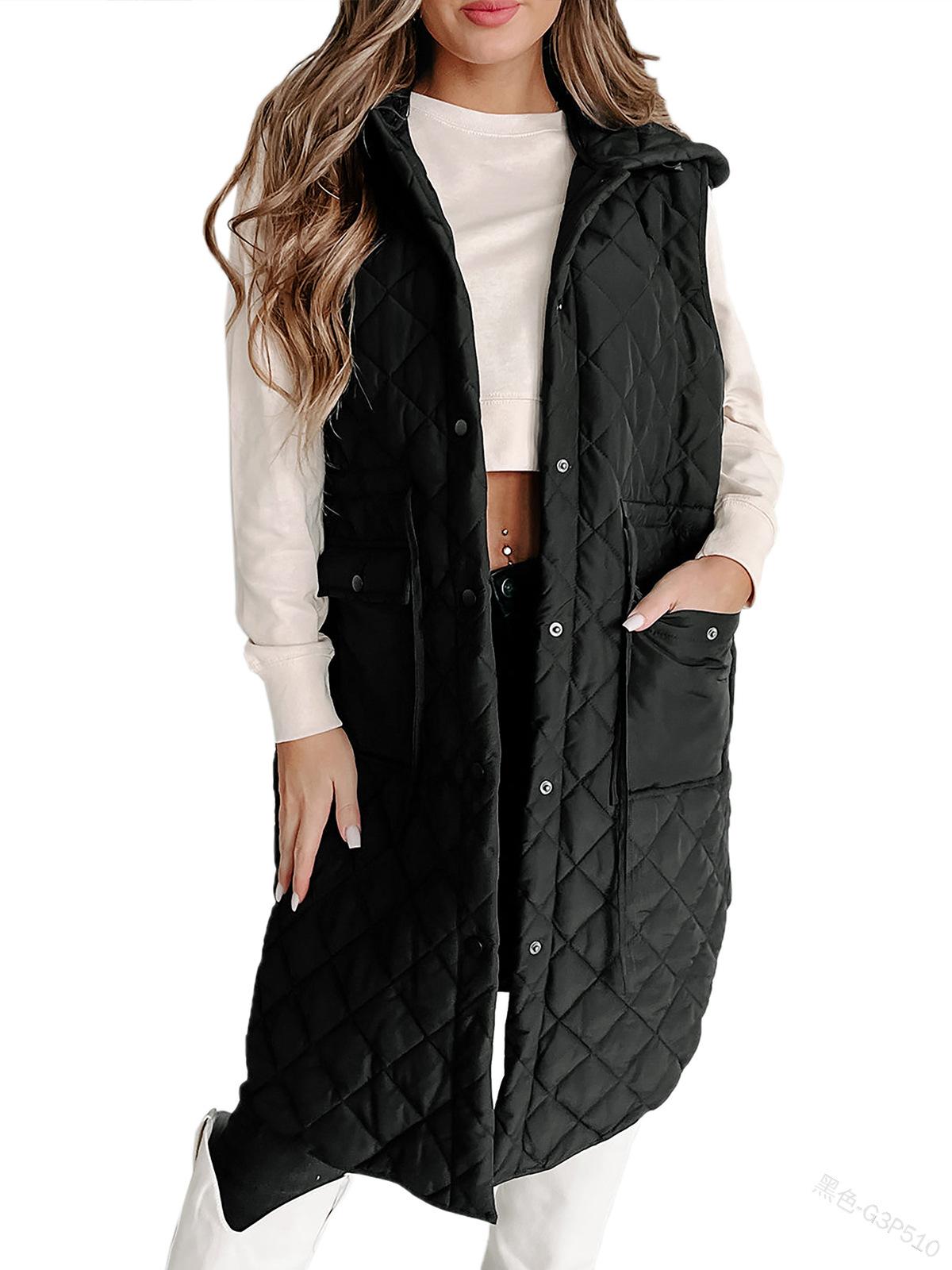 Ins transfronterizo para damas europeas y americanas otoño e invierno nuevo chaleco con capucha sin mangas de algodón acolchado con diamantes, abrigo de algodón suelto con cordón, peso: 365-425 gramos
