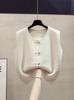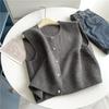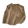 Estilo Suave Fila Sencilla Botón Dorado Pequeño Cuello Redondo Chaleco de Punto Cárdigan para Mujer Estilo Coreano Primavera y Otoño Top Chaleco sin Mangas