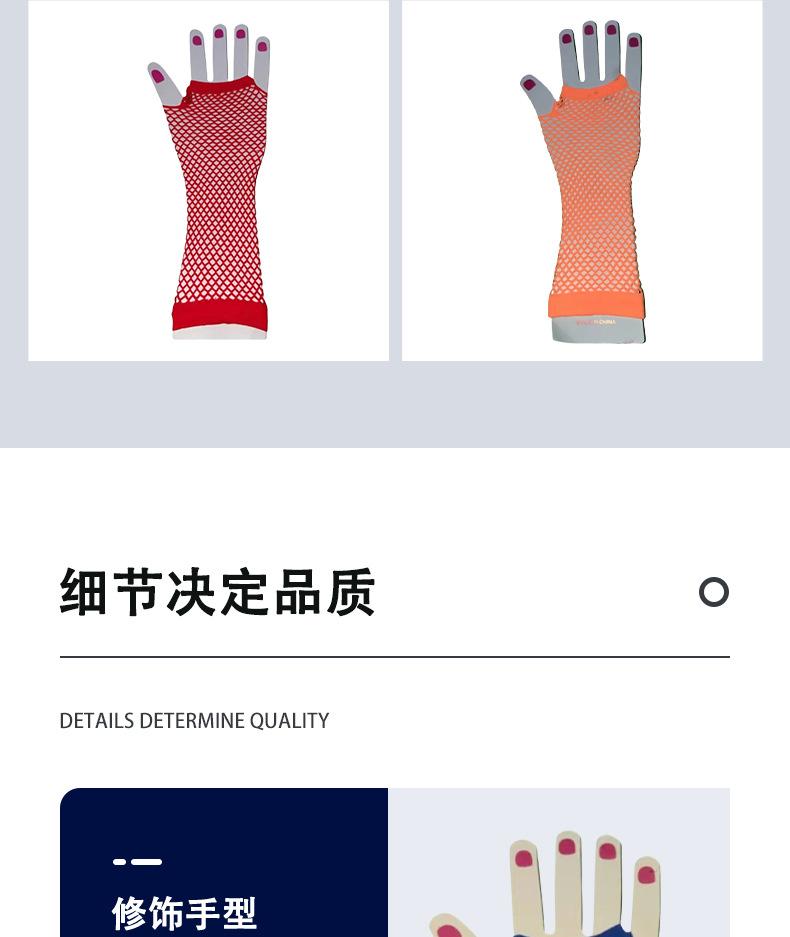 Guantes de Red para Adulto Europeos y Americanos al Mayoreo Coloridos Cortos Medianos Elásticos para Fiesta Nupcial Fiesta Sin Dedos Día de Halloween