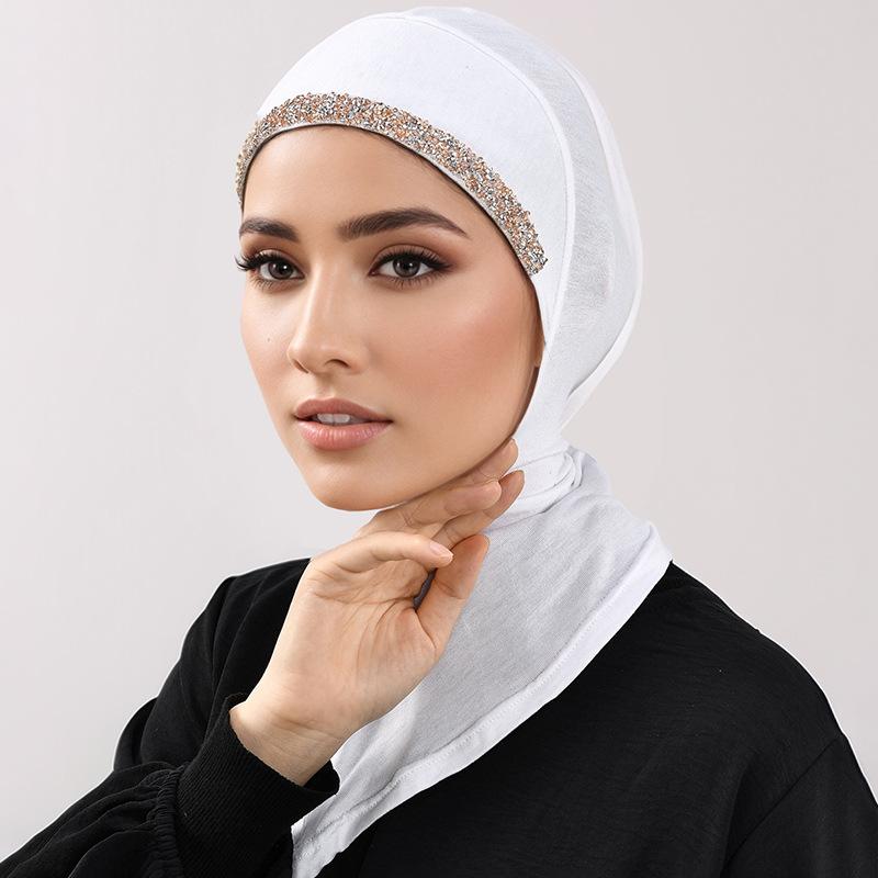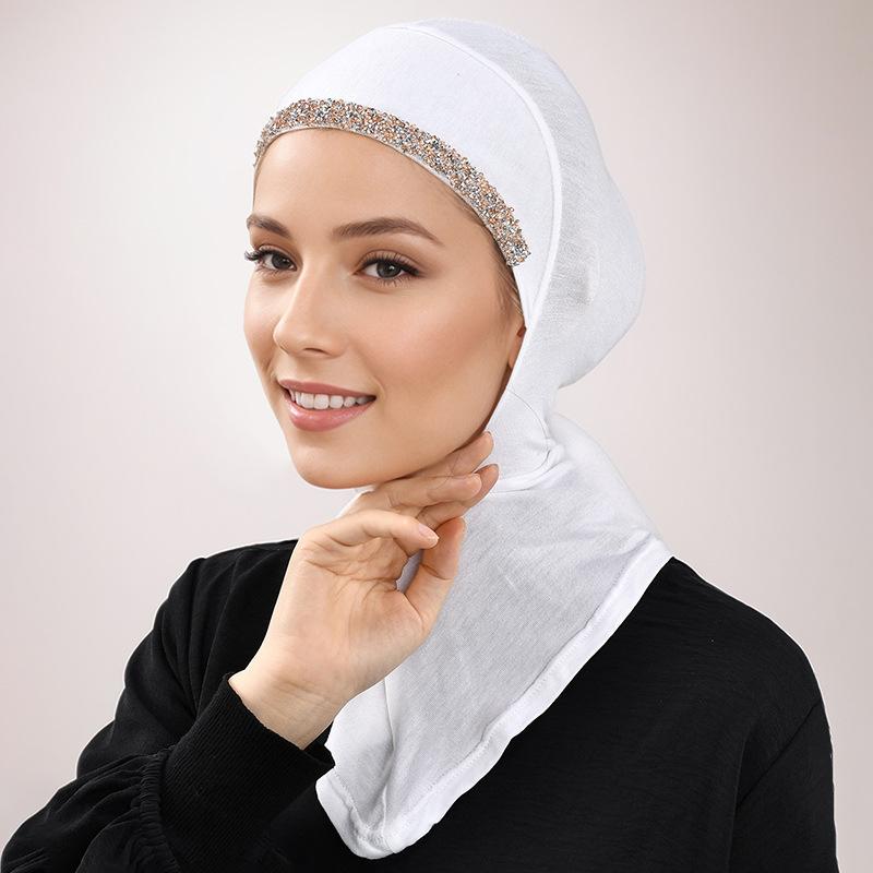 2025 nuevo modal algodón mercerizado color sólido cuello pedrería gorro largo jersey base gorro pedrería cabello blanco gorro de mujer