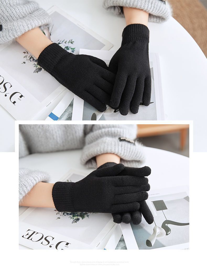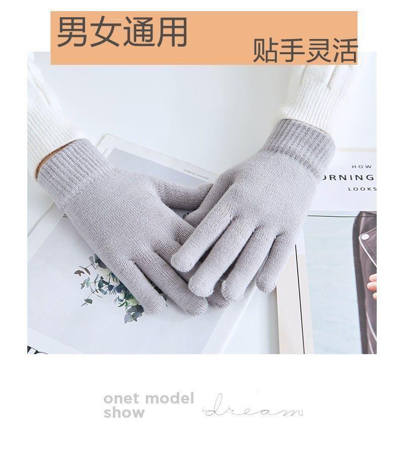 Guantes de lana de color sólido para otoño e invierno, venta al por mayor de fábrica, guantes de punto gruesos y cálidos, guantes de dedo completo para adultos