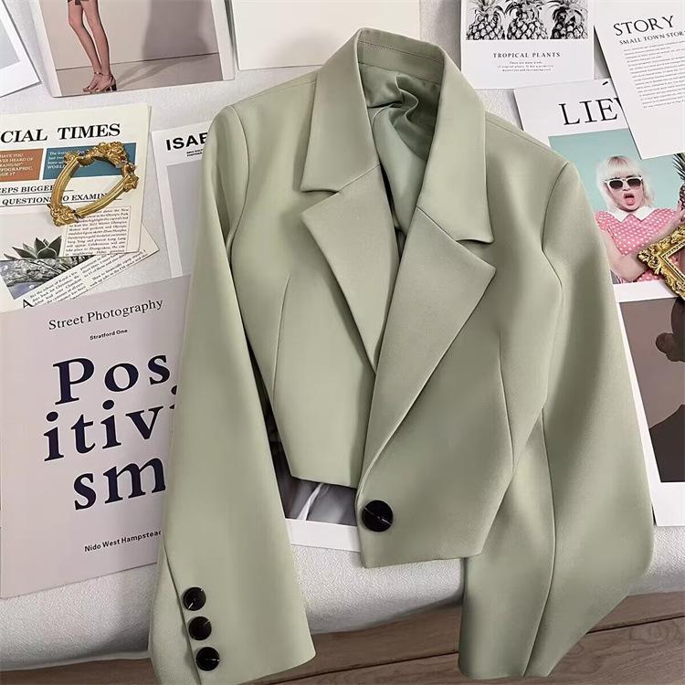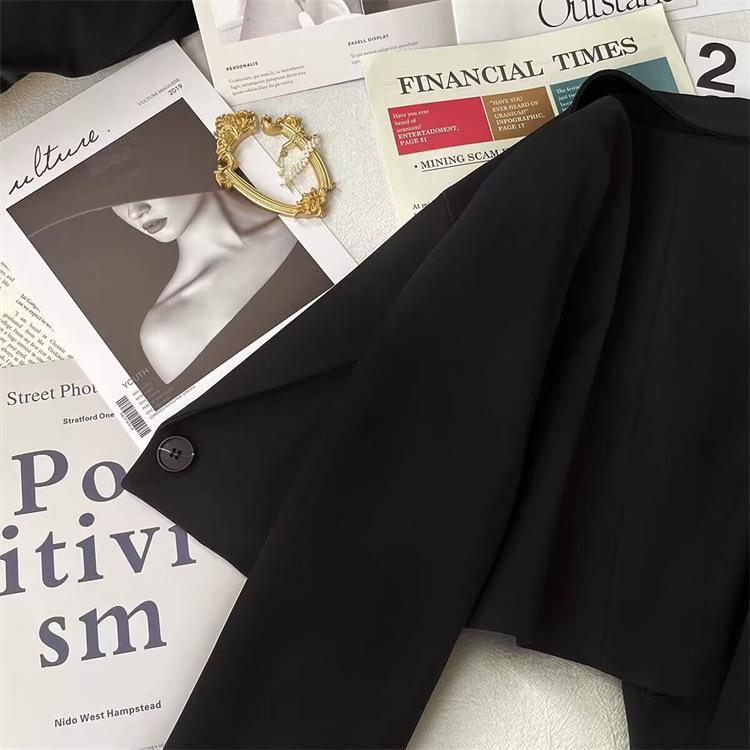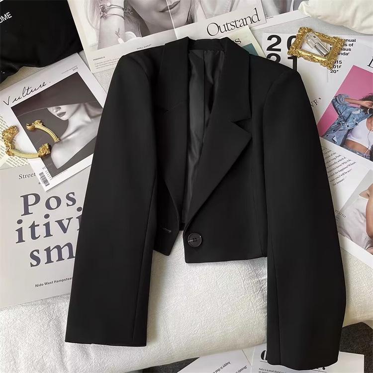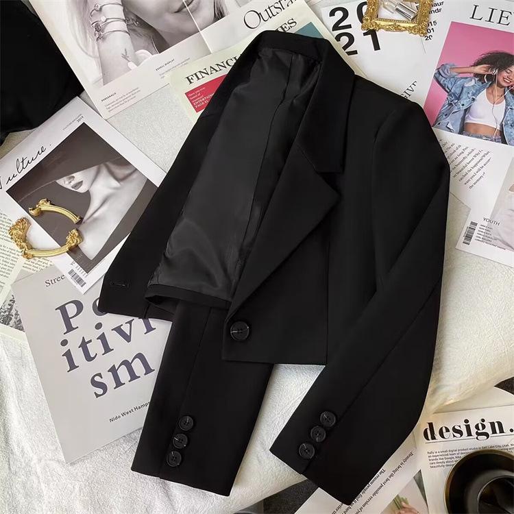 Chaqueta de Traje Corta para Mujer Talla Pequeña Primavera y Otoño 2025 Negro Otoño Estudiante Nuevo Combinación Versátil Traje Pequeño Mujeres a la Moda