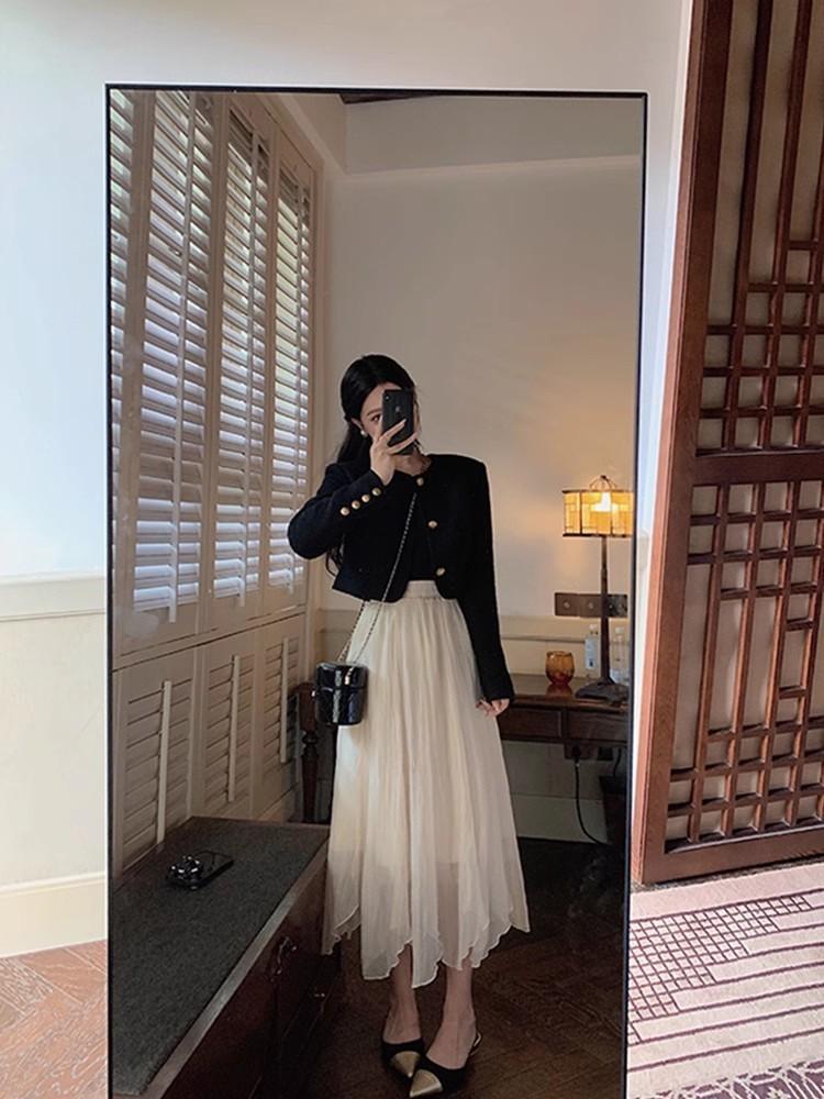 Abrigo estilo tweed para mujer primavera y otoño nuevo estilo estilo francés estilo callejero holgado y versátil elegante top corto de manga larga para damas