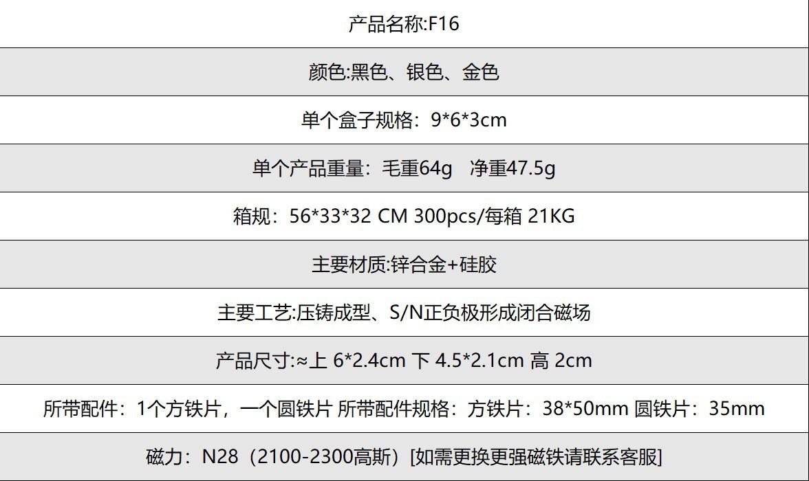 F16 magnetic gunmetal [color box], F16 magnetic silver [color box], F16 magnetic gold [color box]