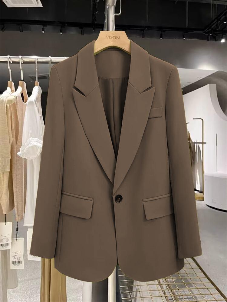 Blazer Marrón para Mujer Primavera y Otoño 2025 Nuevo Nicho Moda Versátil de Un Botón Exportación Traje Pequeño para Mujer