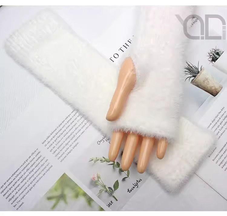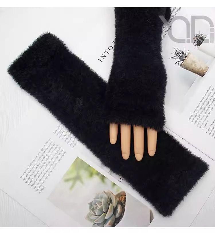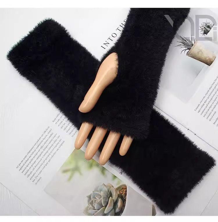 Manguitos Mangas Falsas para Mujer Otoño e Invierno Tejido de Lana Guantes Largos de Medio Dedo Calentador de Brazo Terciopelo Grueso