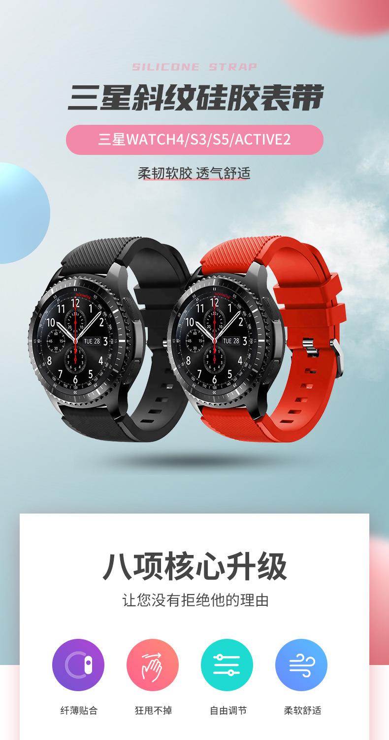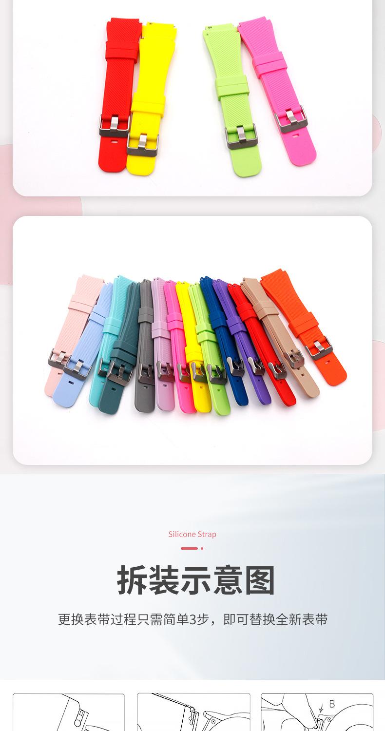 Adecuado para Samsung S3 Correa de Silicona de Sarga 20/22mm Pasador Rápido Oficial Mismo Estilo Correa de Silicona Monocromática Huawei