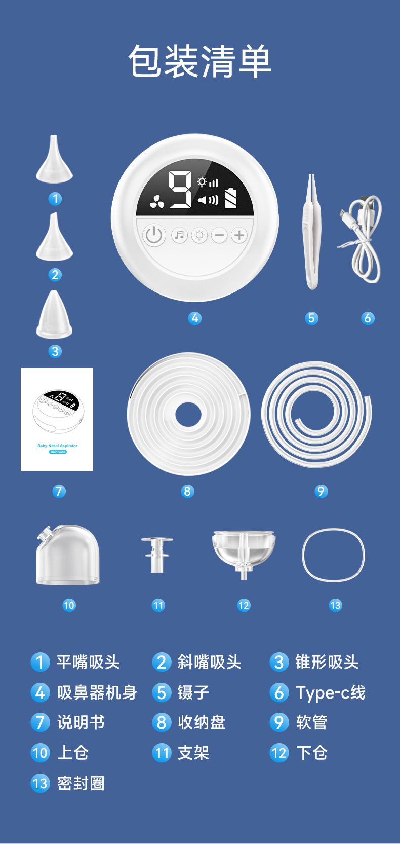 Accesorios: incluye caja de color * 1 juego de pinza nasal * 1 cabezal de succión * 3, cable de carga rápida tipo C * 1 tubo de aire * 1 manual de instrucciones * 1