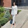 2025 Nuevo traje urbano elegante de algodón y lino para mujer europea y americana de verano y otoño, camisa de manga larga con cintura entallada y pantalones de pierna ancha, femeninoprecio de descuento: