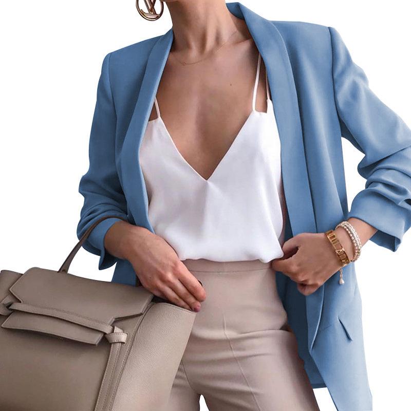 2025 Amazon WISH venta caliente otoño manga larga cárdigan color sólido chaqueta traje pequeño para mujerprecio de descuento: