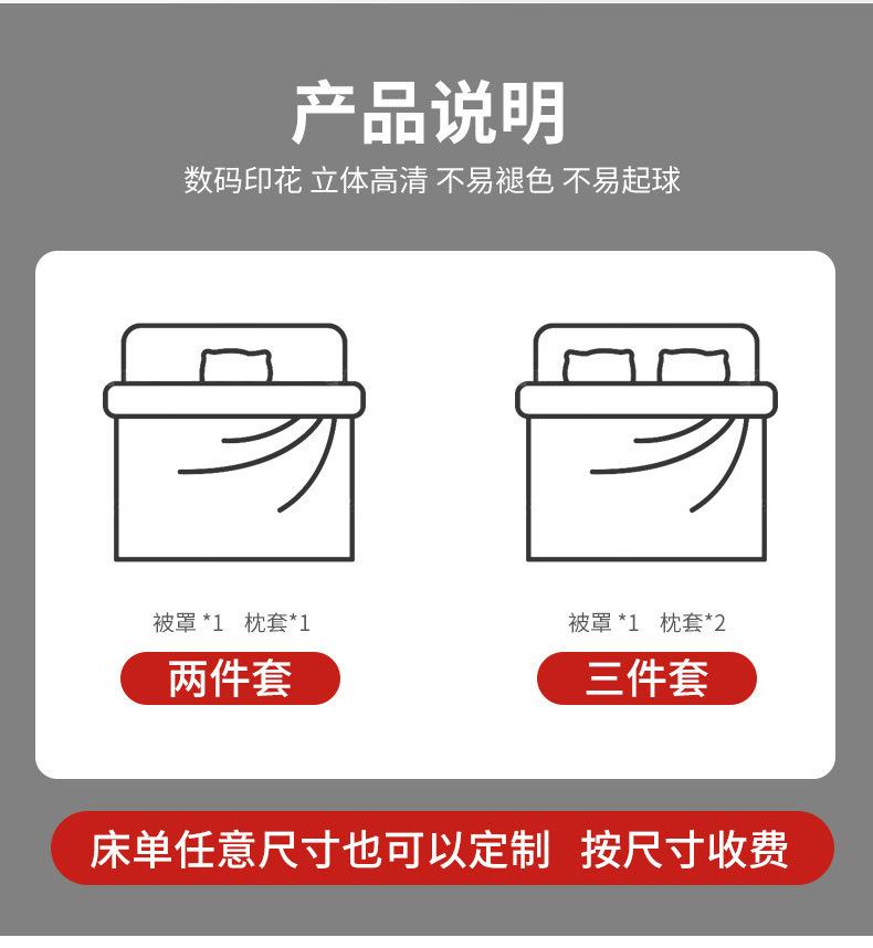 Nombre del producto: Funda de edredón y funda de almohada con impresión digital 3D personalizada (las sábanas o sábanas ajustables son de colores sólidos de forma predeterminada y las impresas deben comunicarse con el servicio de atención al cliente para obtener tarifas de impresión adicionales)