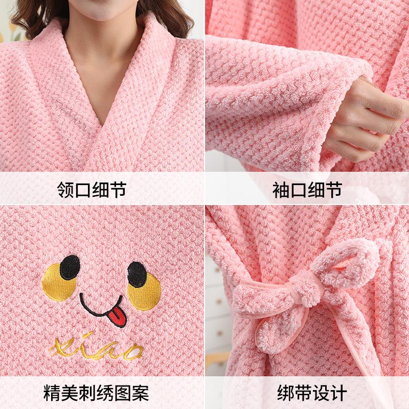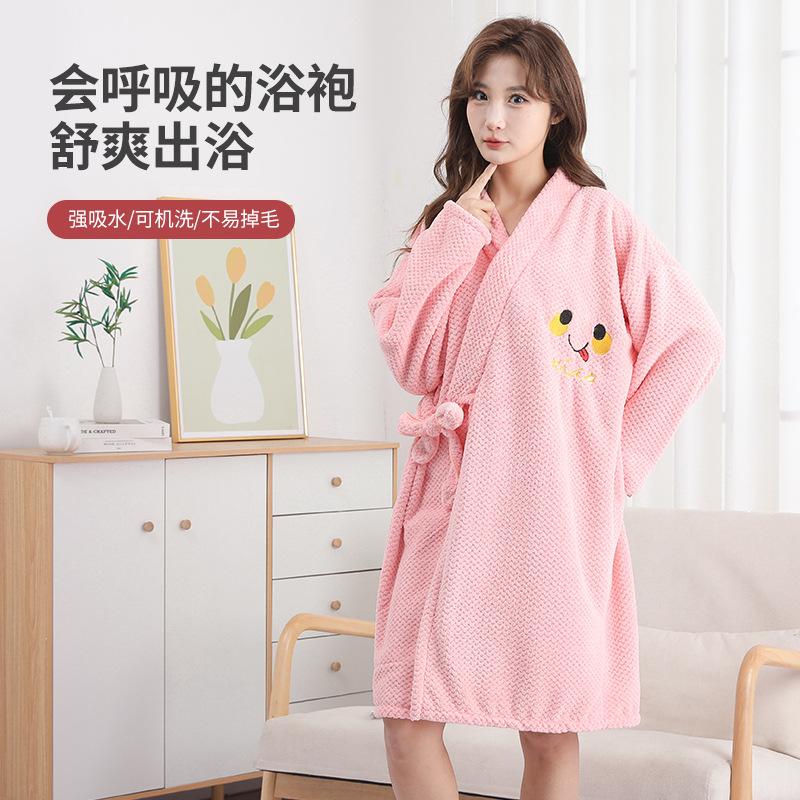 Vestido de Baño de Vellón Coral para Primavera y Otoño Toalla de Baño para Mujer Espeso Suave Absorbente de Secado Rápido Pijama de Casa Bata de Baño