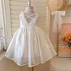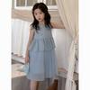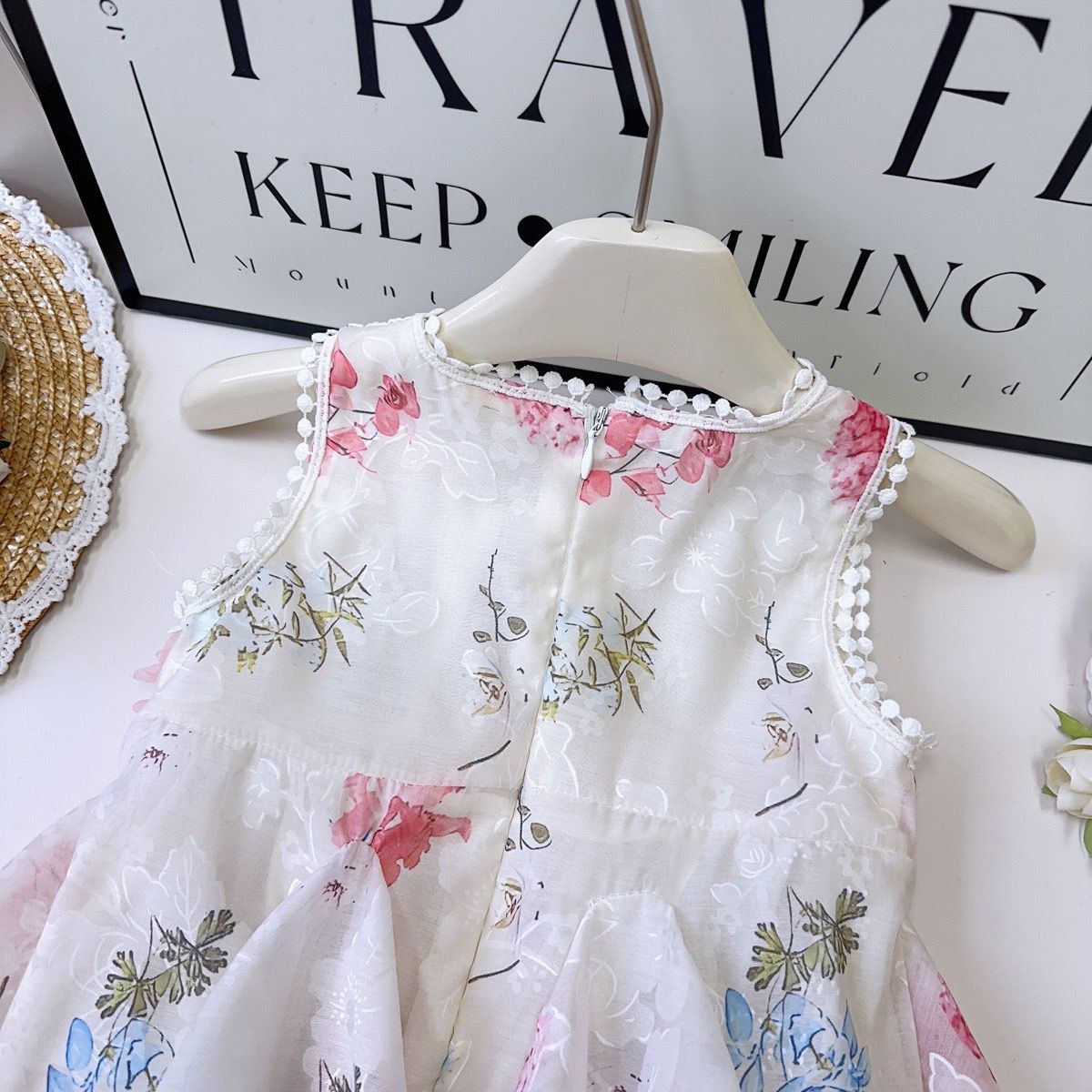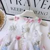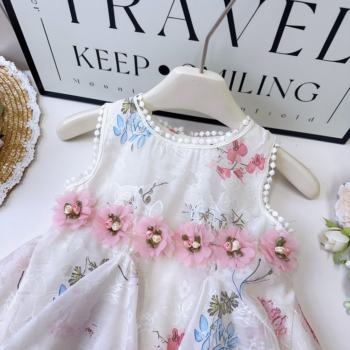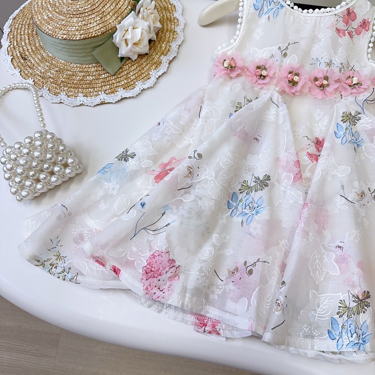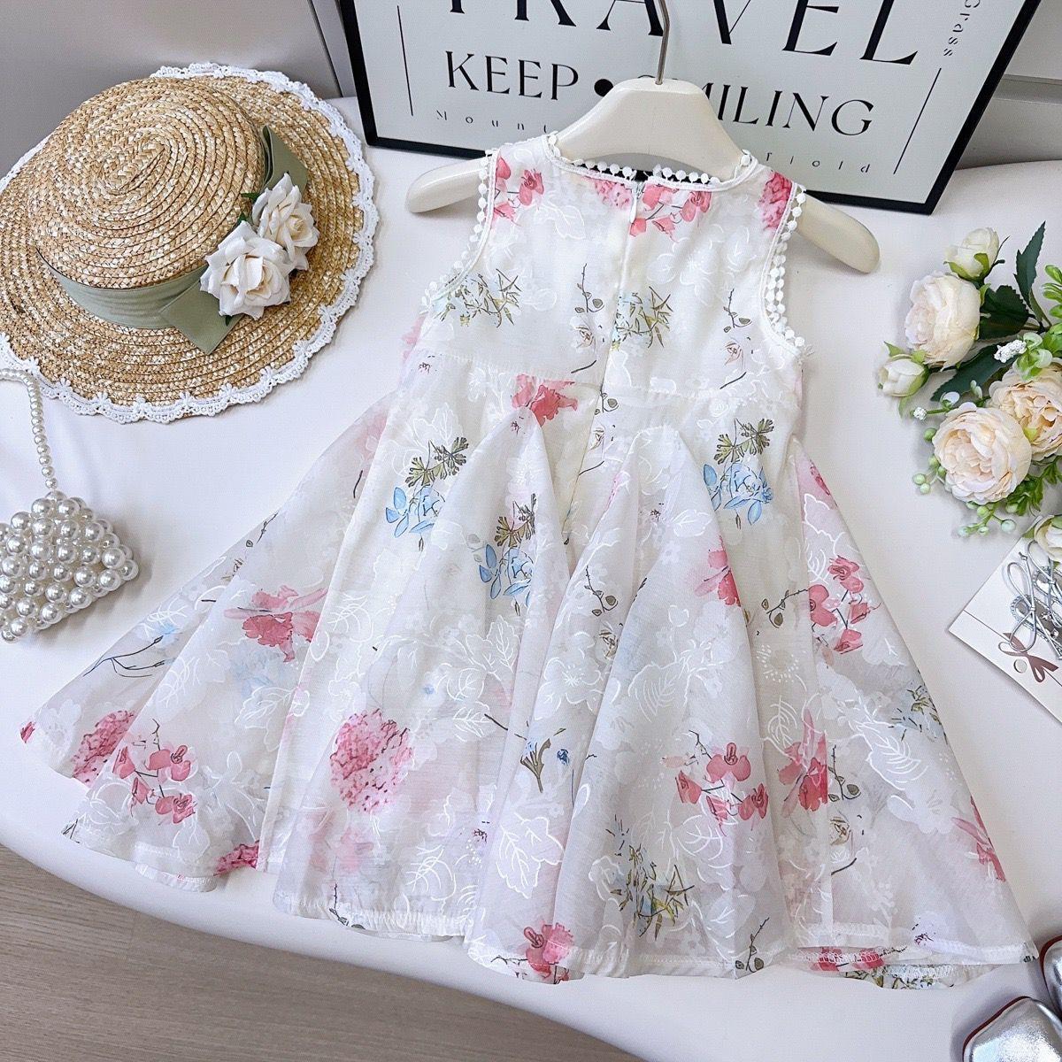 Vestido floral para niña, verano 2025, nuevo estilo, sin mangas, de malla, estilo princesa, estilo vacacional, chaleco