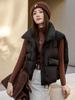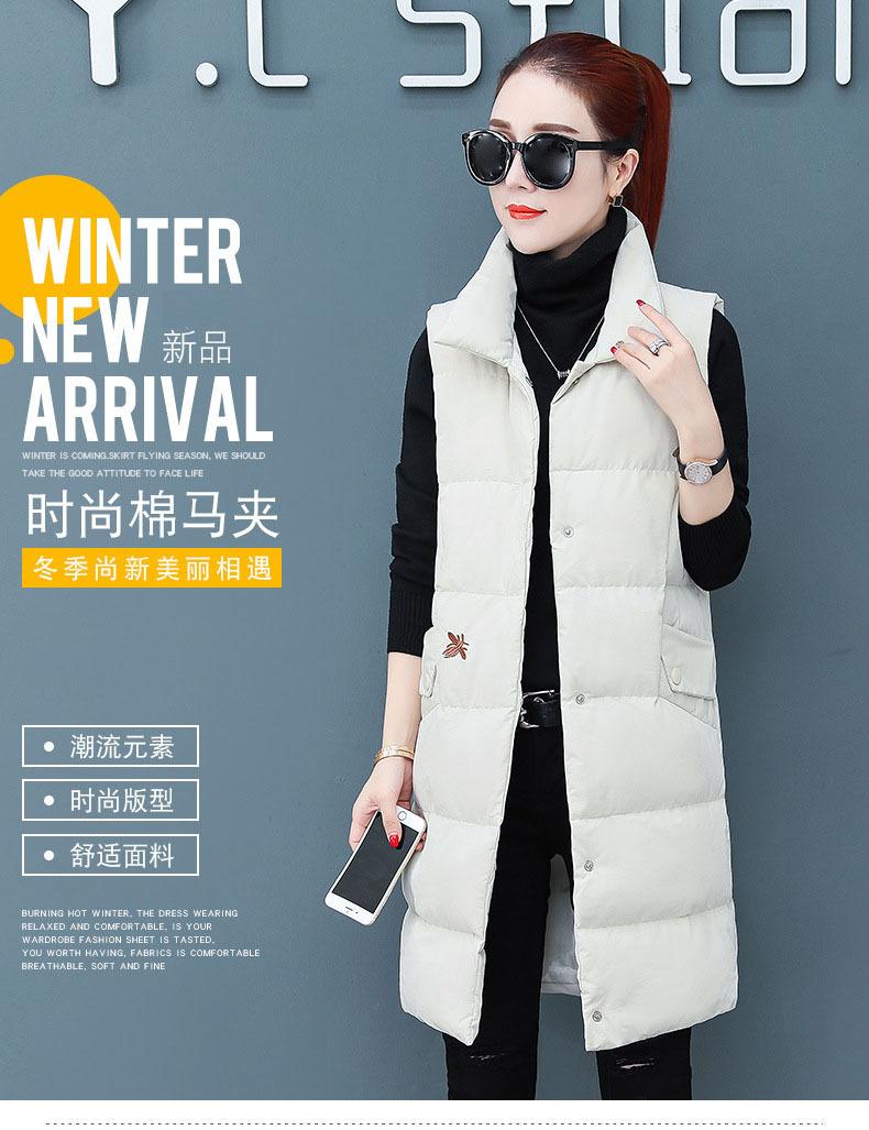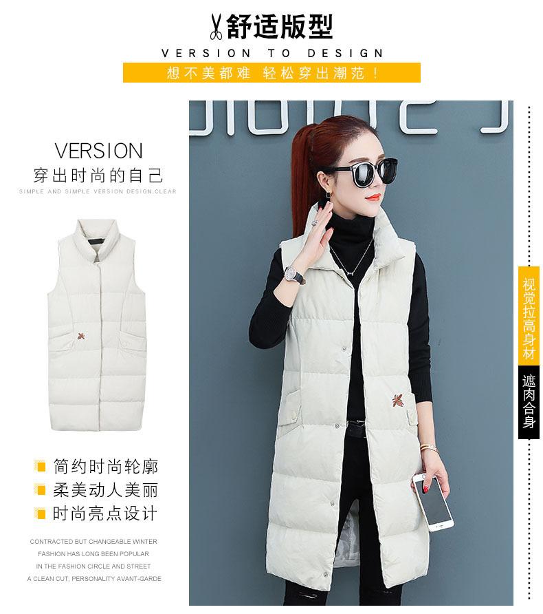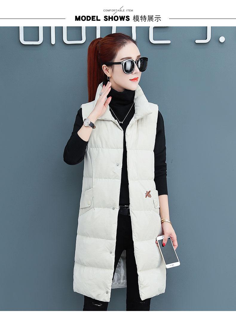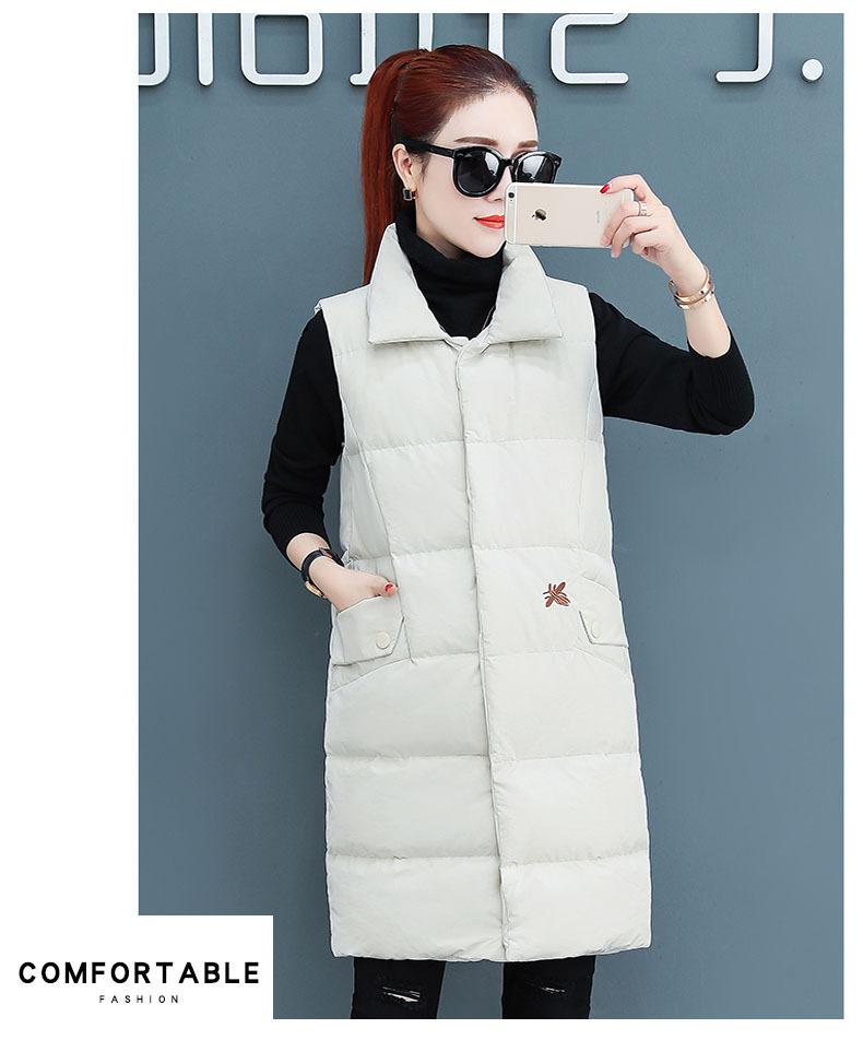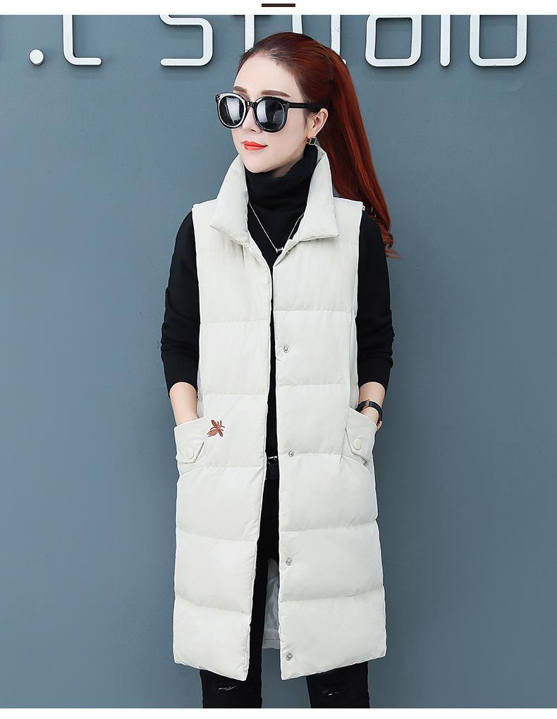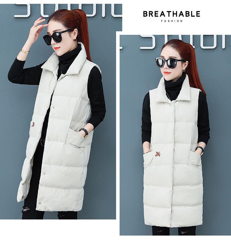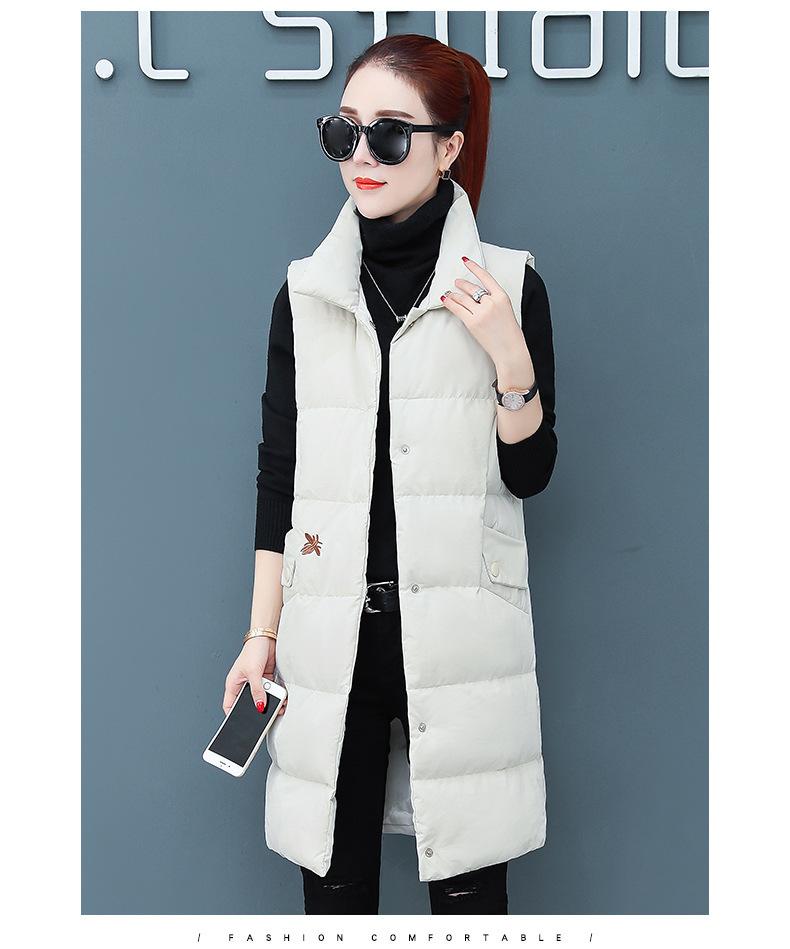 Chaleco de algodón de plumón para otoño e invierno, estilo urbano, informal, no coreano, con cuello levantado, color liso, de un solo pecho, blanco