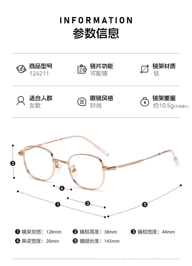 Las gafas de miopía de titanio puro ultraligeras de ala ancha para mujer se pueden equipar con marco de ojo plano de altura 124211 con protección contra la luz azul al por mayor