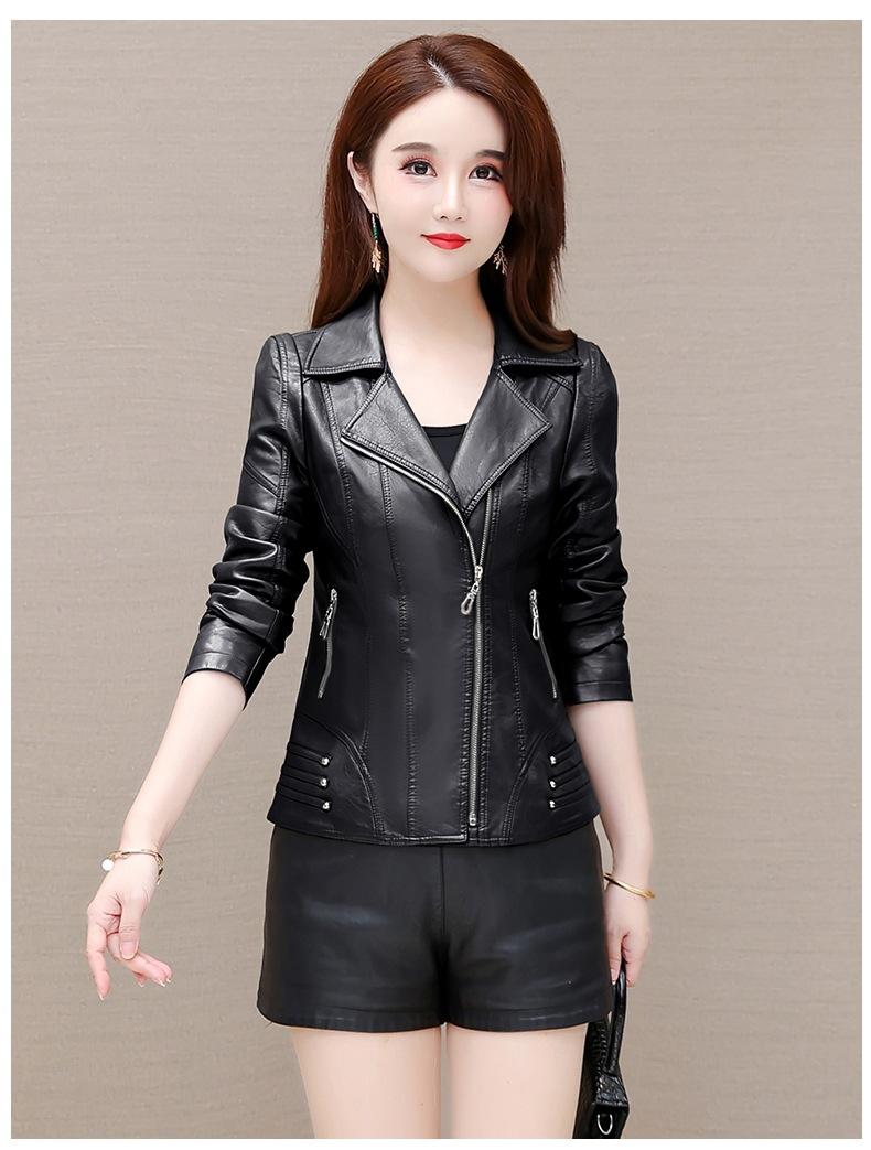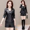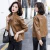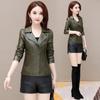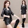 Chaqueta de Cuero PU para Mujer Ajustada Moda 2025 Nueva Primavera y Otoño Chaqueta Corta Ajustada con Cuello de Traje Top de Cuero de Moda para Mujer
