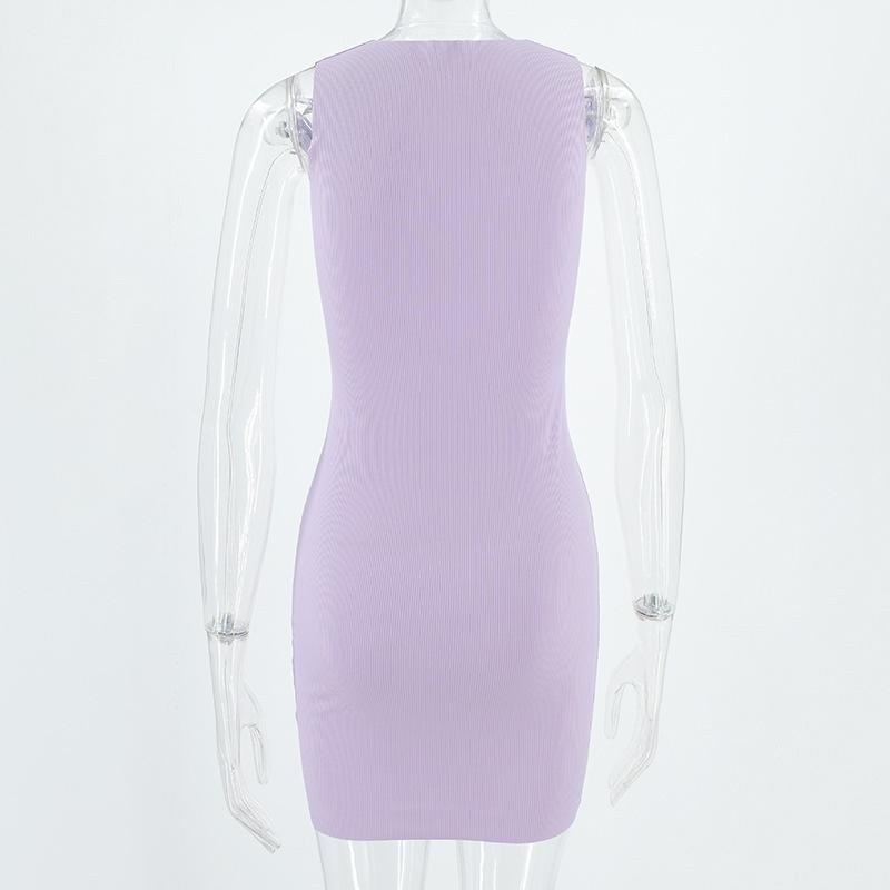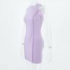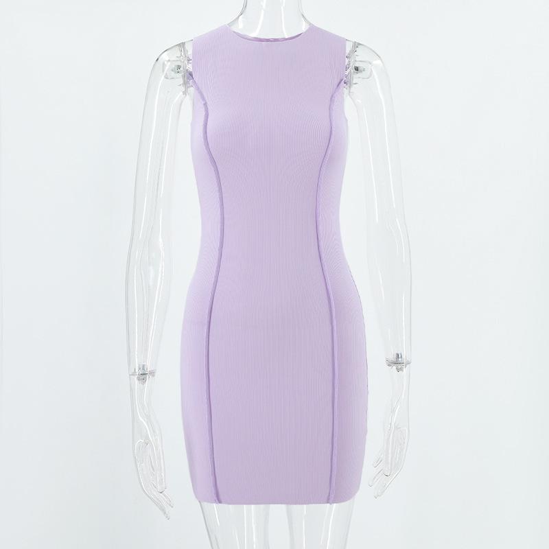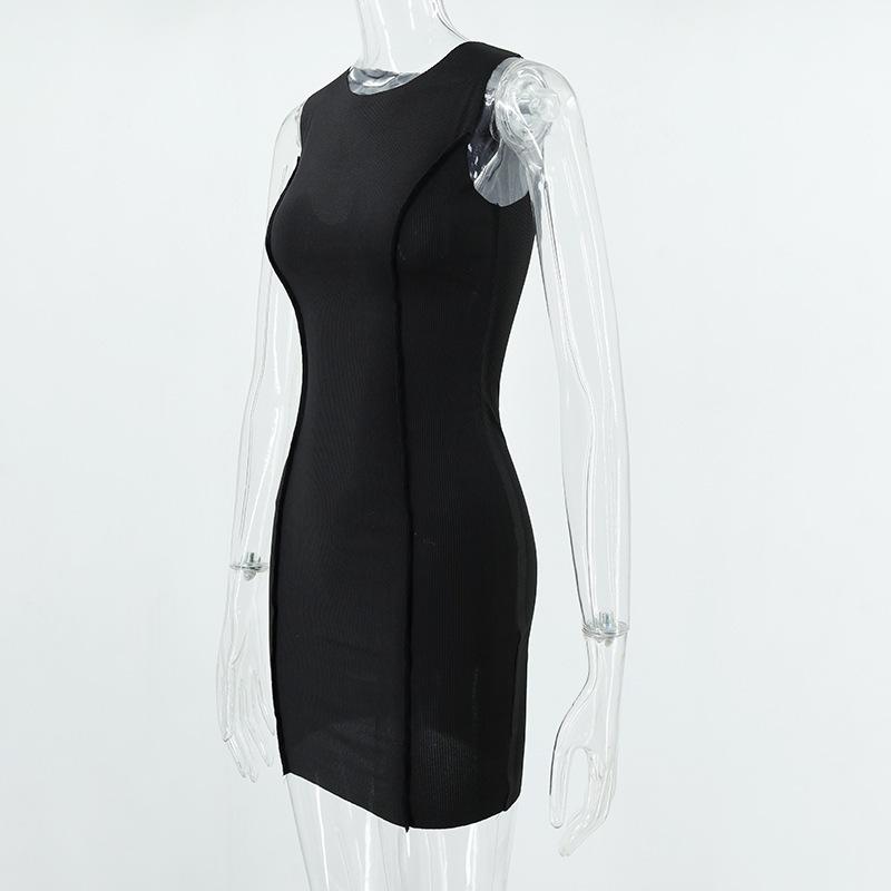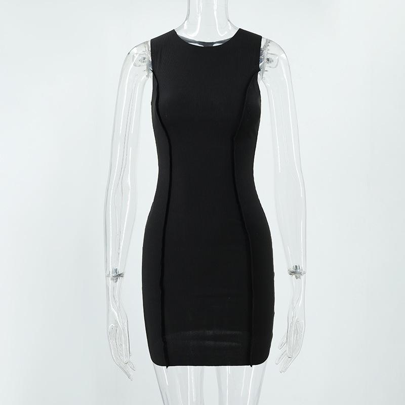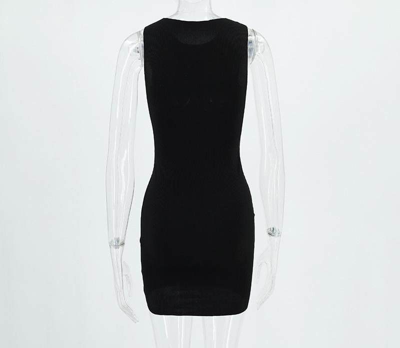 Transfronterizo Europeo y Americano en stock Estilo Europeo y Americano Cuello Redondo Sin Mangas Color Sólido Ajustado a la Figura Anti-costado Vestido Sexy de Cadera