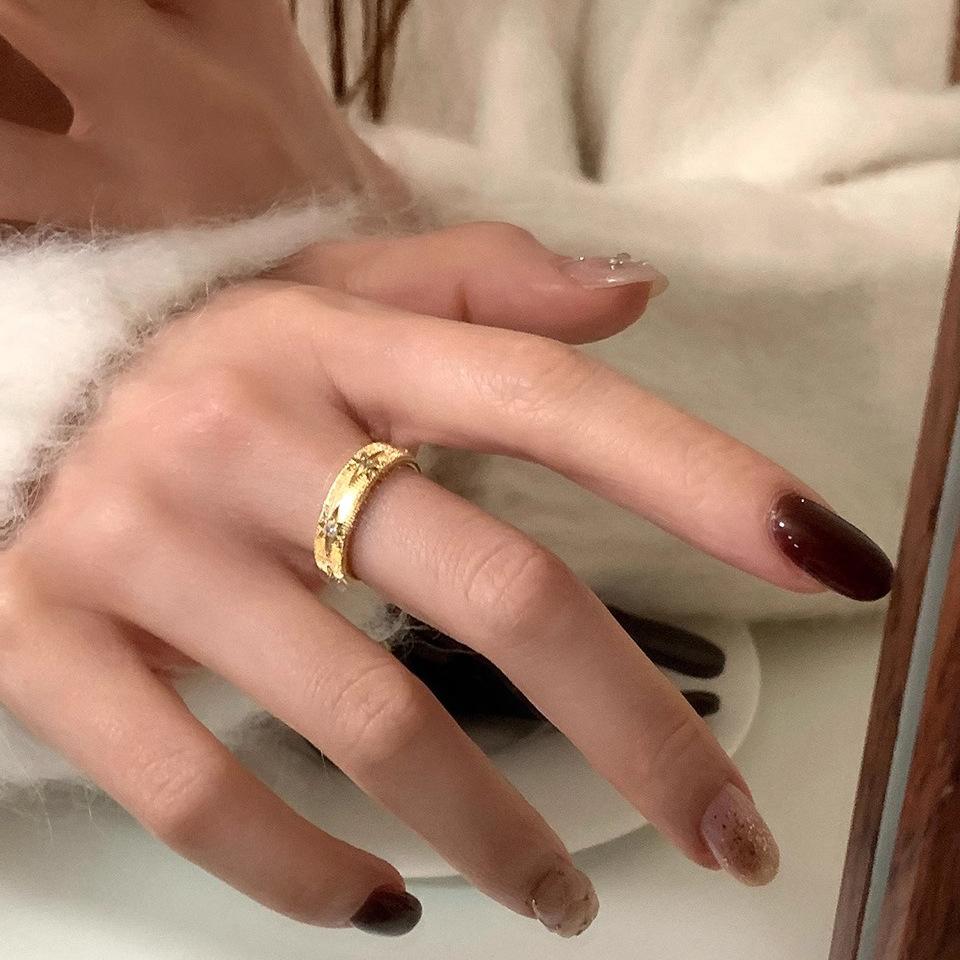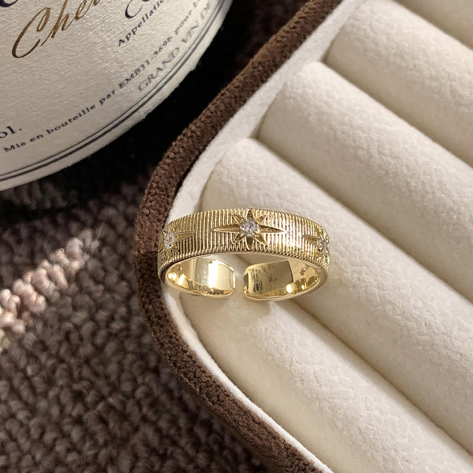 Anillo Versátil de Diamante Hueco Cepillado, Anillo de Dedo Índice de Lujo Ligero y Alta Gama, Anillo de Nicho de Alta Gama, Nueva Joyería de Mano