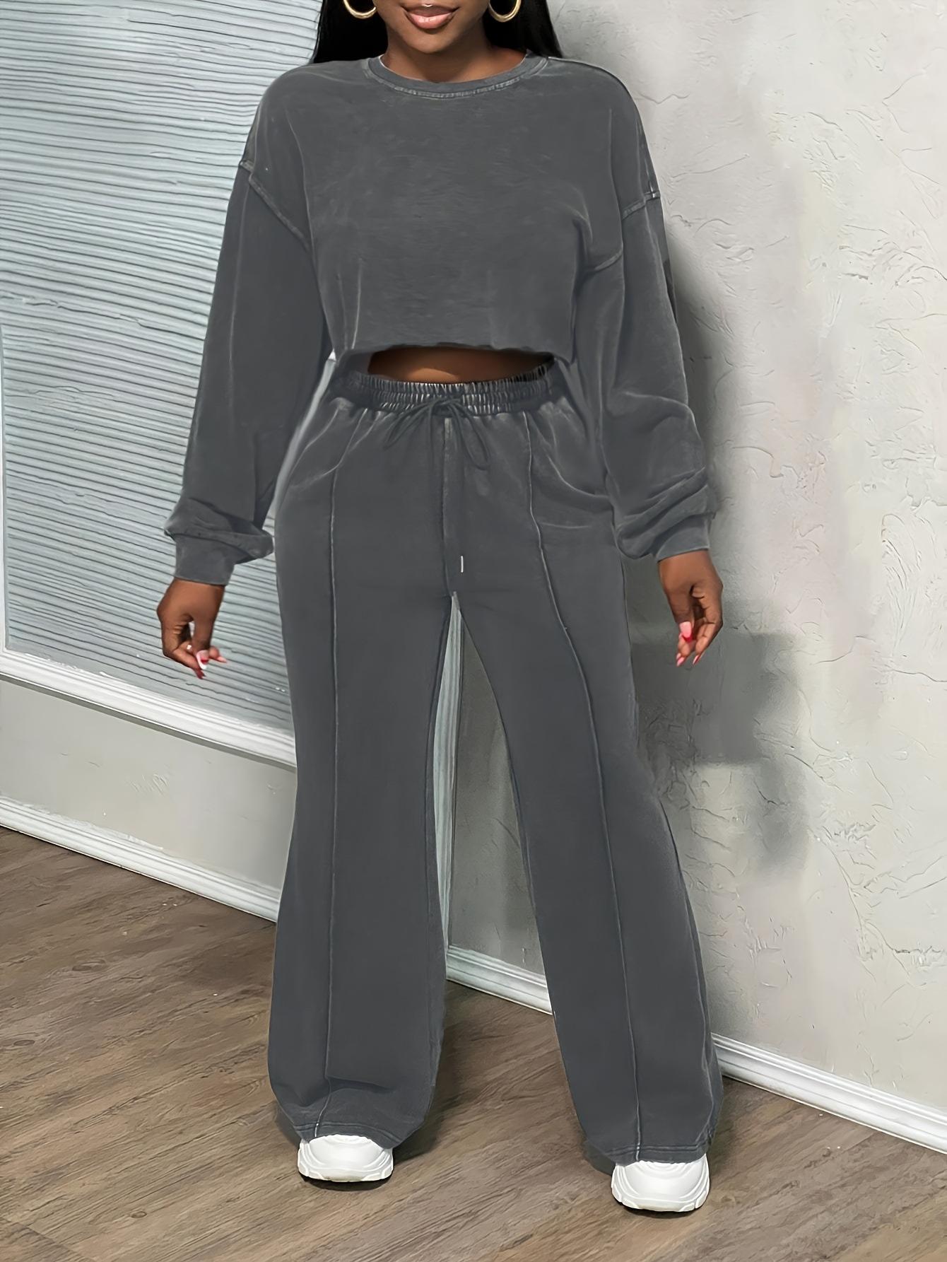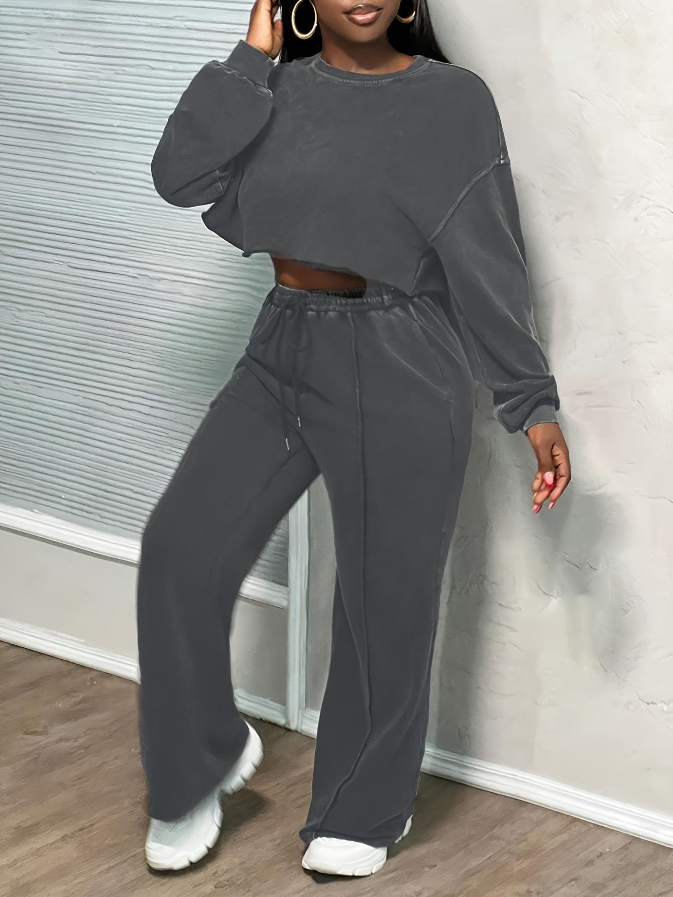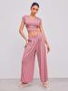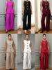 Nuevo Europeo y Americano Amazon Transfronterizo Color Sólido Traje Holgado Pierna Ancha Manga Larga para Mujer