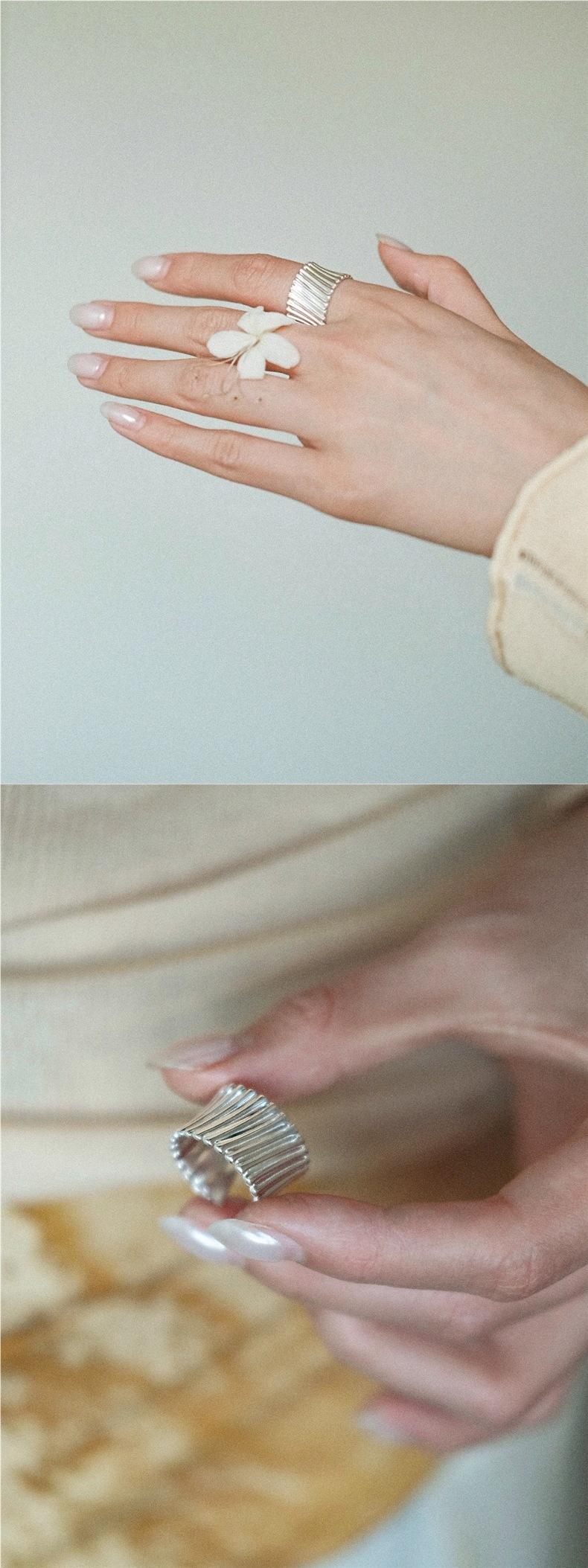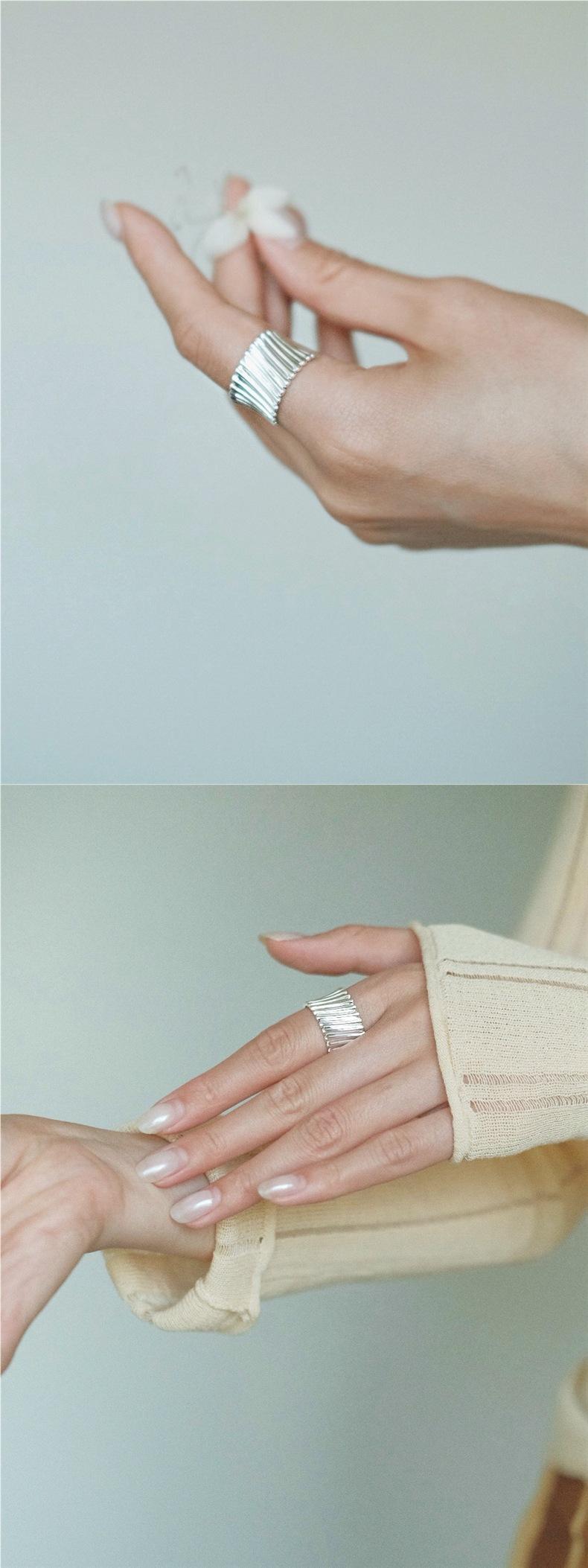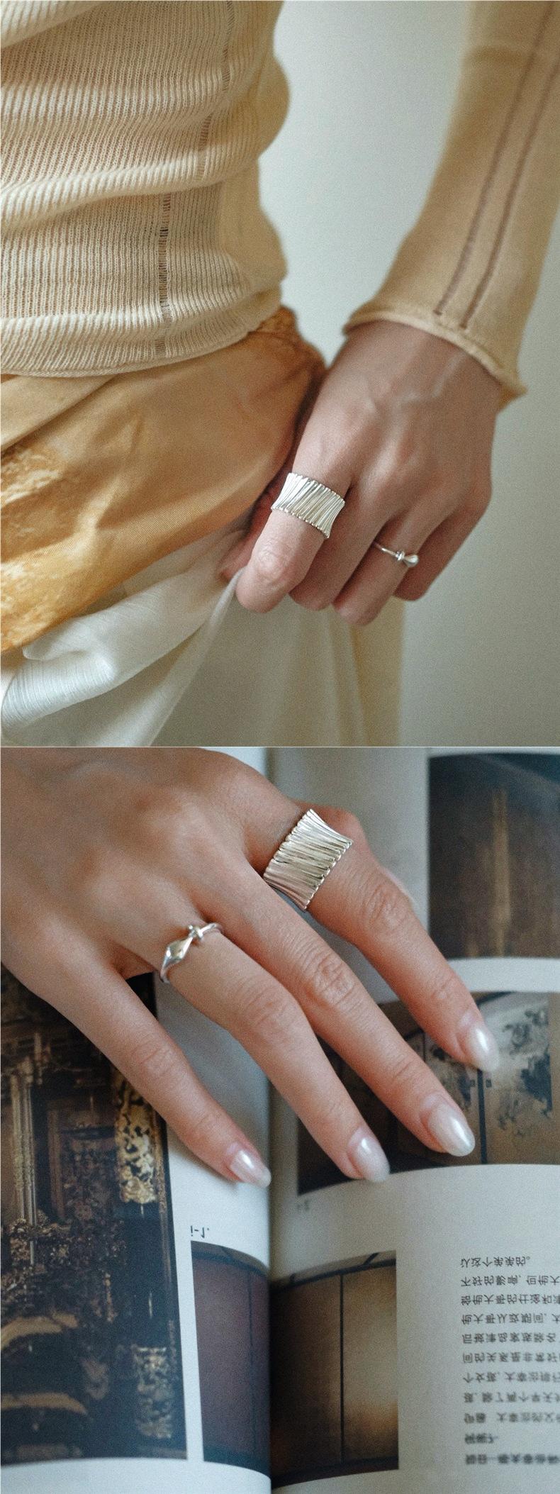 Anillo de Onda de Agua para Mujer, Anillo Abierto Versátil de Personalidad de Moda Geométrico Simple de Borde Ancho, Estilo Nicho Estilo Ins, Anillo para Dedo Índice