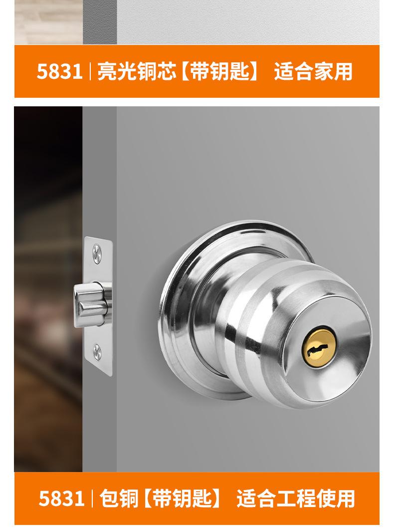 Cerradura de Bola de Acero Inoxidable al por Mayor para Puerta de Madera, Cerradura para Puerta de Baño/Inodoro, Cerradura para Puerta de Habitación 5831 Cerradura de Bola