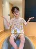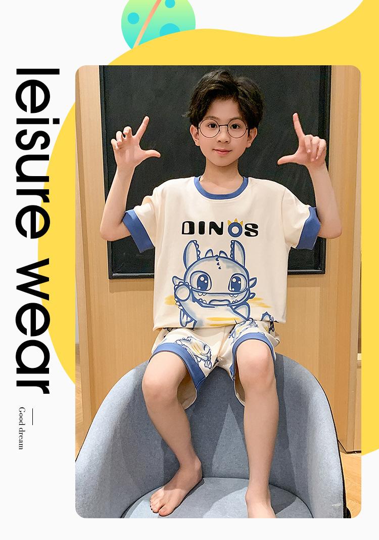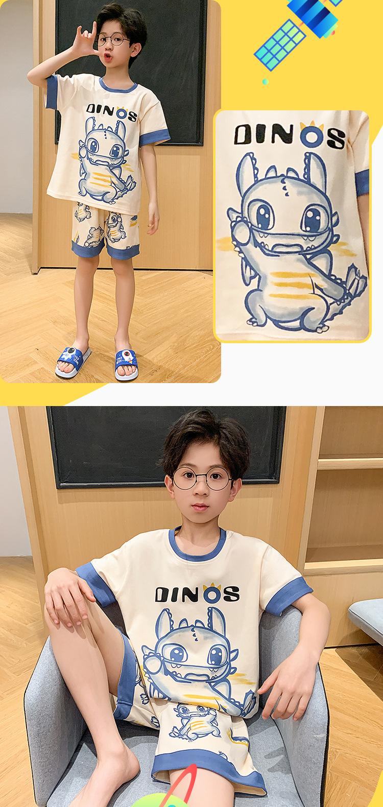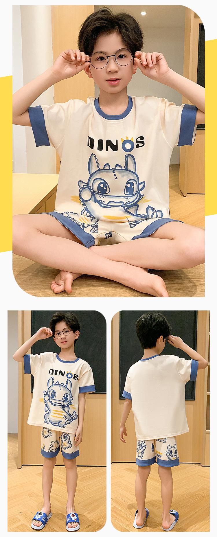 Pijamas para niños 2024 Verano Niños Lindo Dibujo Animado Cuello Redondo Manga Corta Pantalones Cortos Ropa Exterior para Niños Pequeños y Medianos Ropa para el Hogar