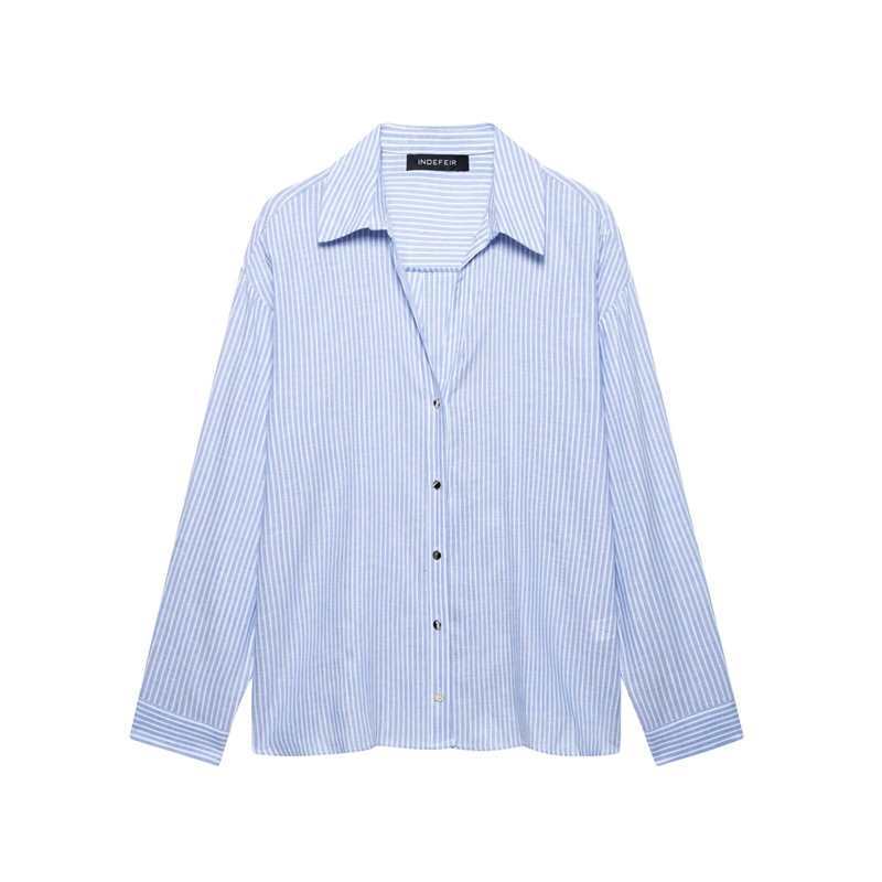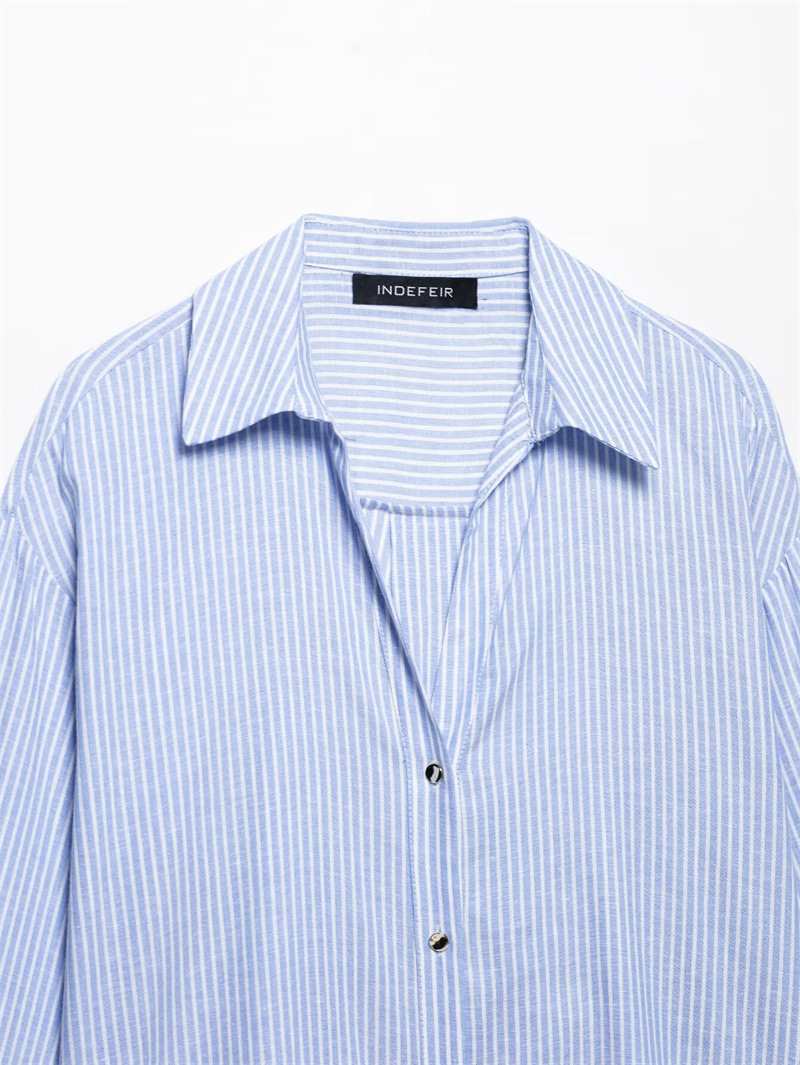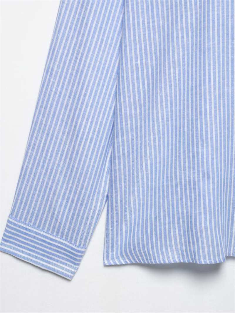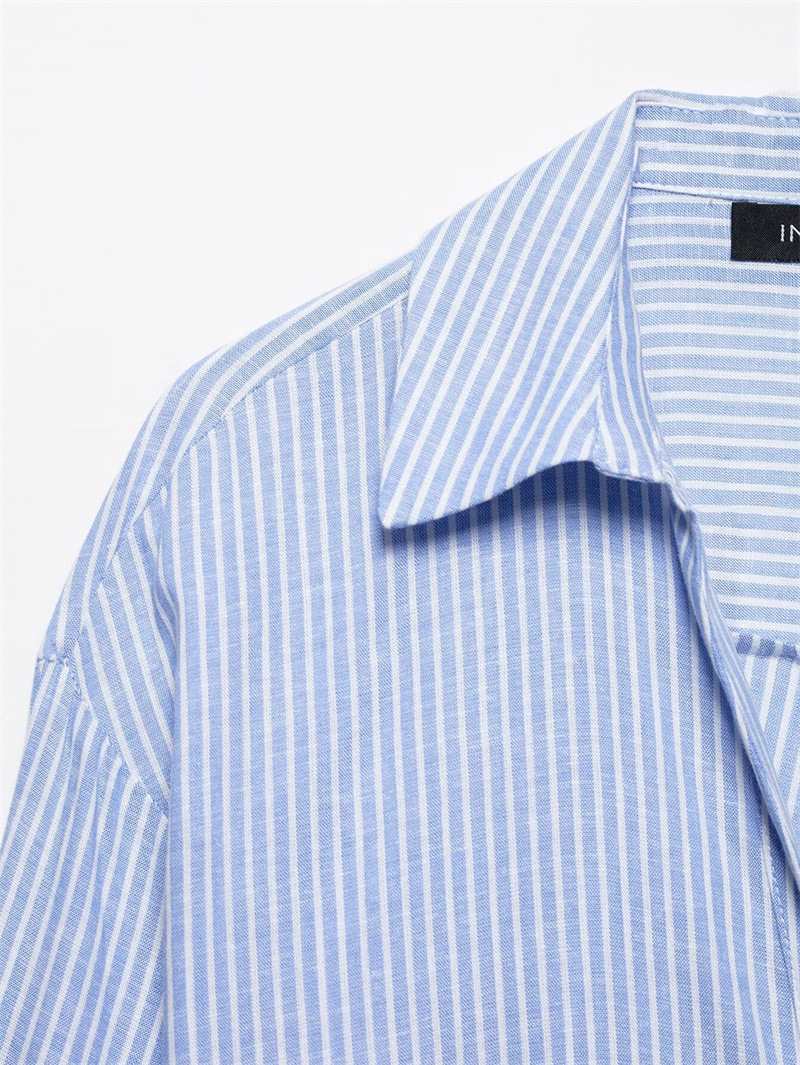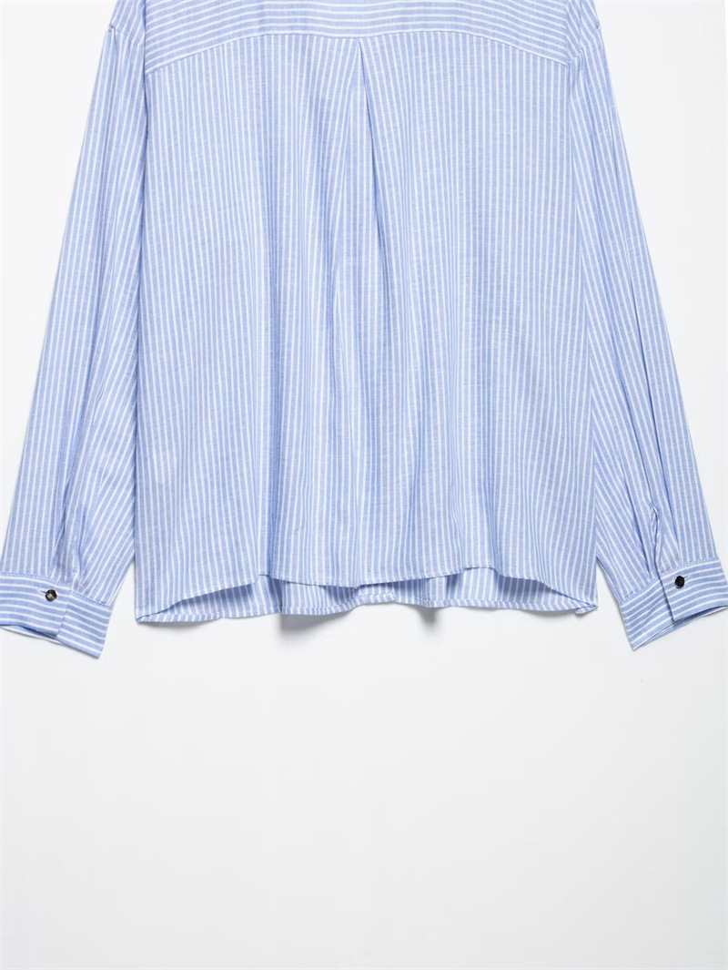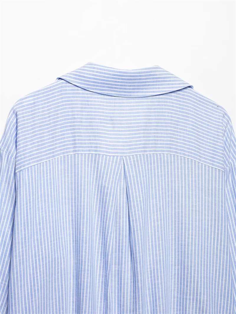 Tops Versátil Nuevo Diseño de Camisa Decoración de Bolsillo Primavera Estilo Largo Comercio Exterior Casual Holgado Moda Rayas