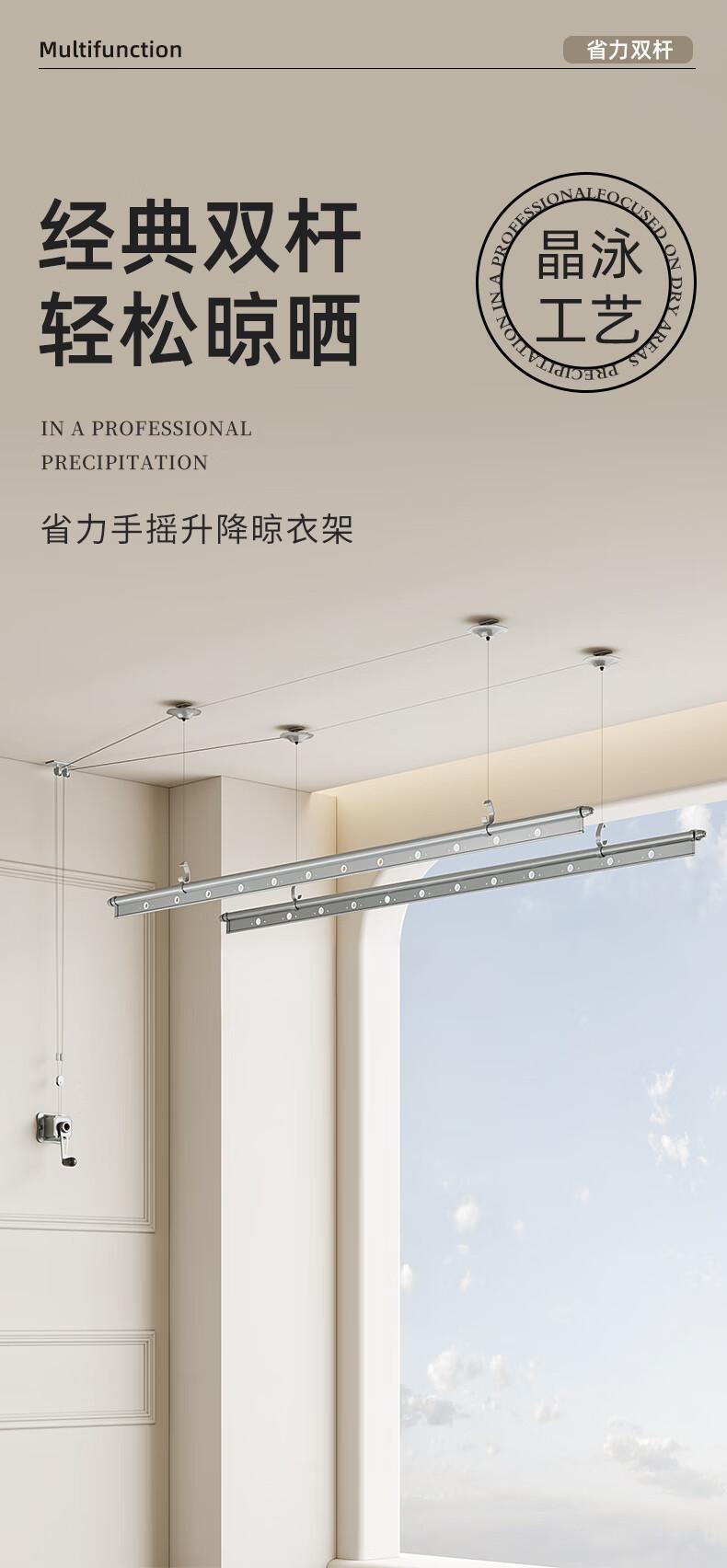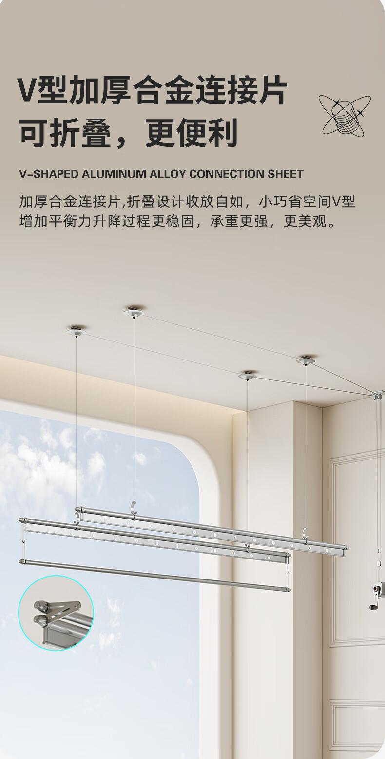 Tendedero plegable con tres varillas ajustables, tendedero doméstico de balcón con manivela, herramienta esencial para balcón