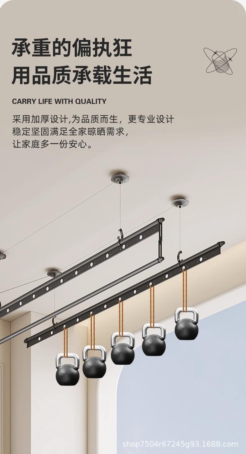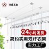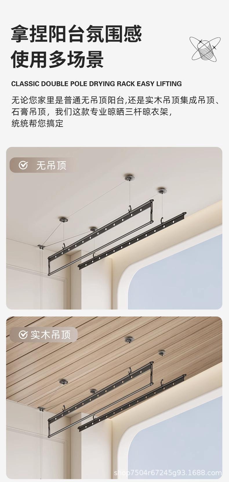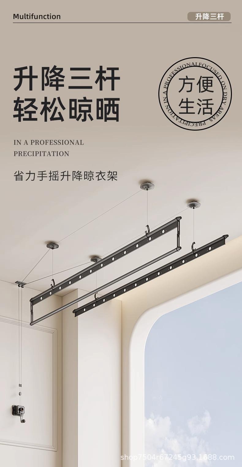 Tendedero de doble barra con manivela y tres postes, tendedero ajustable para balcón negro, tendedero mágico ajustable