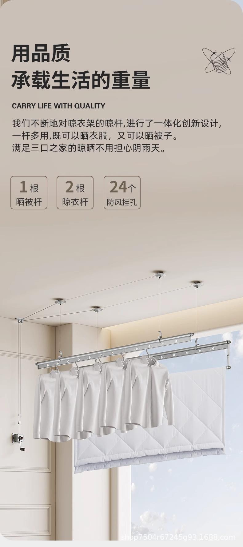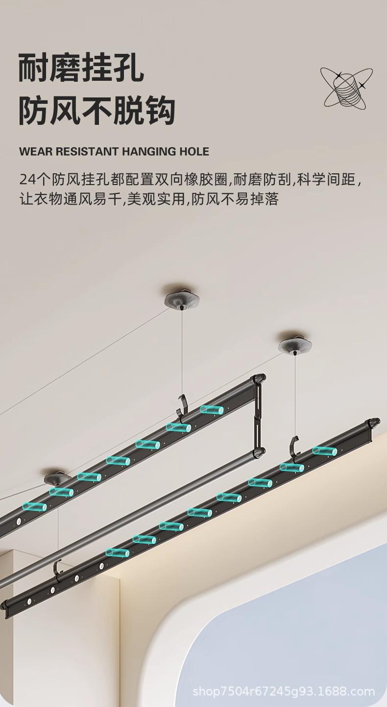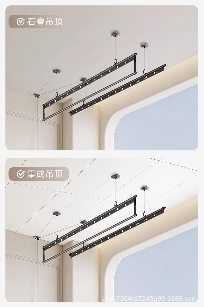 Tendedero de doble barra con manivela y tres postes, tendedero ajustable para balcón negro, tendedero mágico ajustable