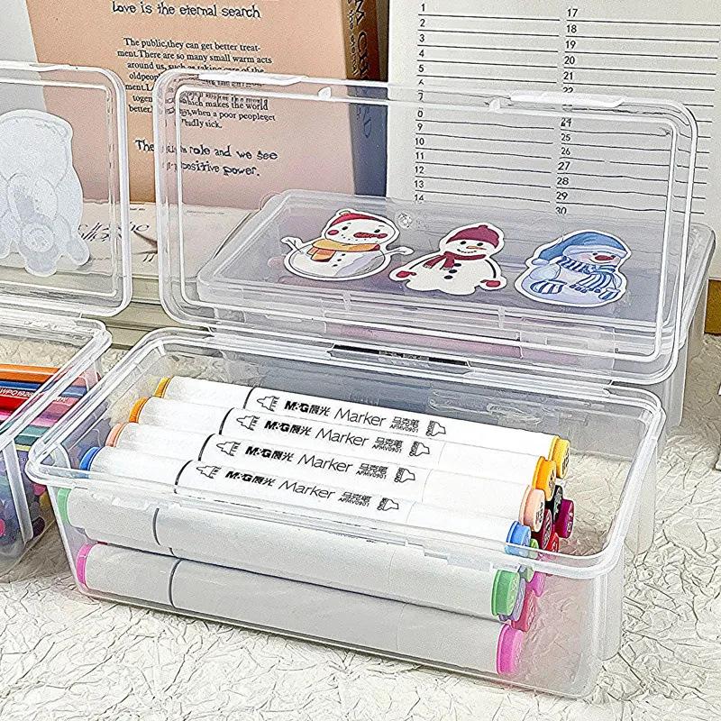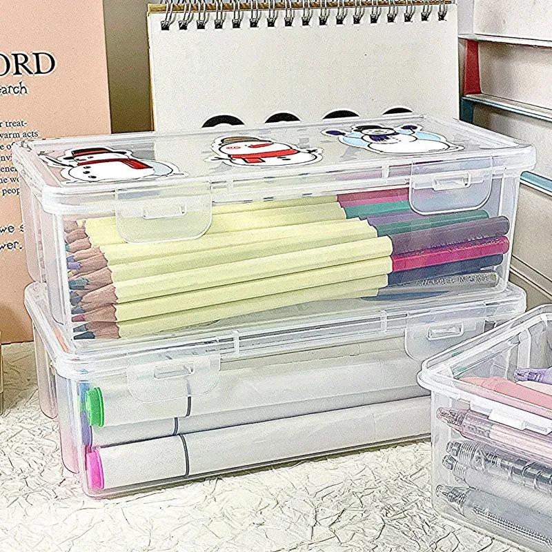 Caja de almacenamiento de lápices de gran capacidad, portalápices de papelería transparente, estuche para lápices de crayón para niños, tamaño grande y pequeño, artículos diversos de escritorio