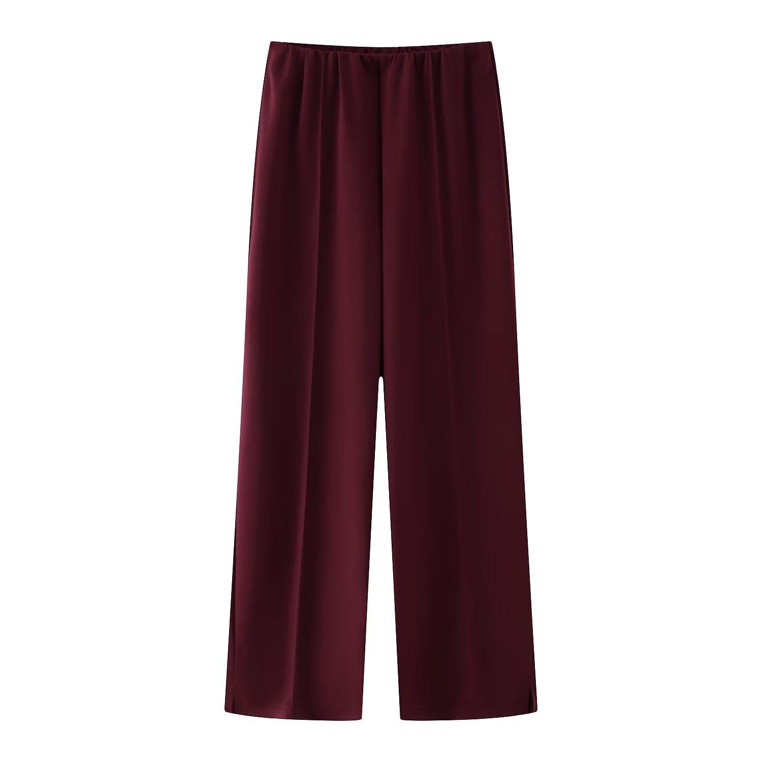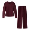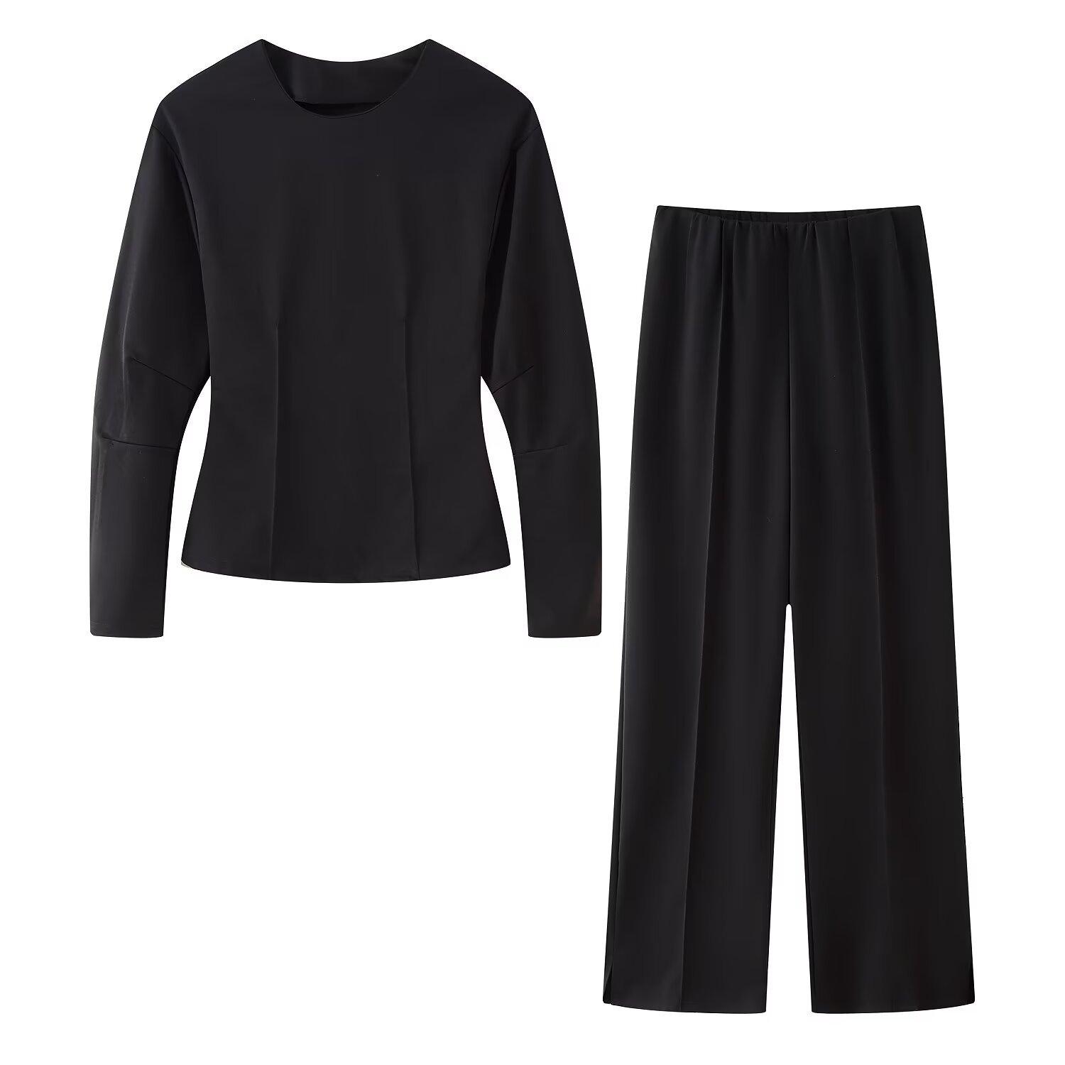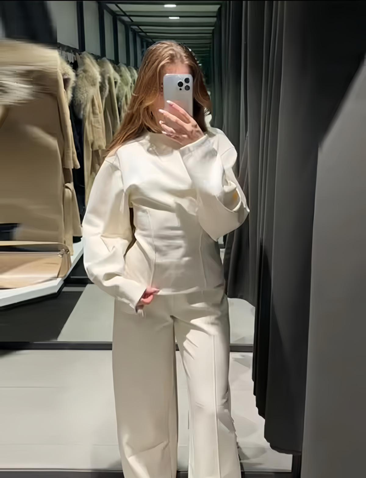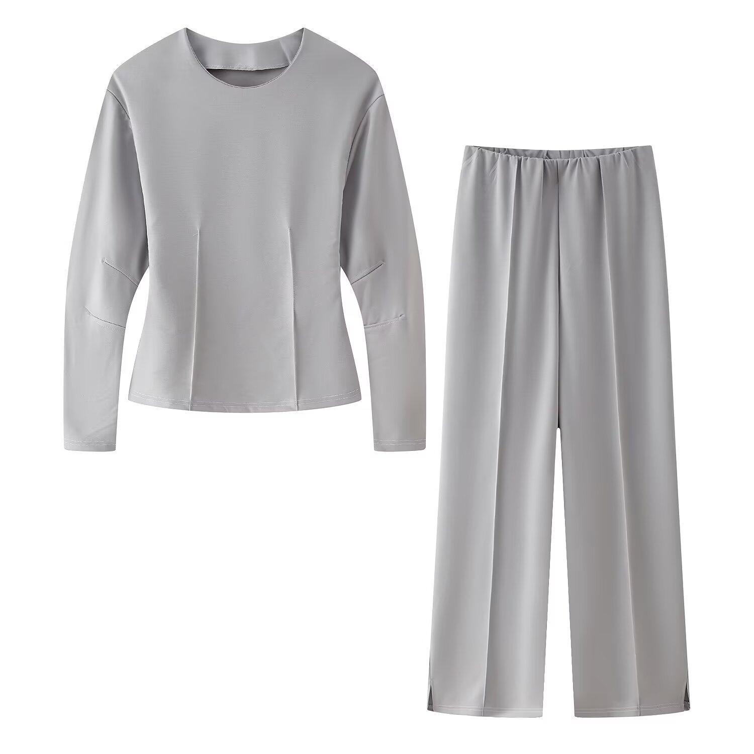 2025 Primavera Nuevo Europeo y Americano Transfronterizo para Mujer Tela Romana Multicolor de Doble Cara Sudadera Slim + Pantalones Drapeados