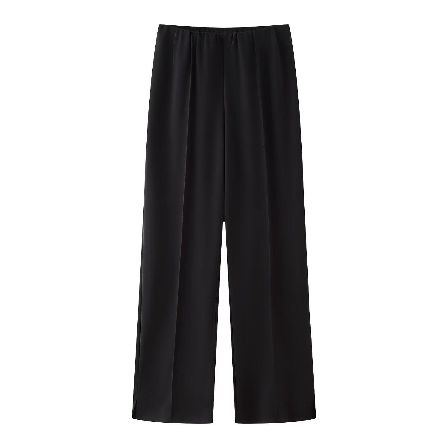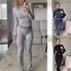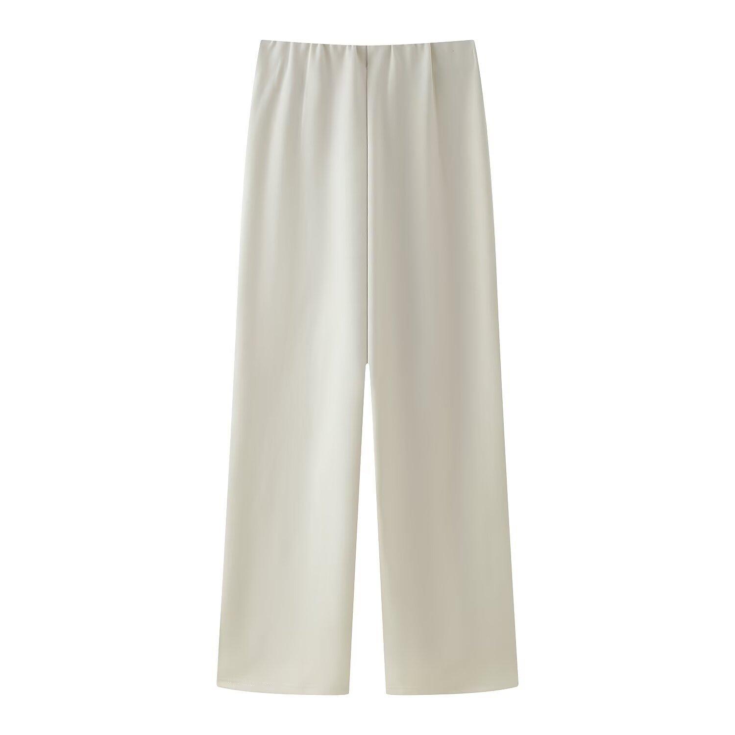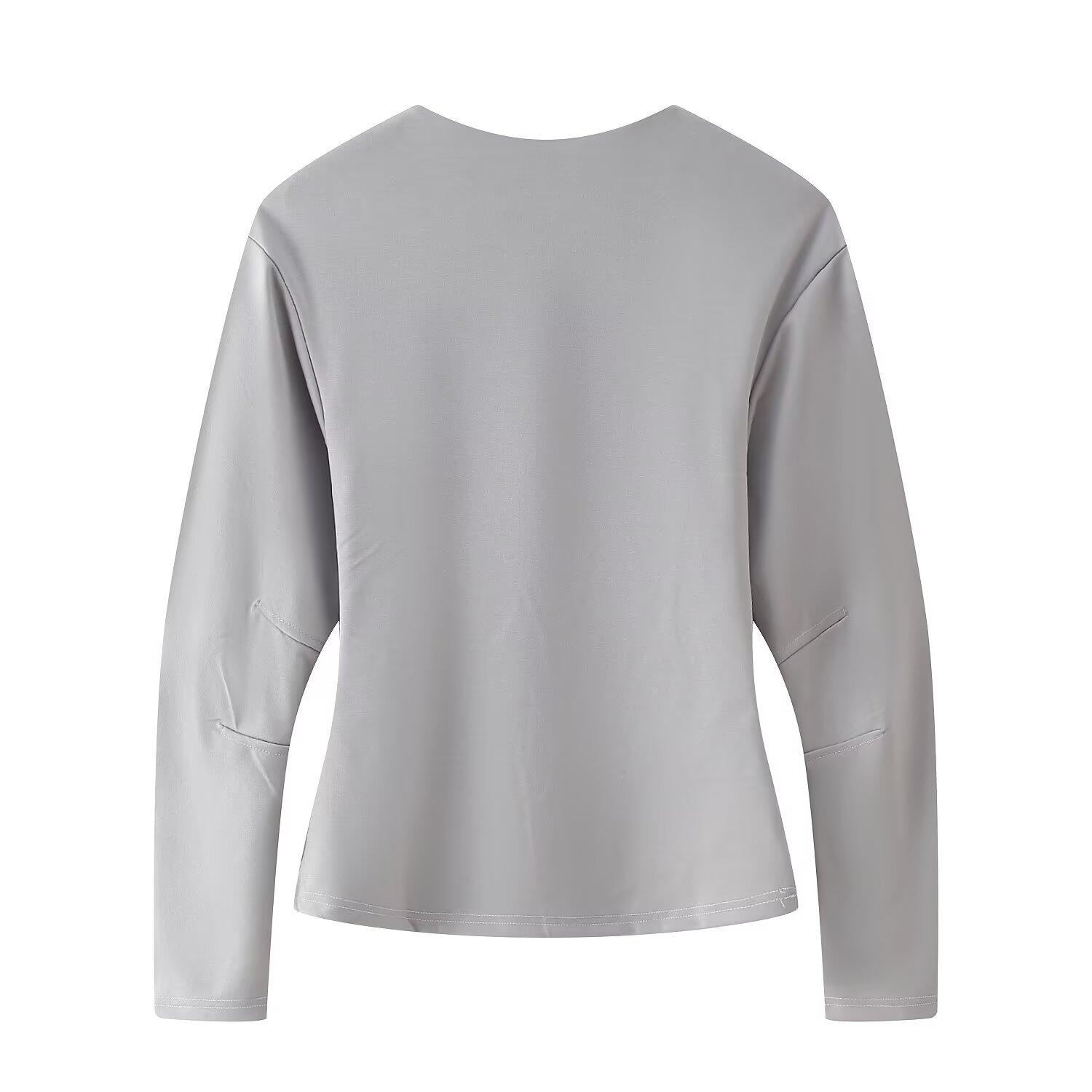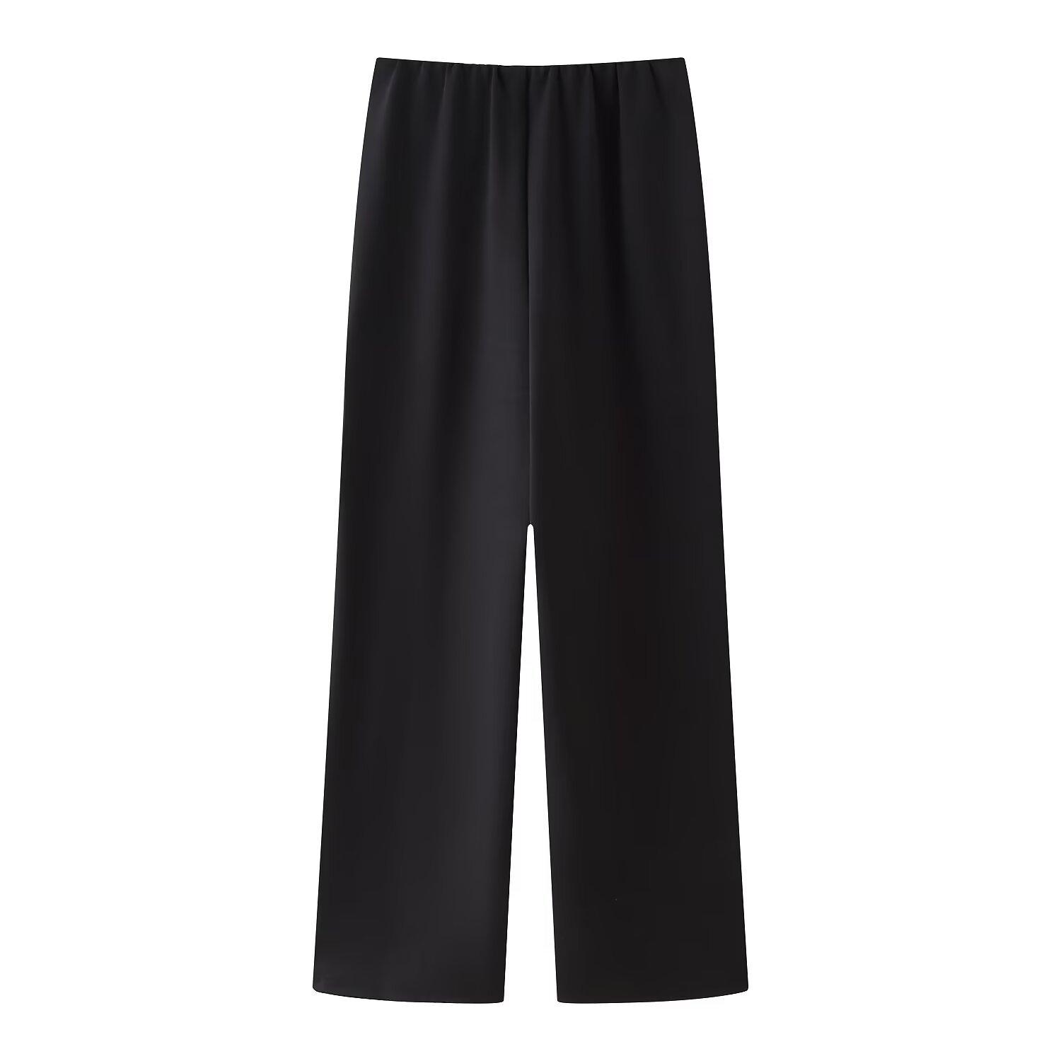 2025 Primavera Nuevo Europeo y Americano Transfronterizo para Mujer Tela Romana Multicolor de Doble Cara Sudadera Slim + Pantalones Drapeados