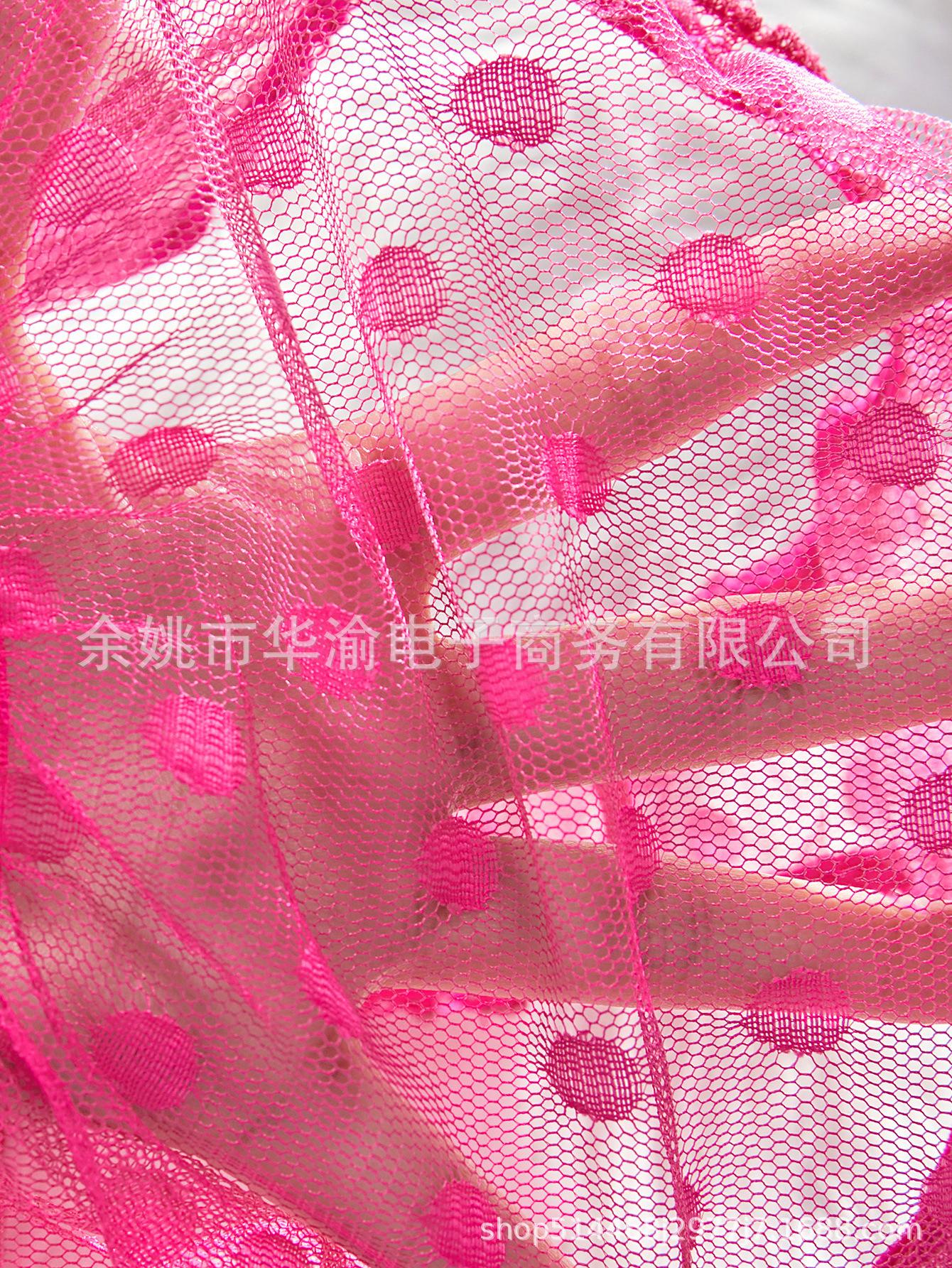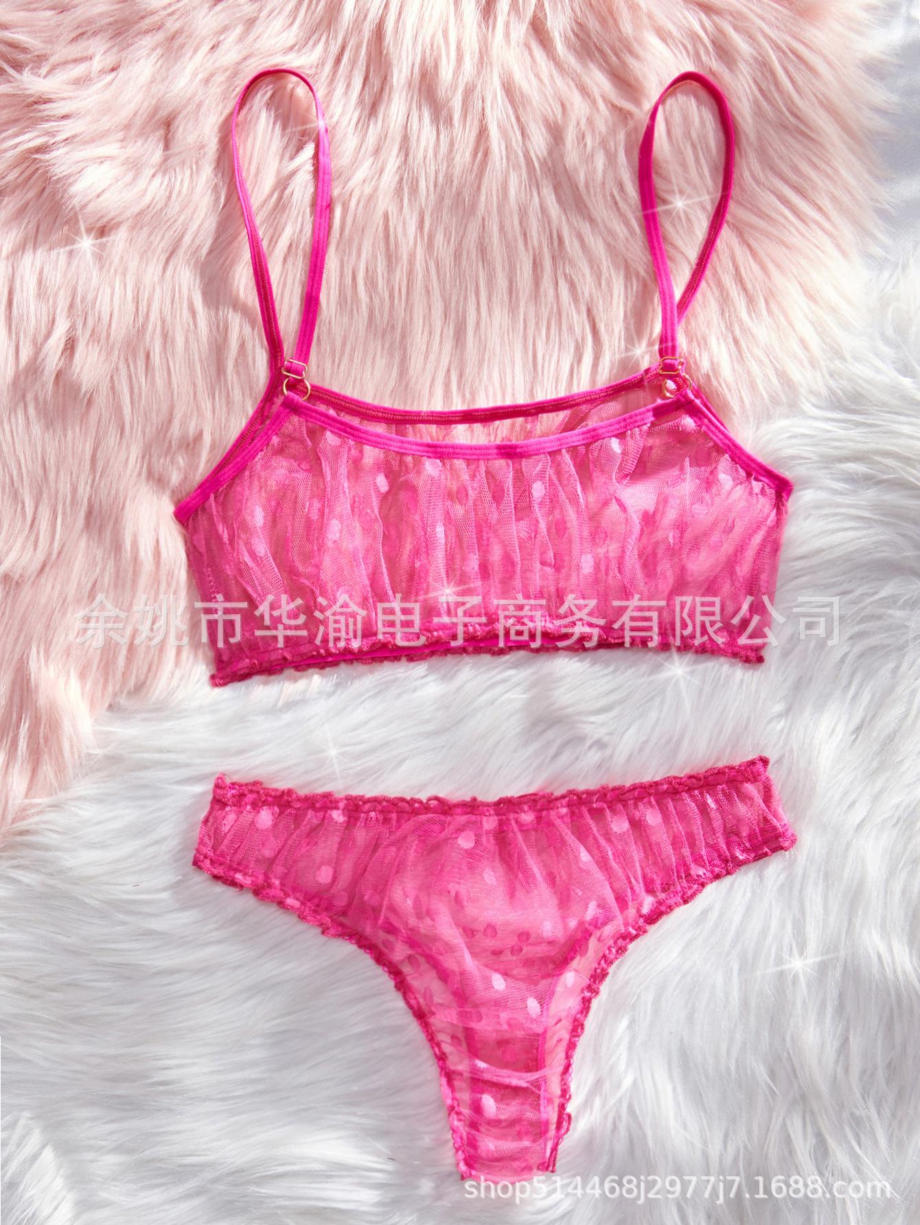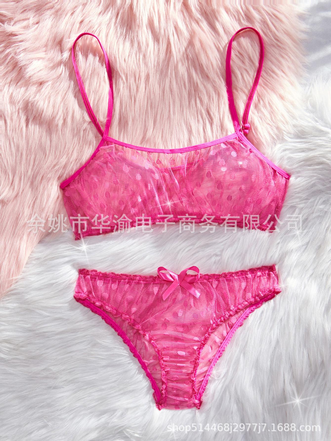 2024 Nuevo Europeo y Americano Amazon Sexy Polo Lunares Malla Perspectiva Tentación Sujetador Lazo Sexy Traje de Ropa Interior