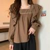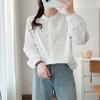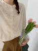 Camisa de cuello artístico estilo francés para mujer, manga larga, bordada en relieve, hermosa y elegante, base bordada de algodón puro.