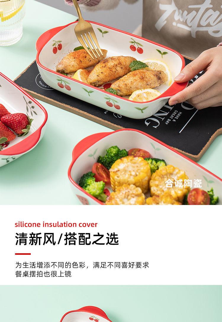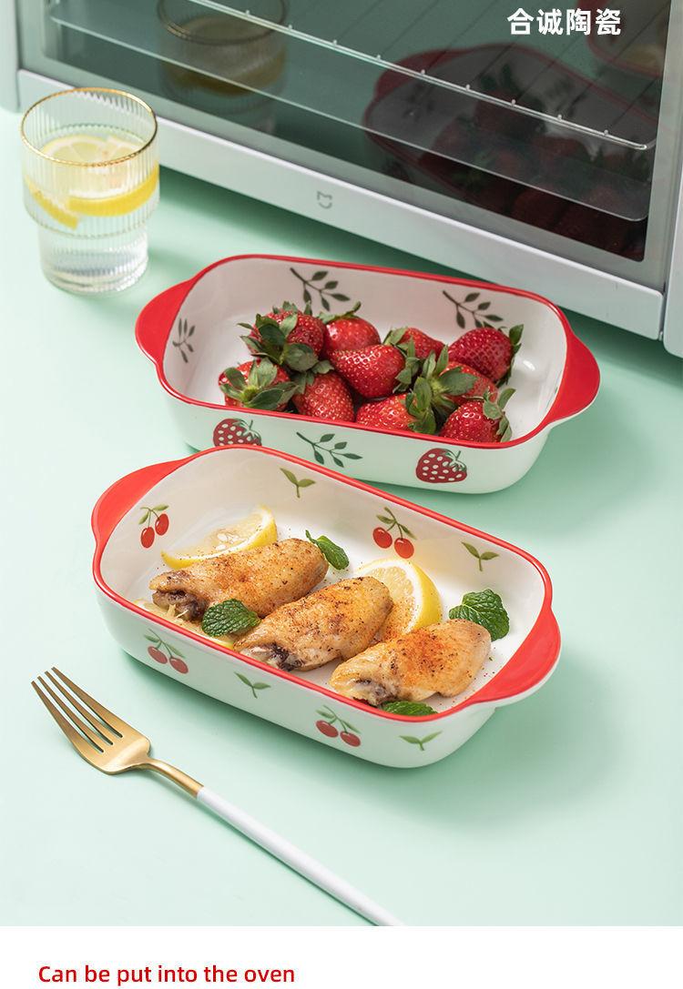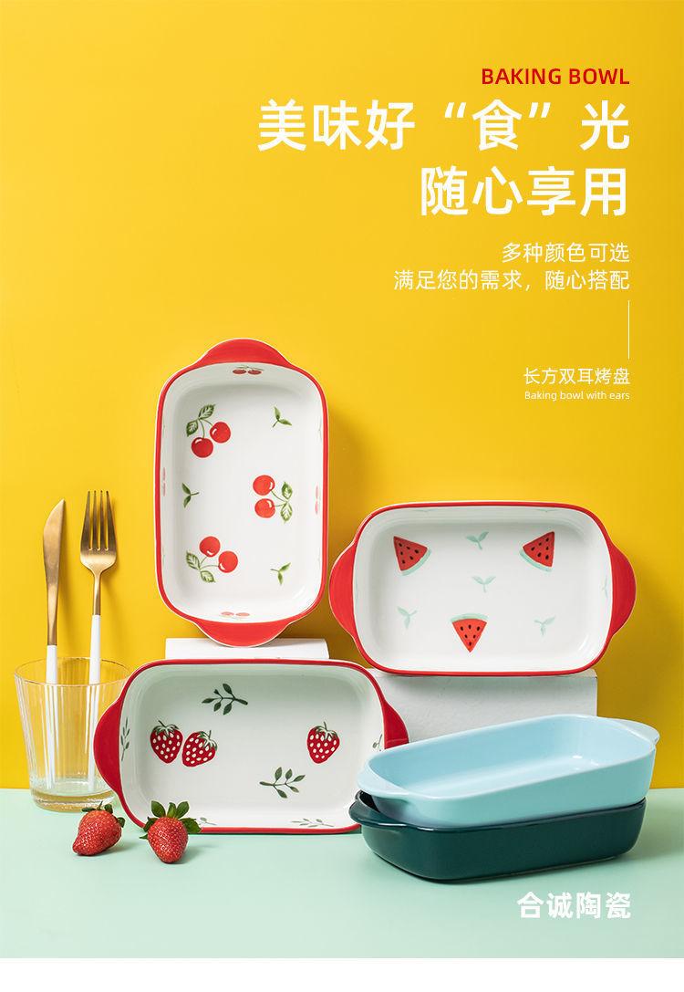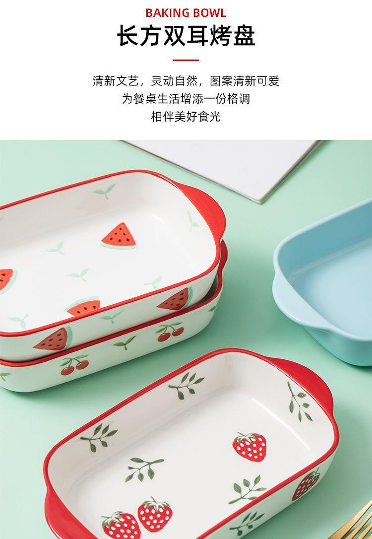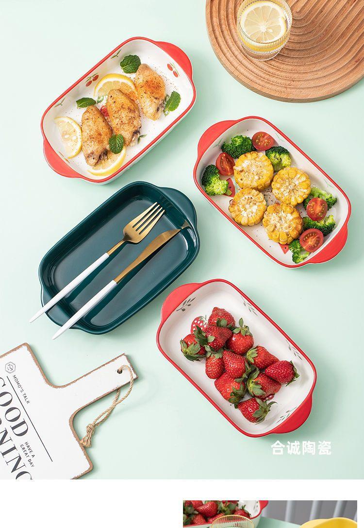 Vajilla Plato para Hornear Binaural Plato de Cerámica Plato Creativo para Horno de Microondas Hogar Horneado Queso Arroz al Horno Horno Especial Miaoqi