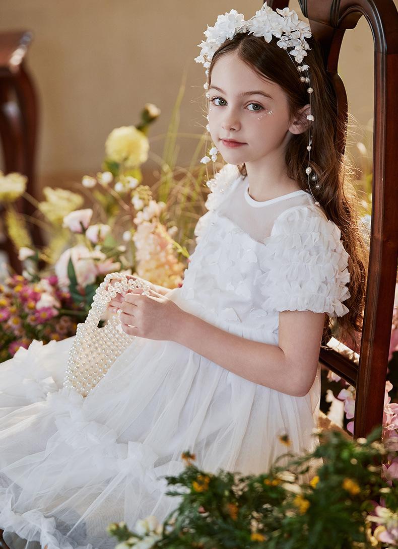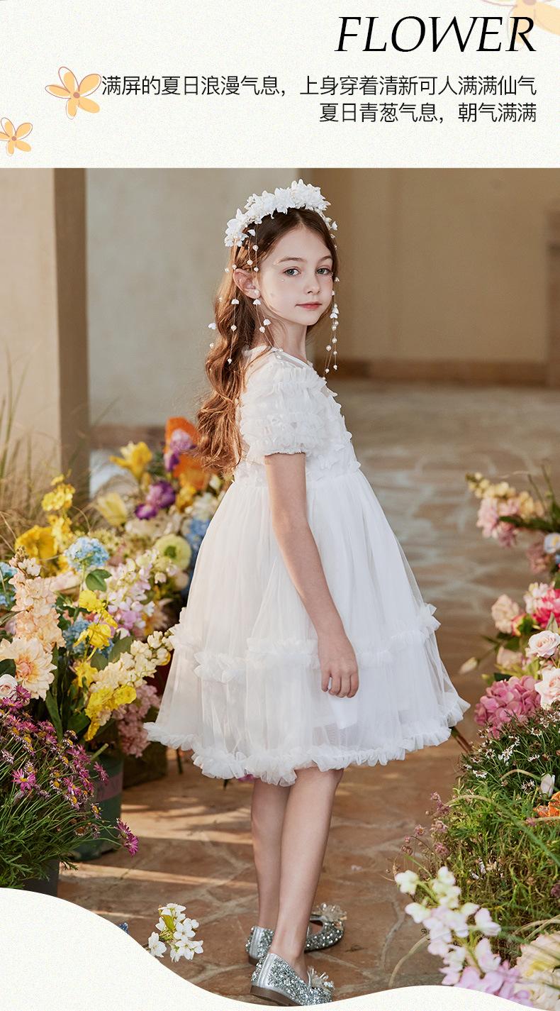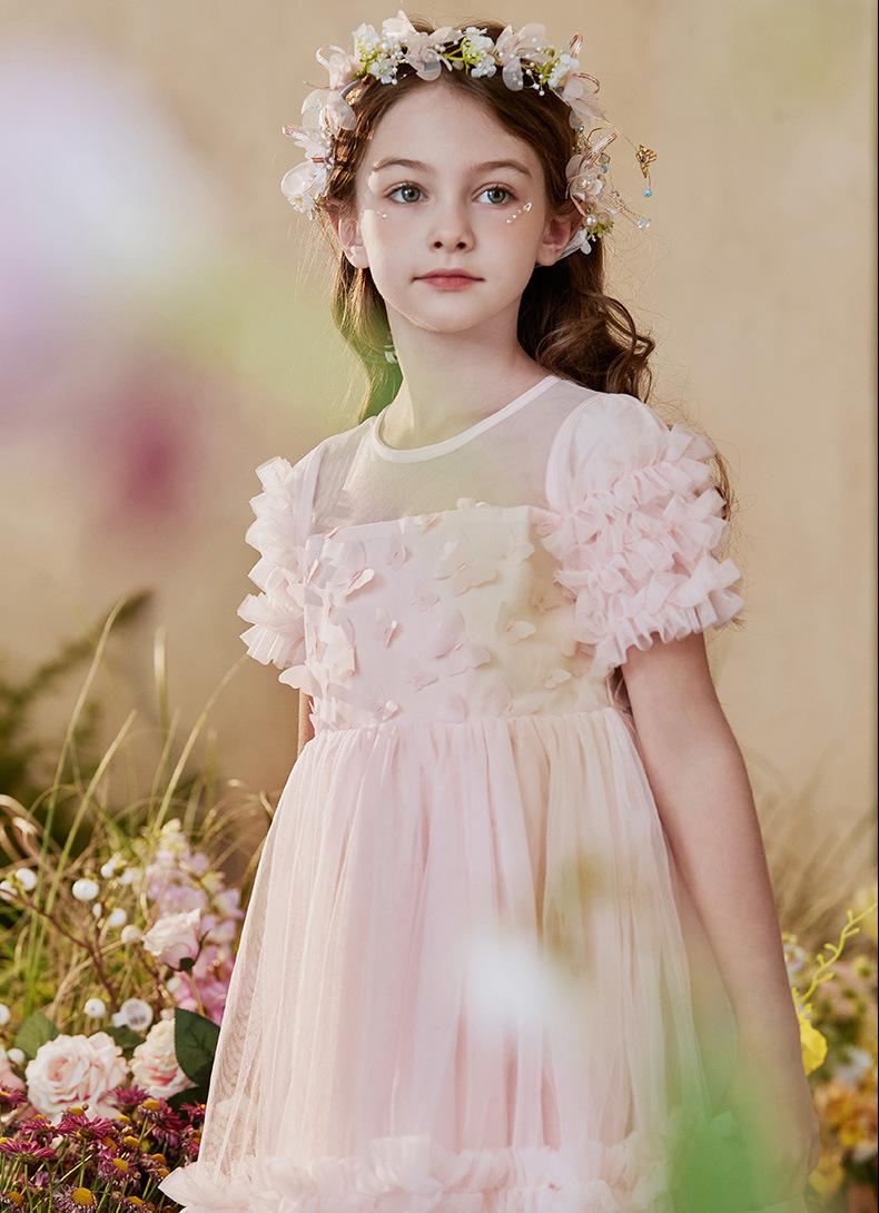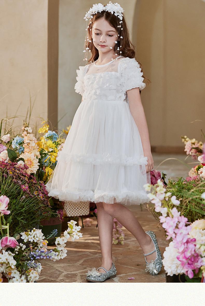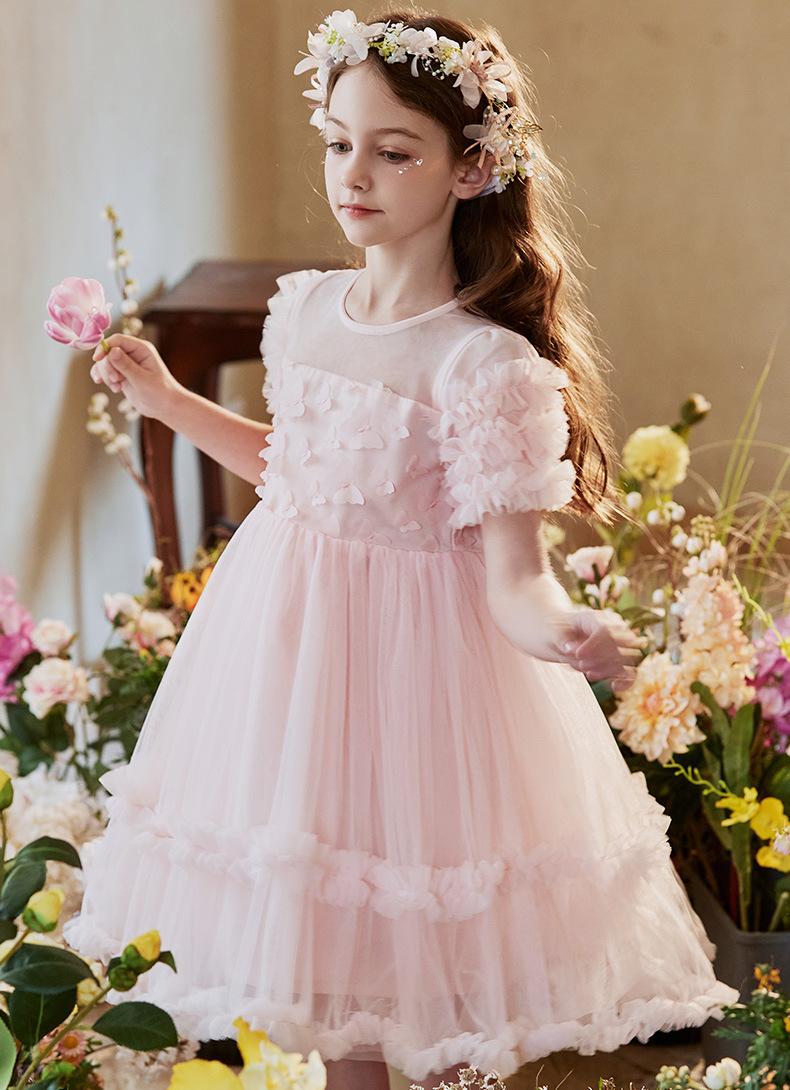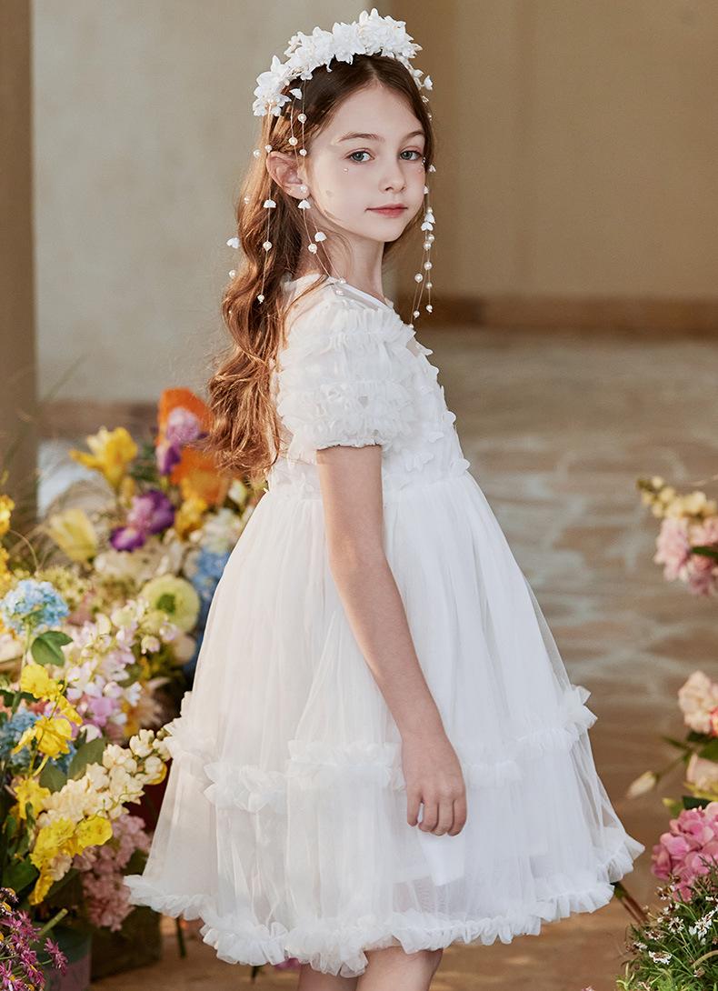 Vestido Infantil, Vestido de Malla Abullonado para Niña, Vestido de Pasarela para Fiesta de Cumpleaños, Actuación de Piano, Elegante Vestido de Princesa