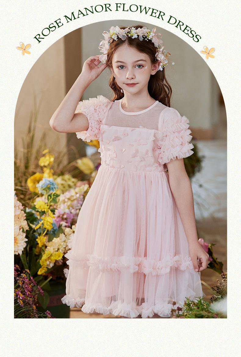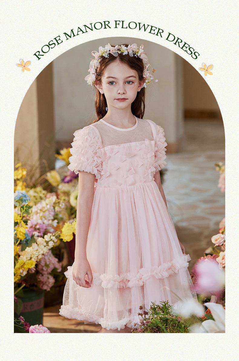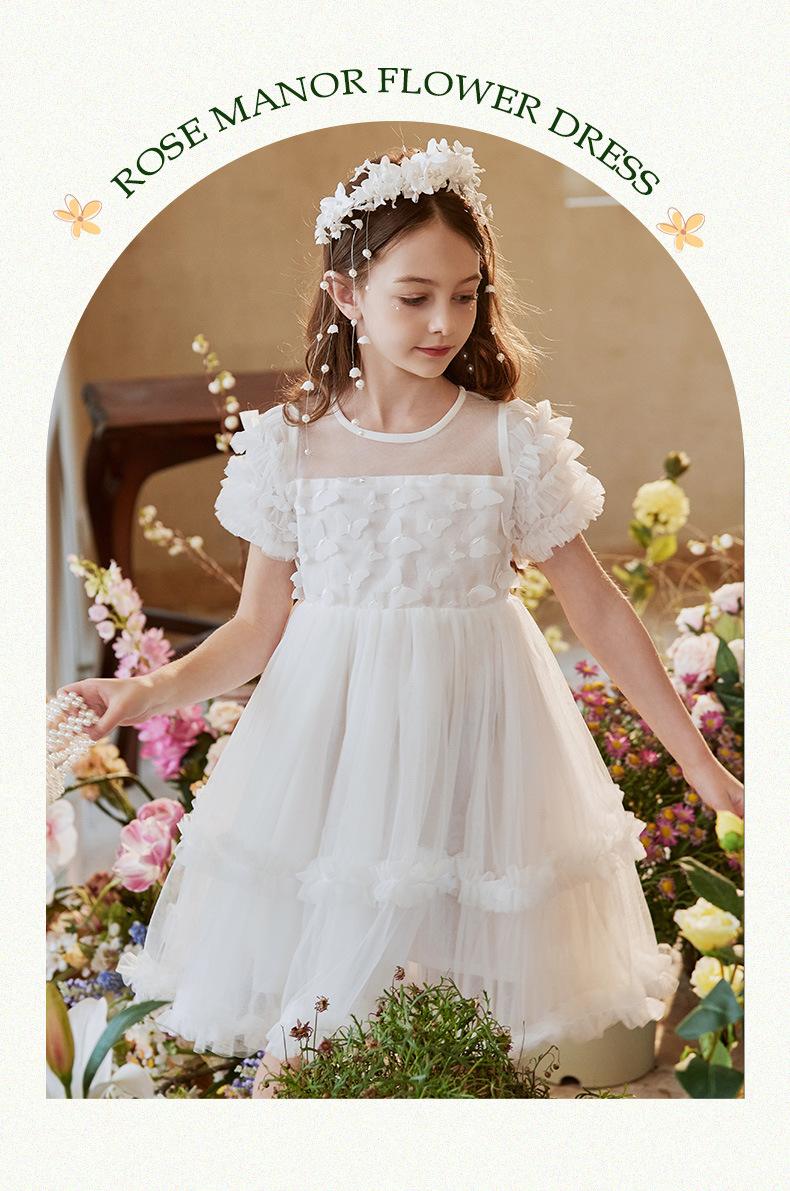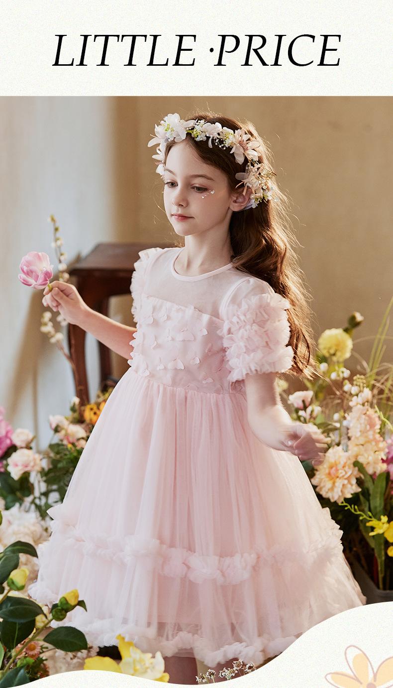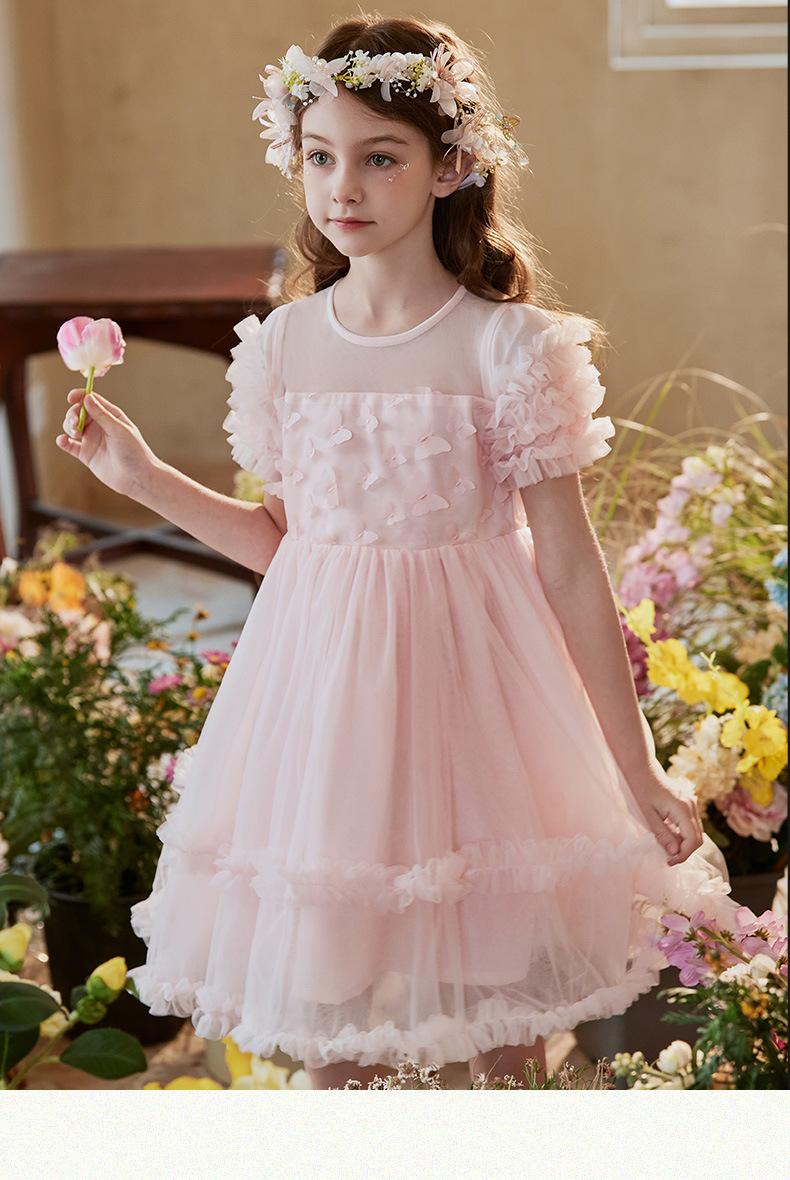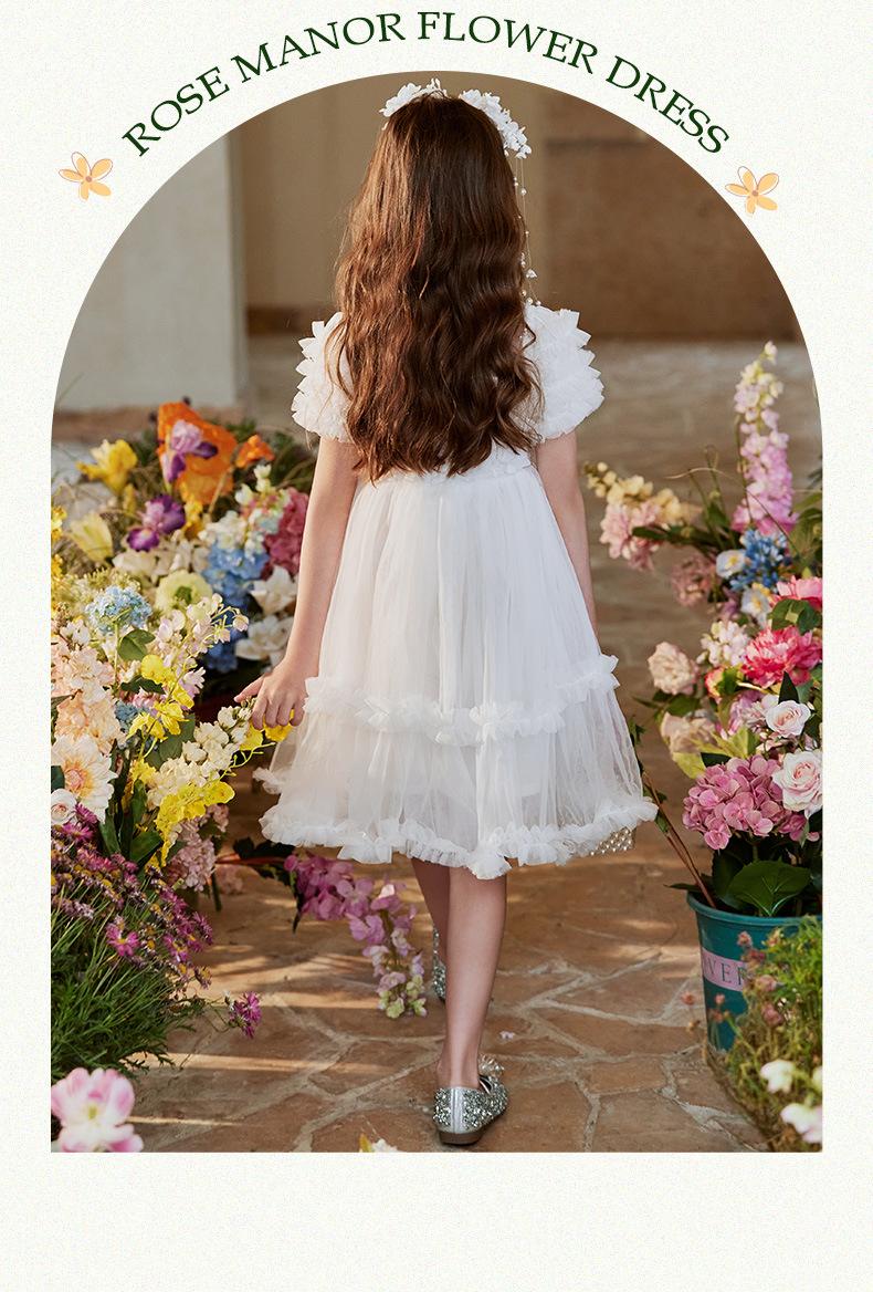 Vestido Infantil, Vestido de Malla Abullonado para Niña, Vestido de Pasarela para Fiesta de Cumpleaños, Actuación de Piano, Elegante Vestido de Princesa