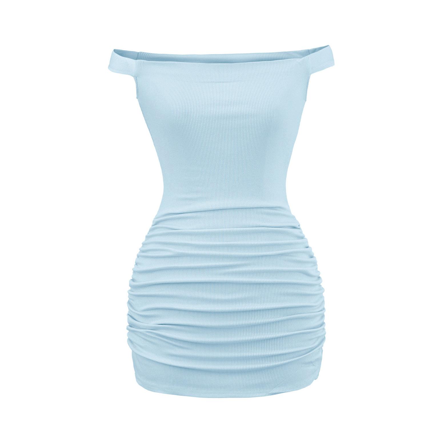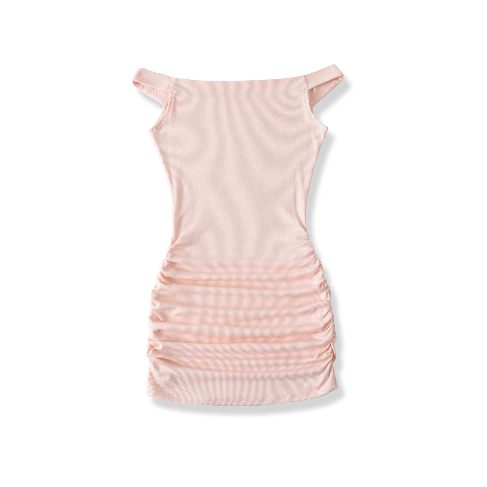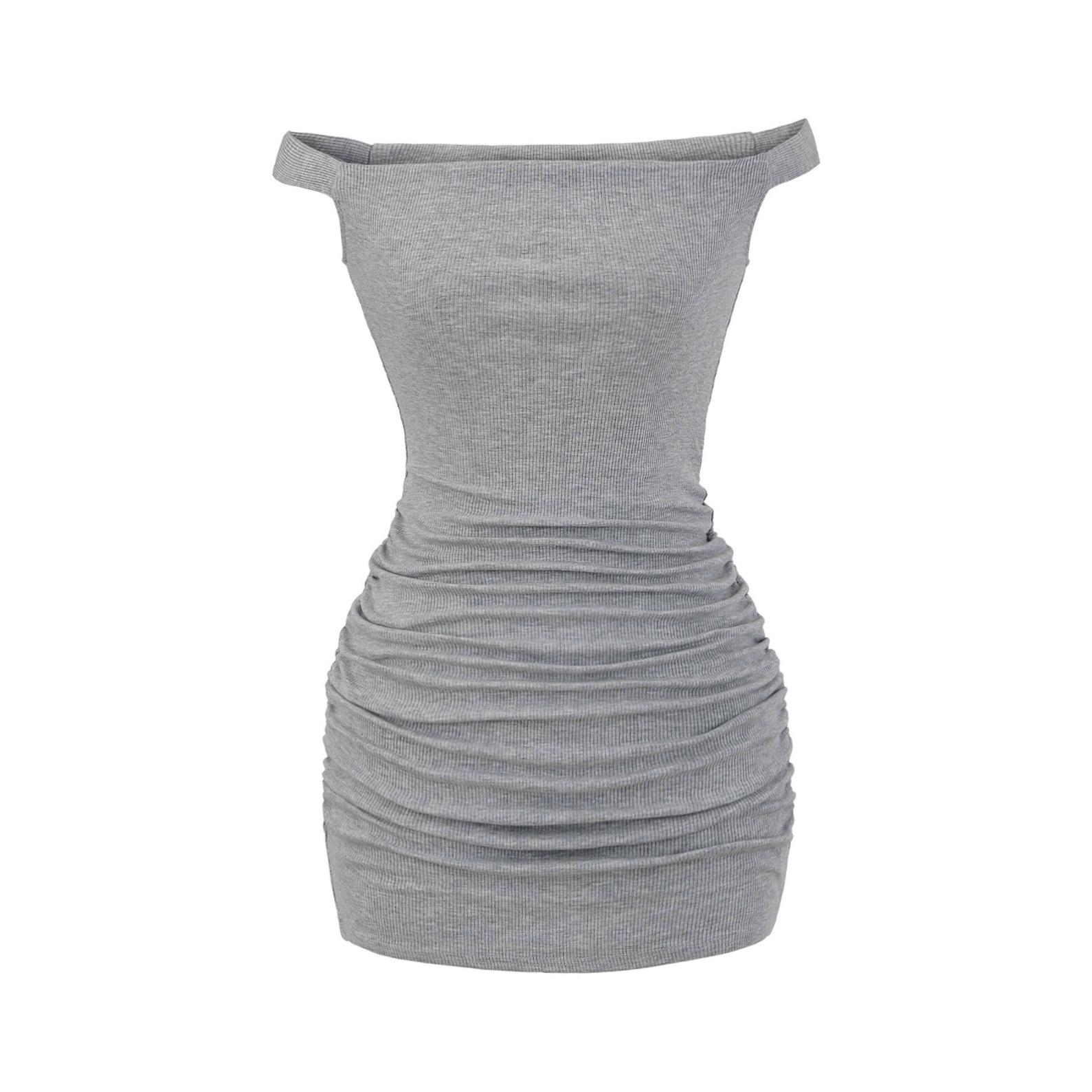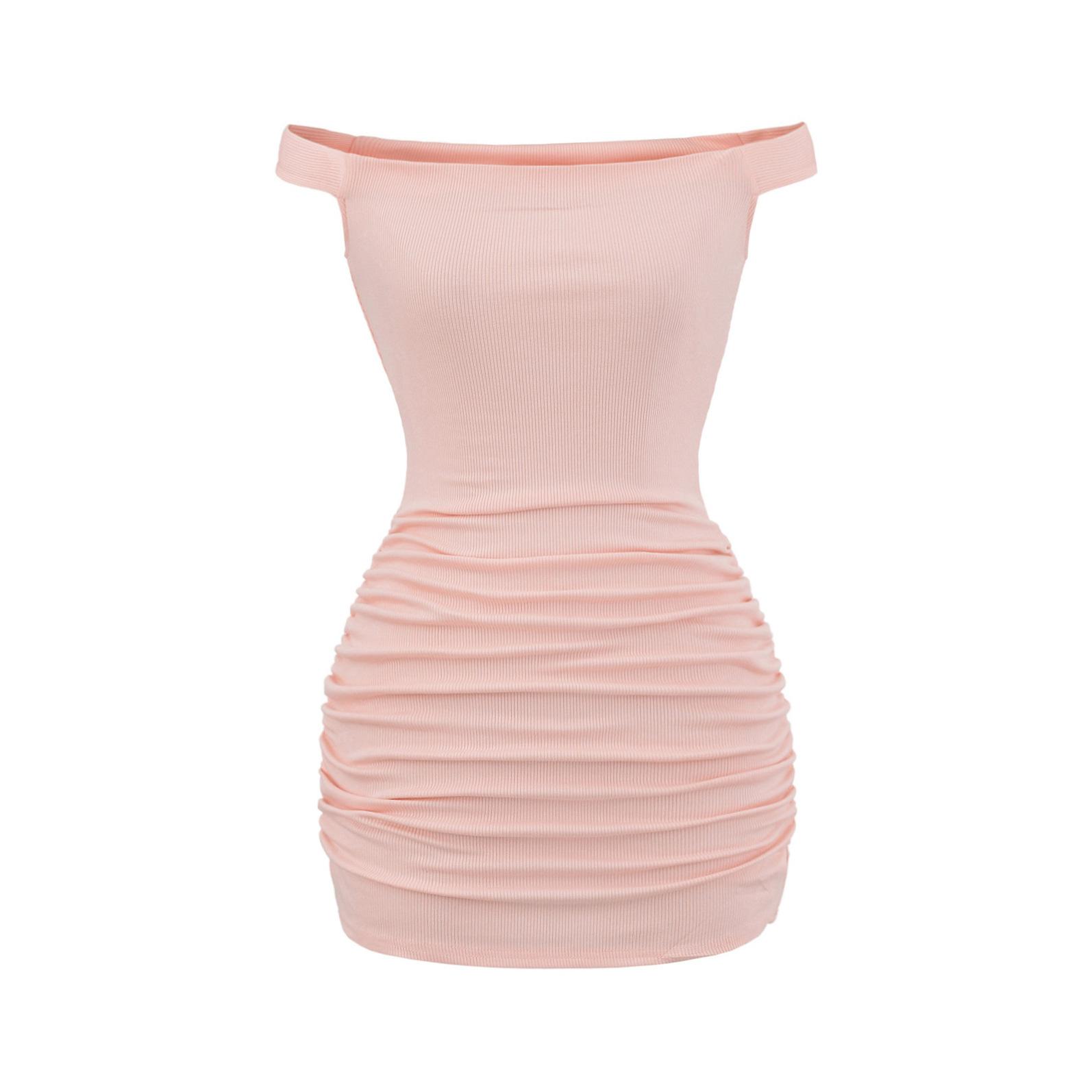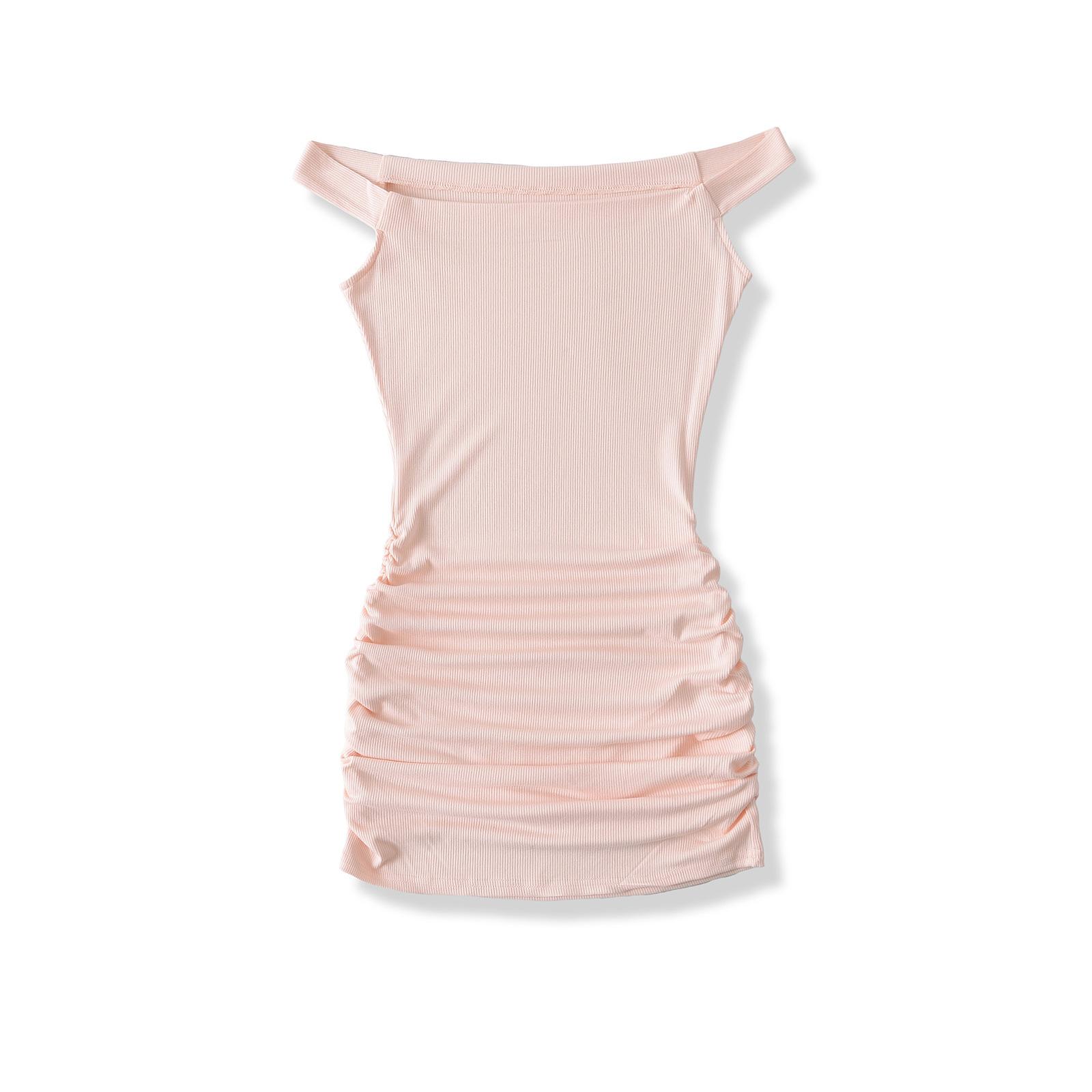 Primavera y verano 2025 nuevo estilo europeo y americano con hombros descubiertos para mujer, falda plisada, vestido ajustado para chica hot