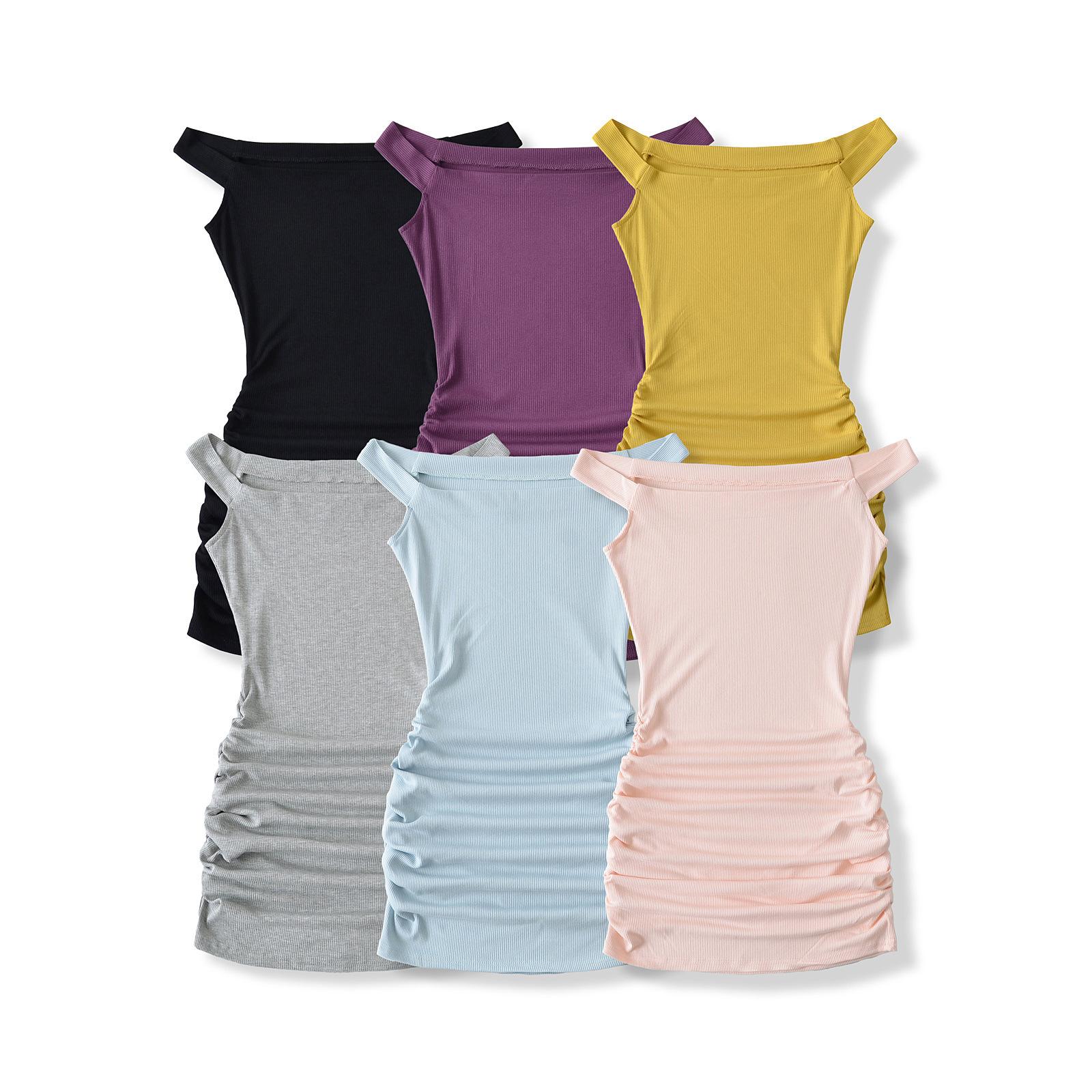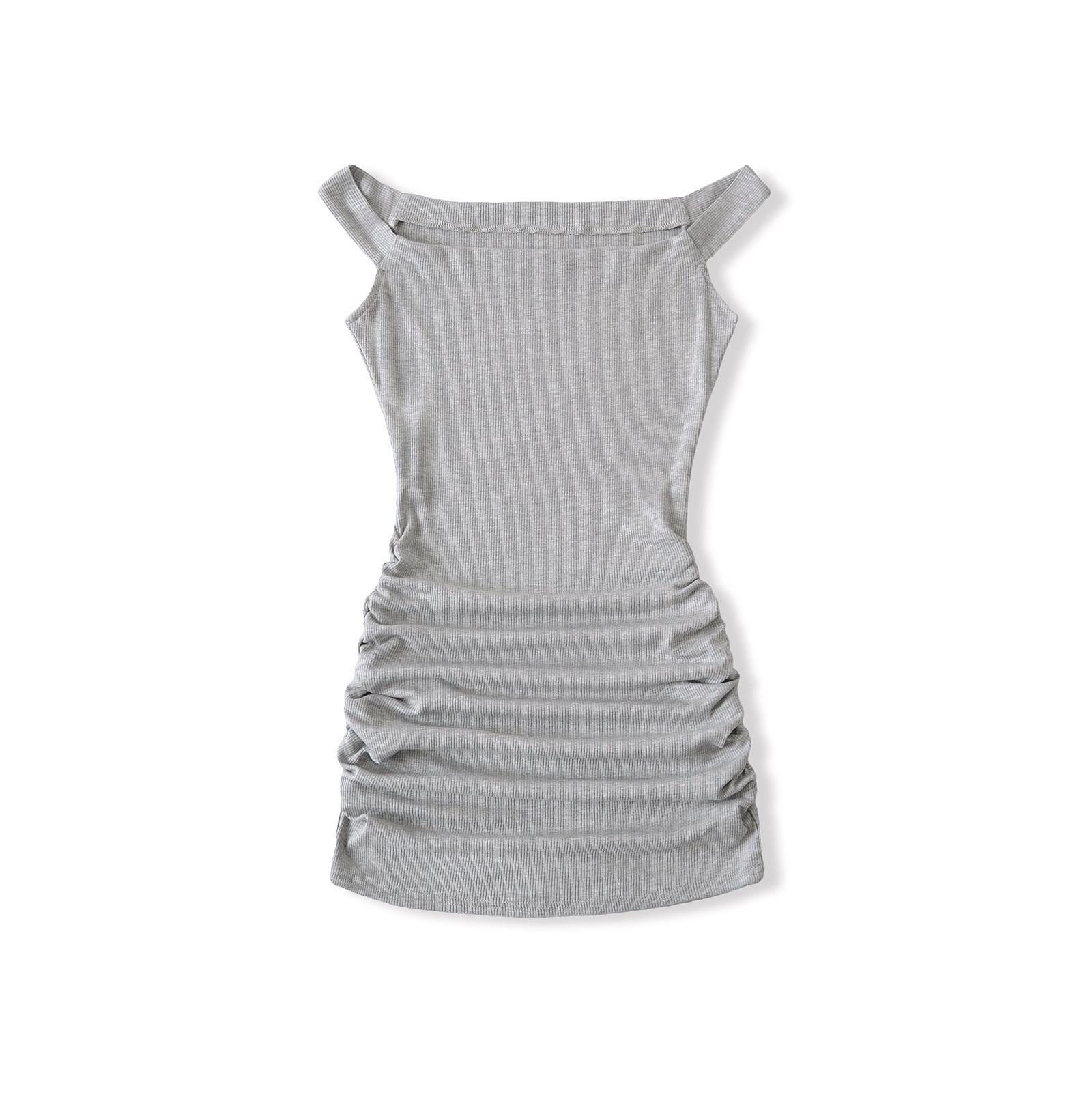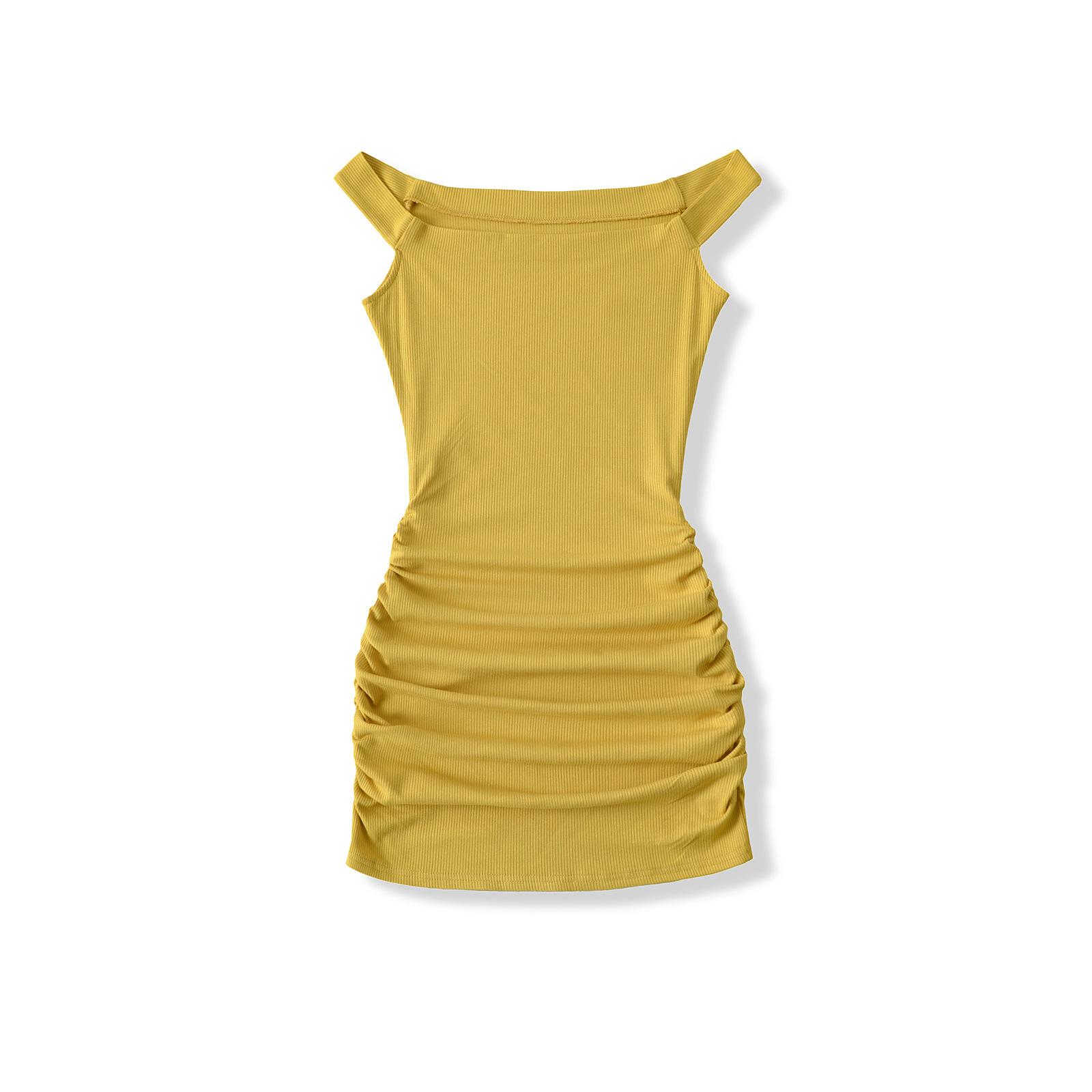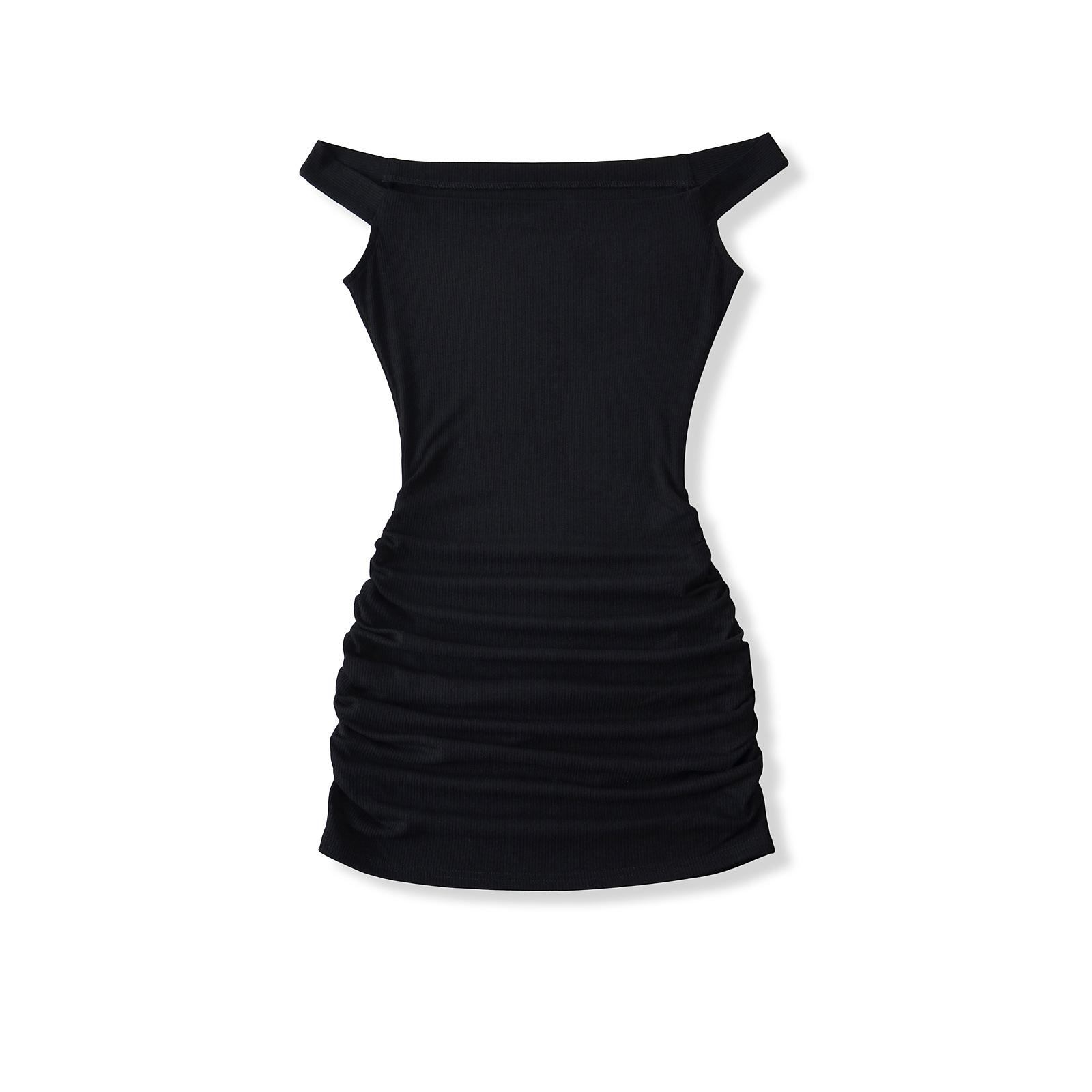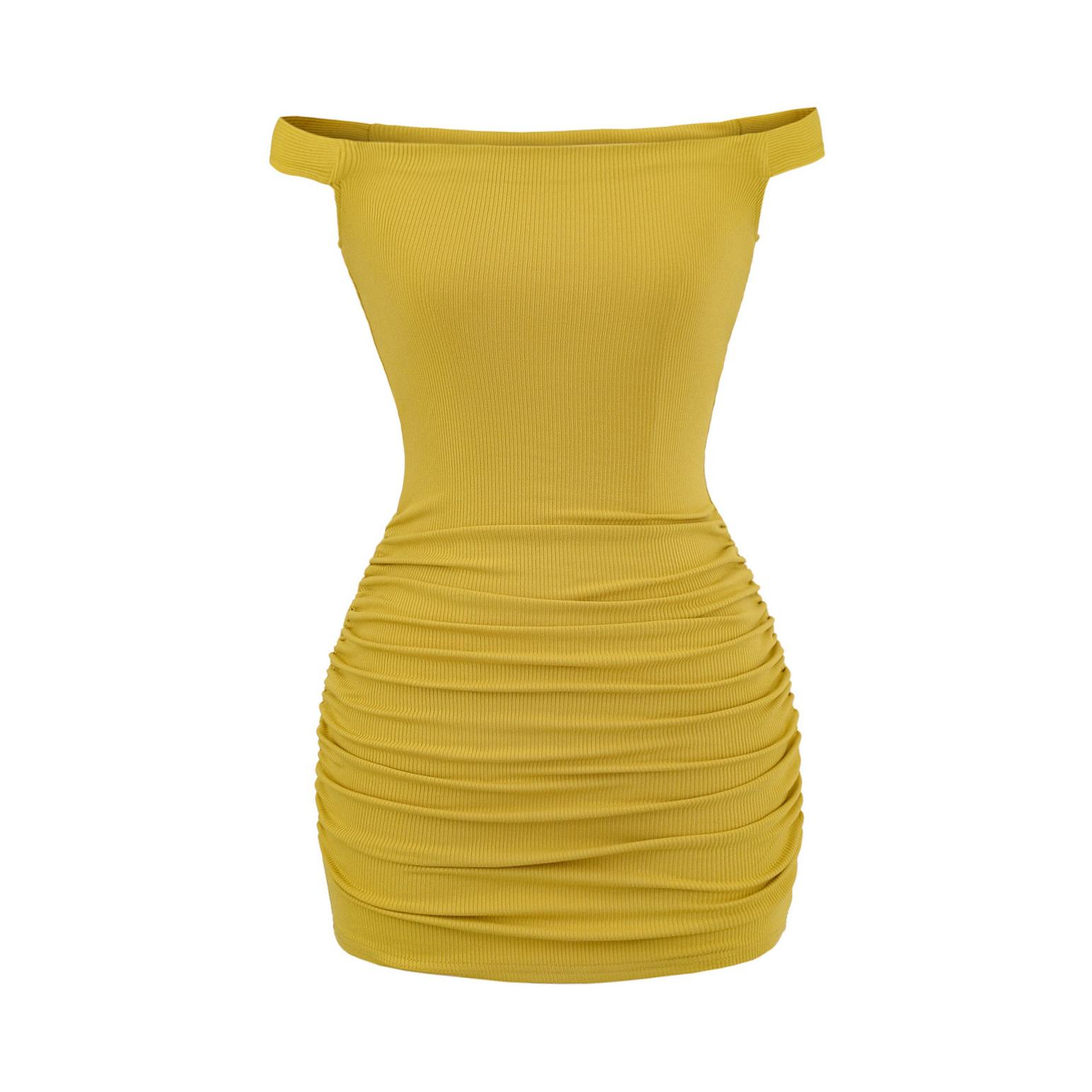 Primavera y verano 2025 nuevo estilo europeo y americano con hombros descubiertos para mujer, falda plisada, vestido ajustado para chica hot