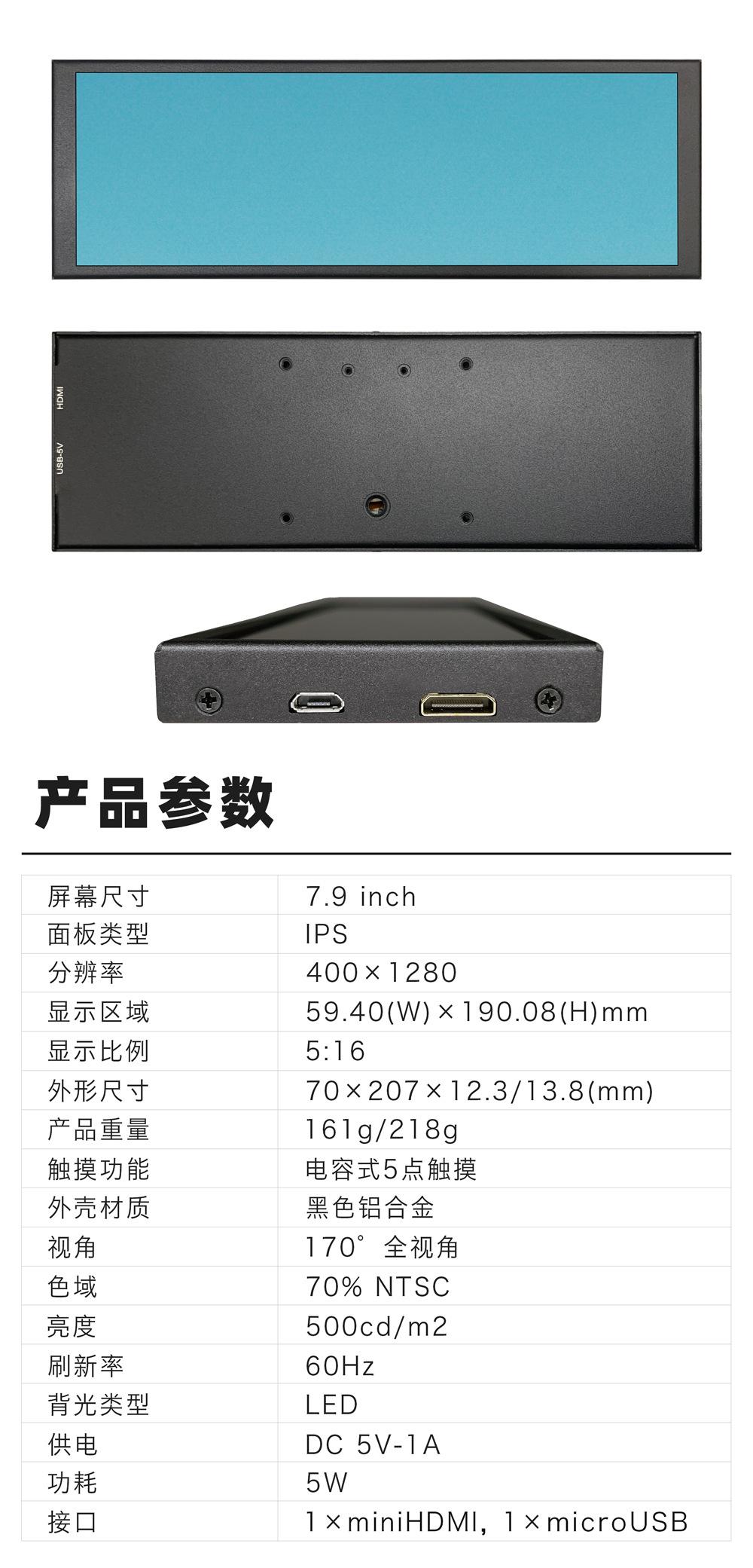 Monitor con Pantalla Táctil LCD 400X1280 Pantalla de Barra Pequeña 7.9 pulgadas Pantalla Portátil Pantalla IPS