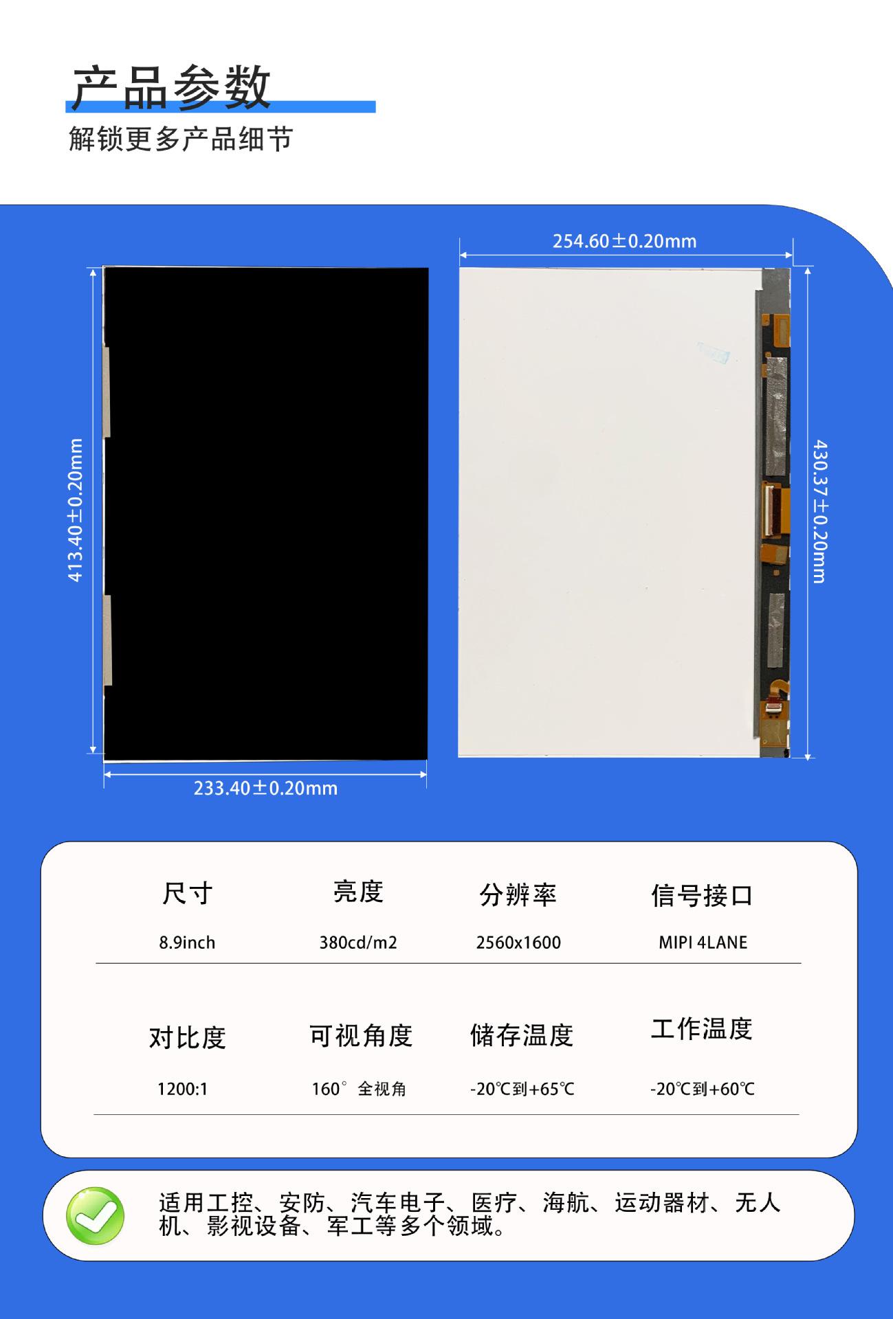 Pantalla LCD Portátil de 8.9 pulgadas Pantalla LCD IPS de Alta Definición Placa Driver Panel de Equipo Médico Módulo de Pantalla a Color TFT
