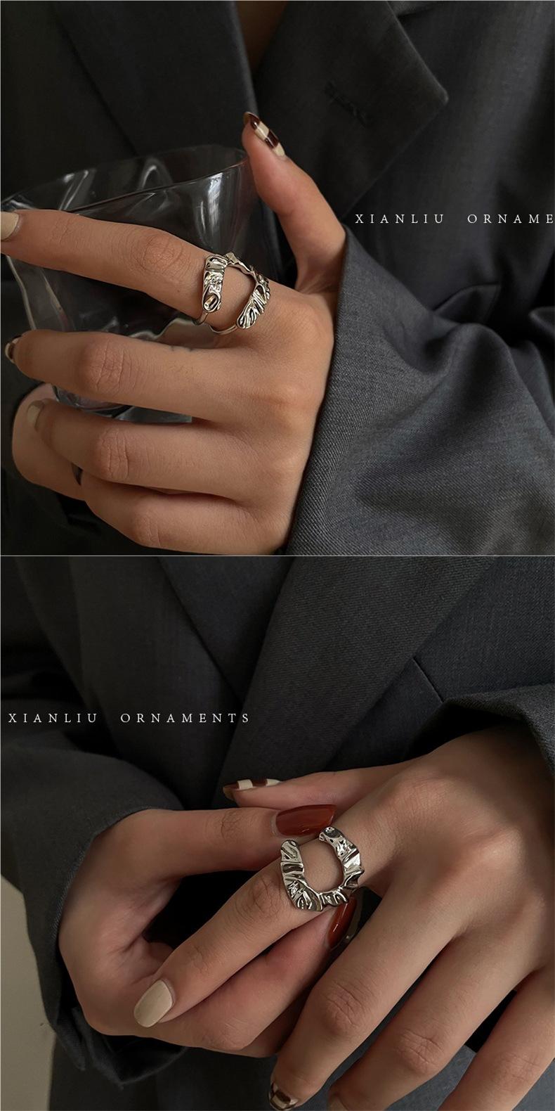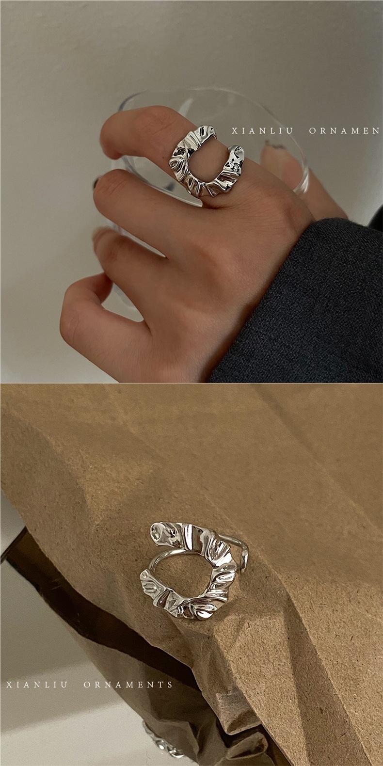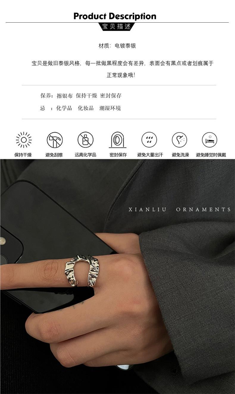 Anillo Personalizado Plisado de Plata S925 Estilo Coreano para Mujer Moda Retro Geométrico en Forma de U Anillo Abierto Hip-Hop para Dedo Índice Tendencia